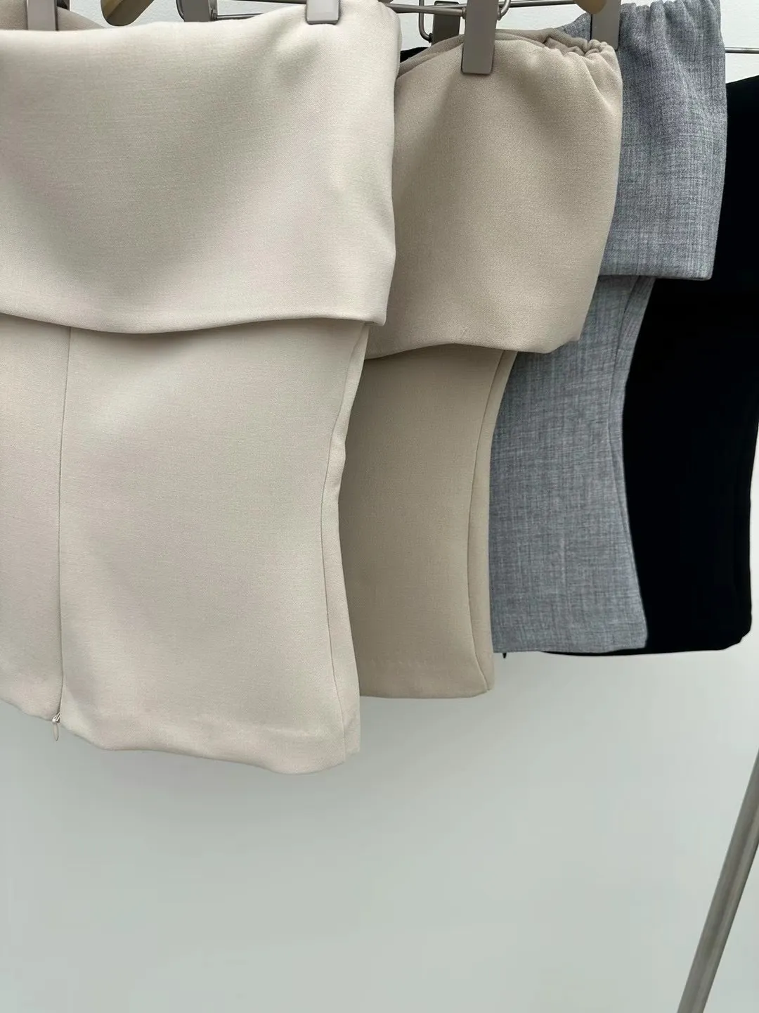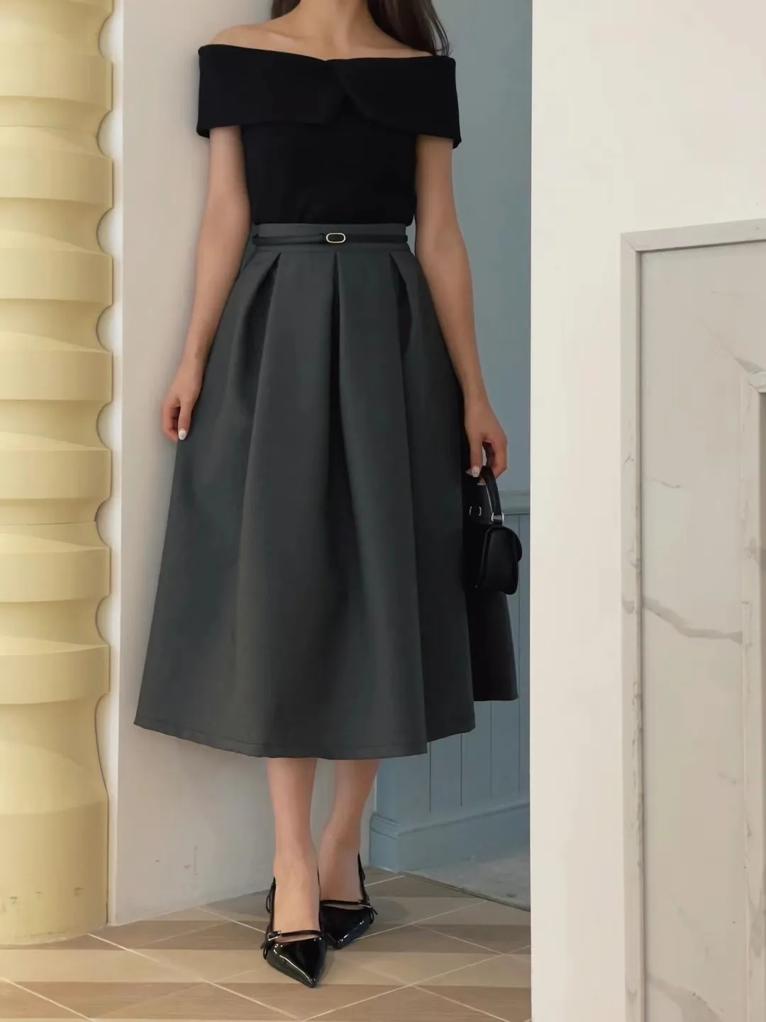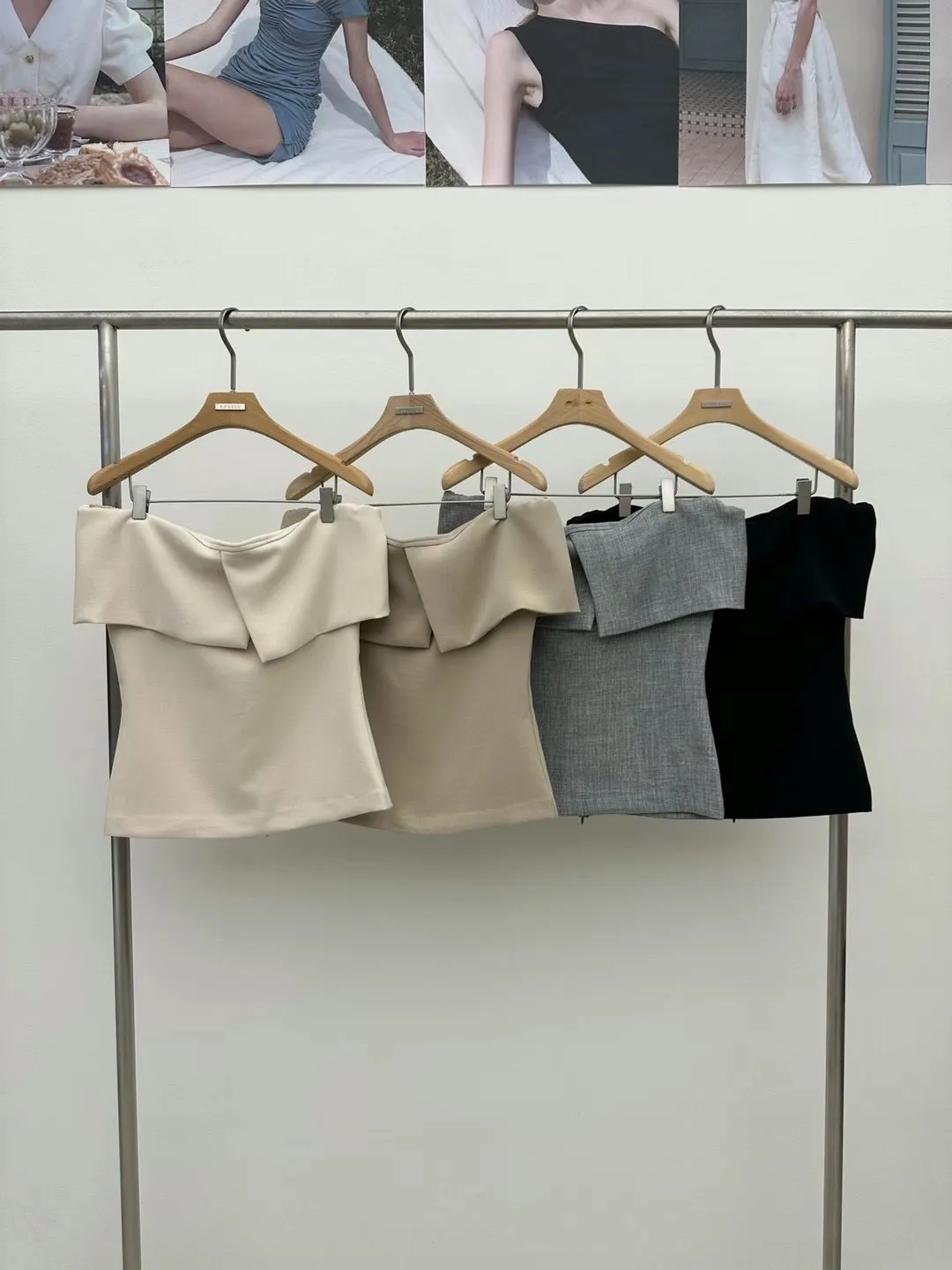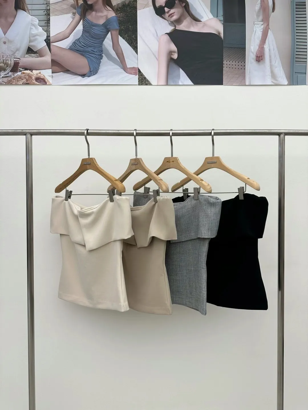高端設計師品牌 秋款一字領開衩露肩上衣