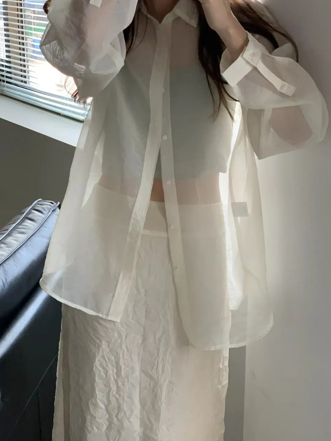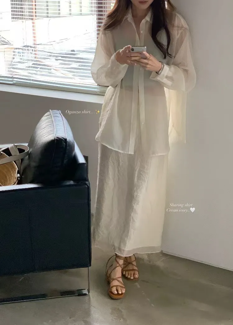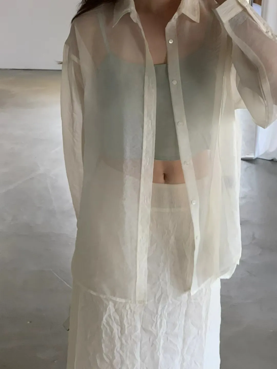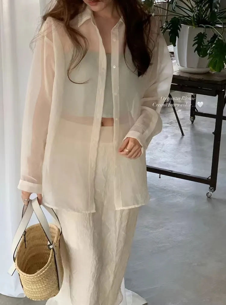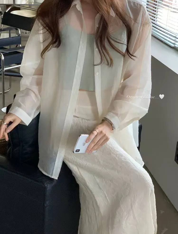 輕透防曬歐根紗氣質襯衫