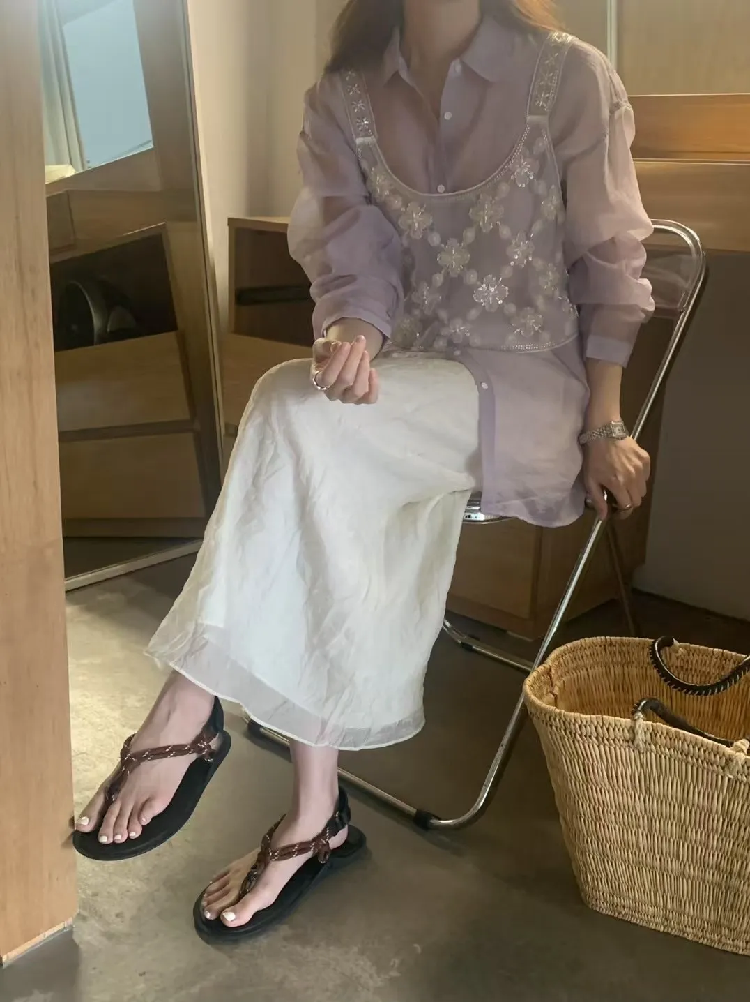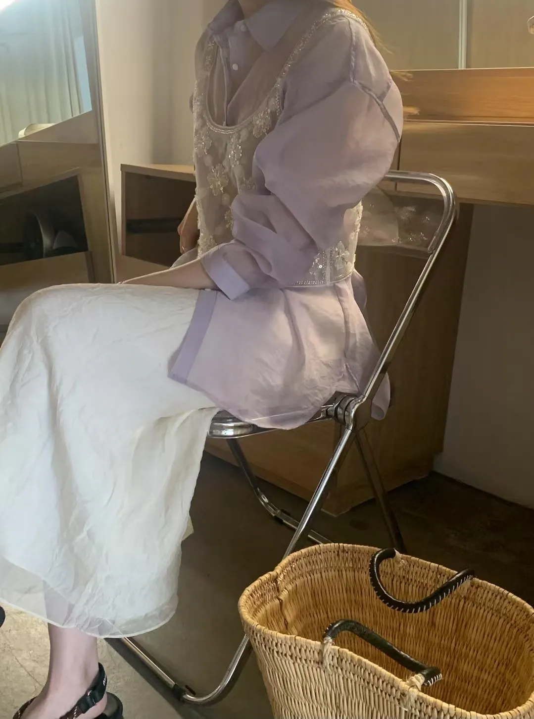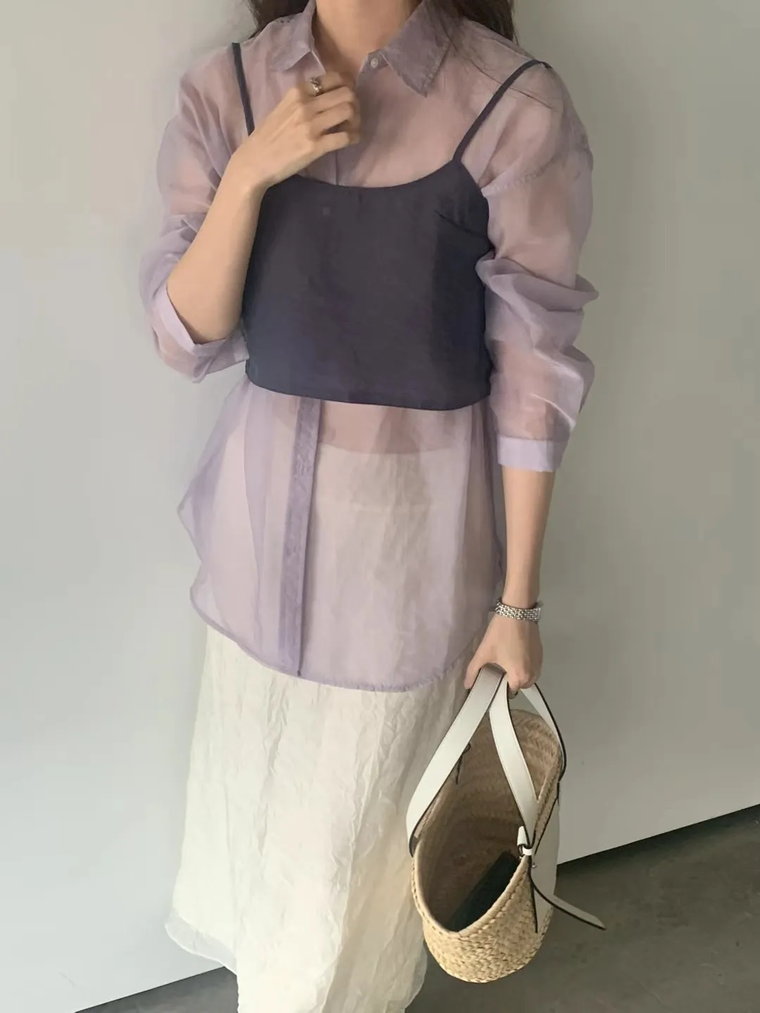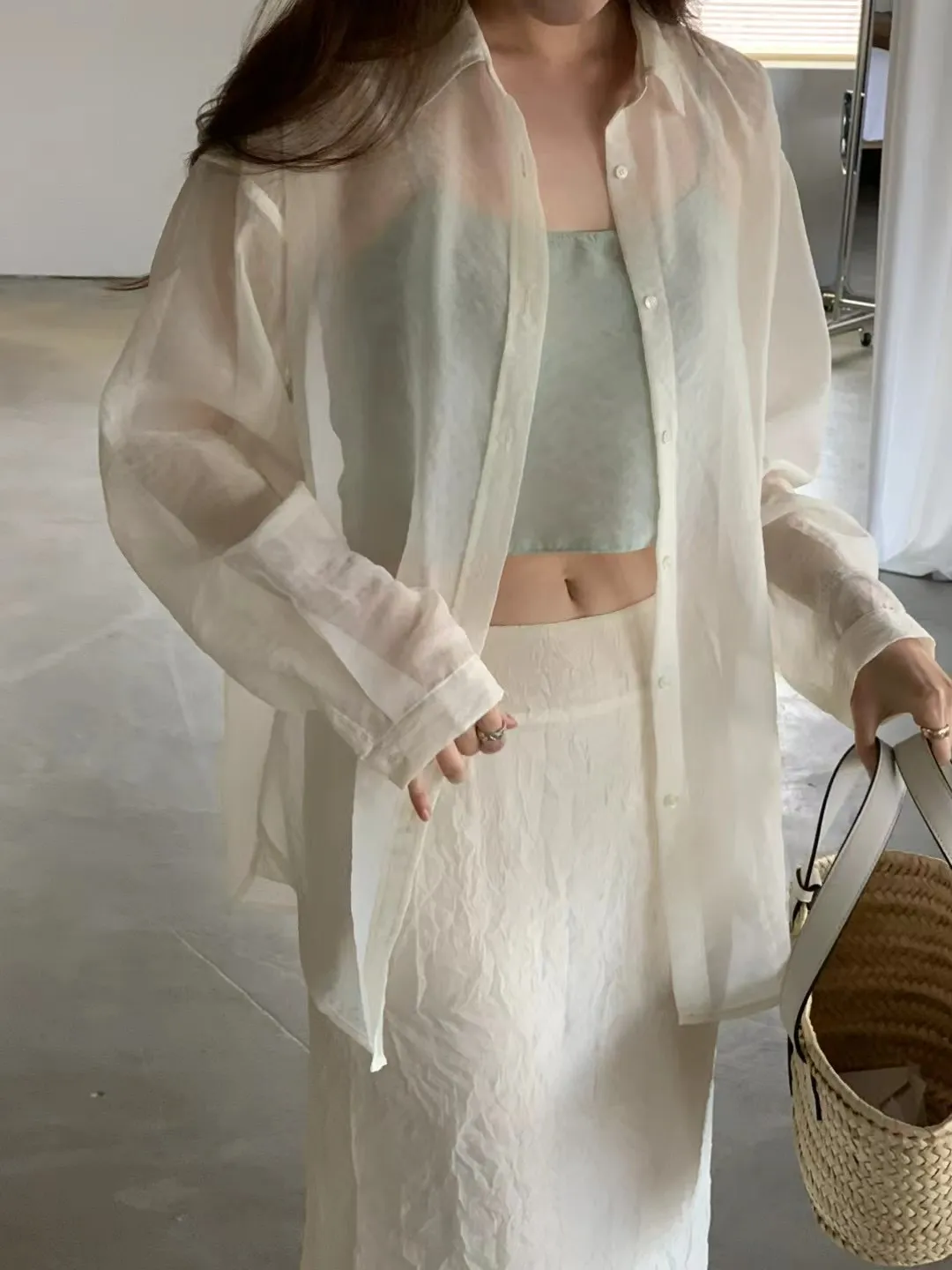 輕透防曬歐根紗氣質襯衫