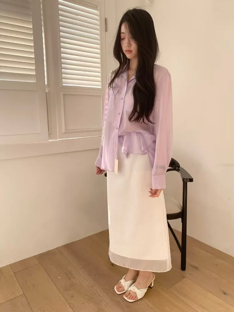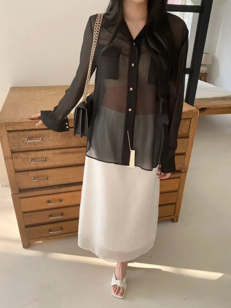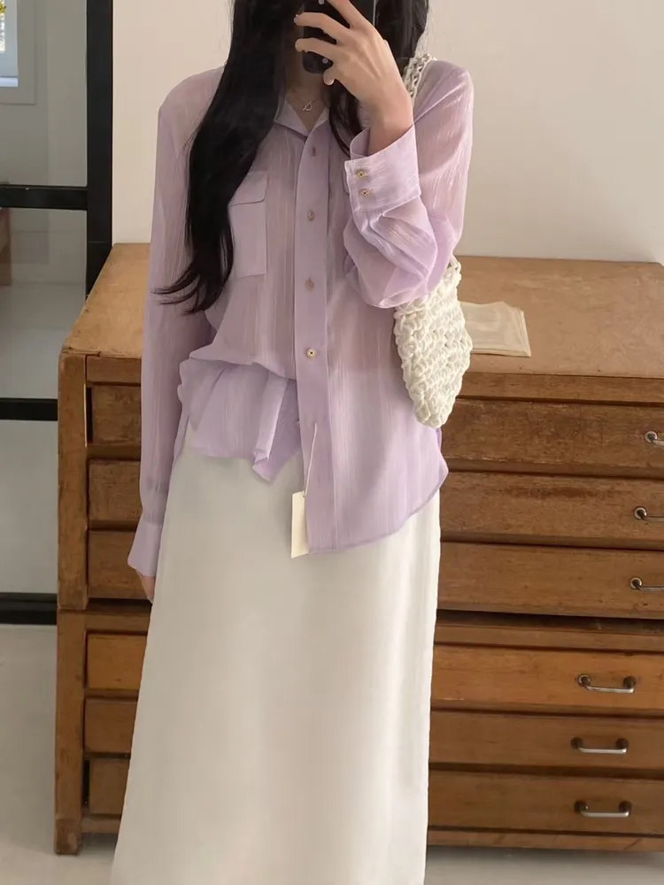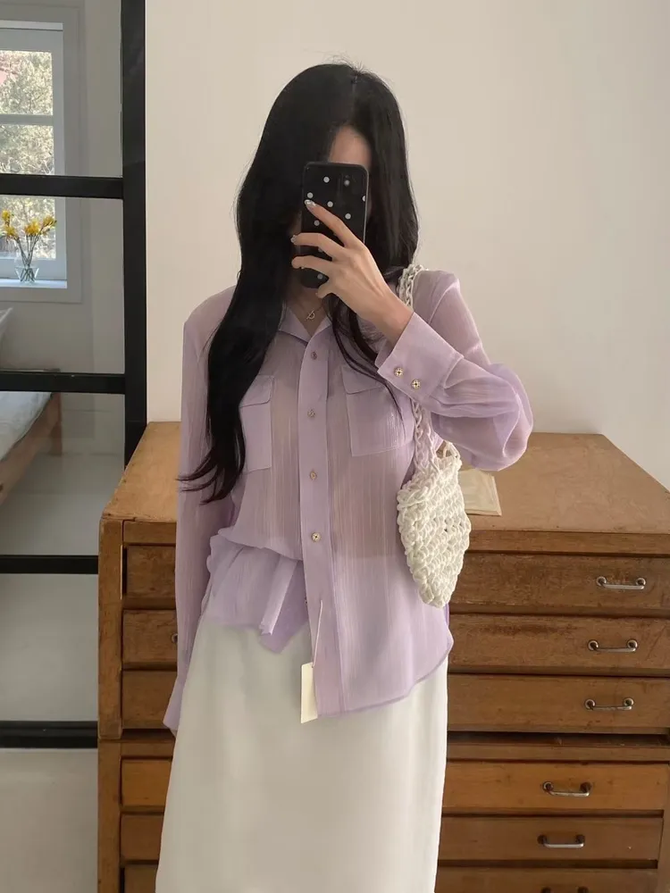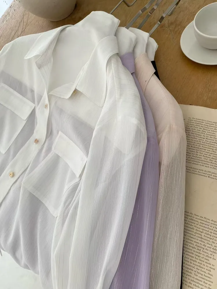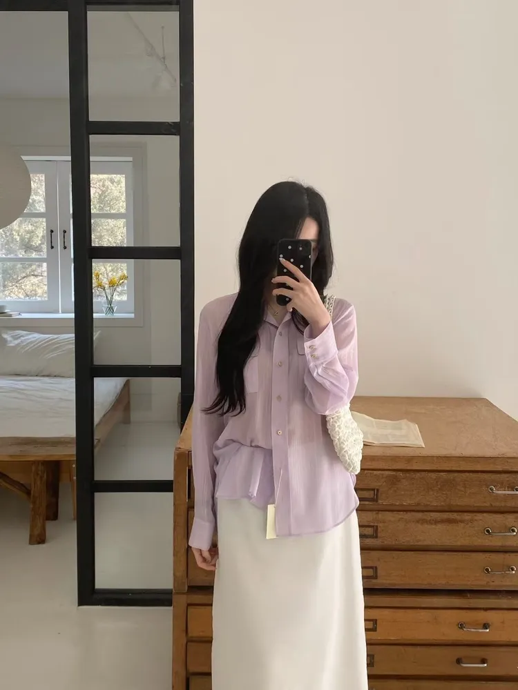 光澤細閃紋理輕薄襯衫