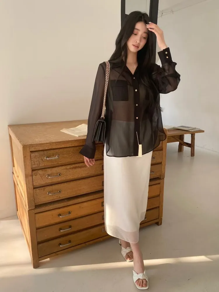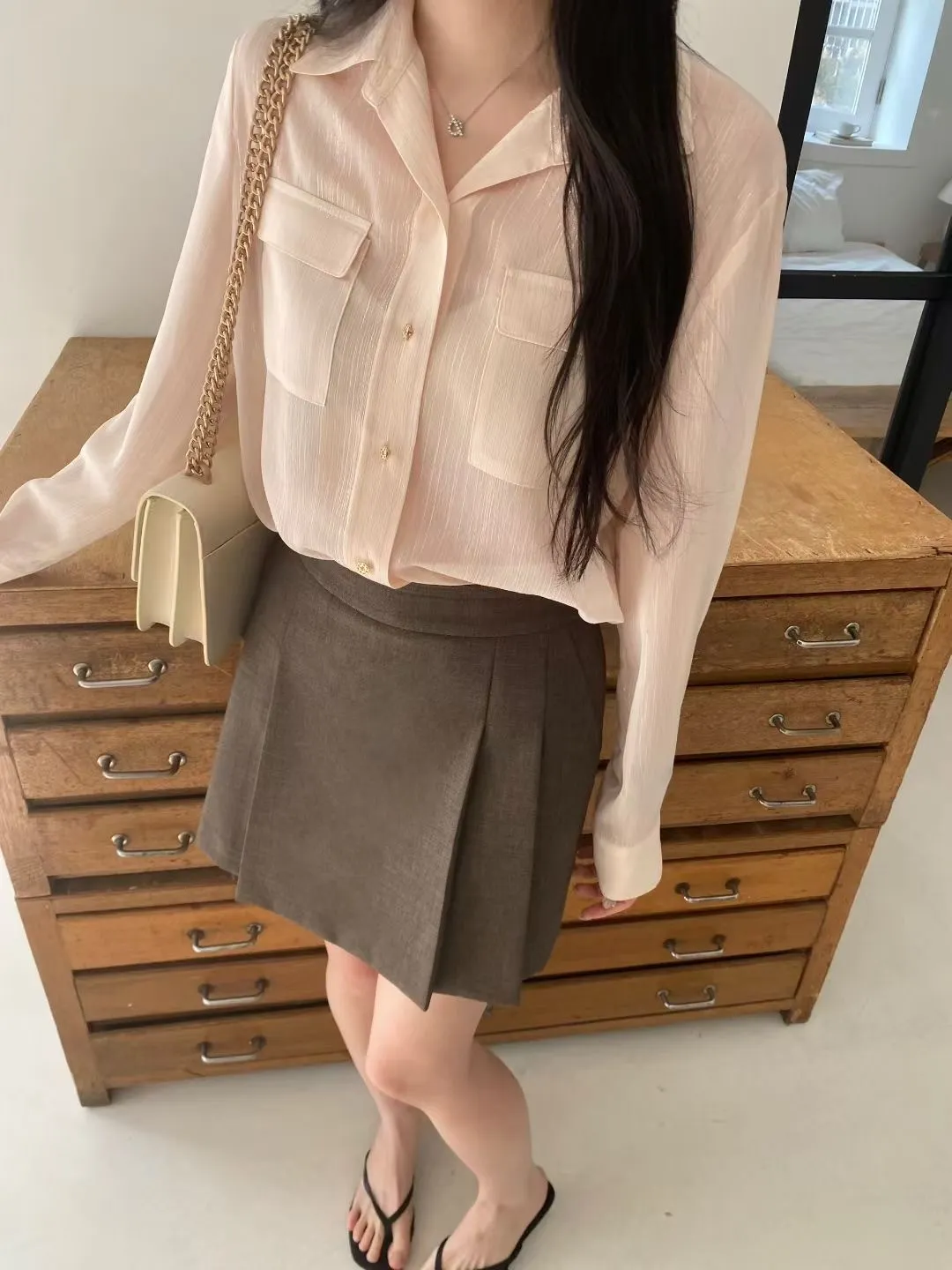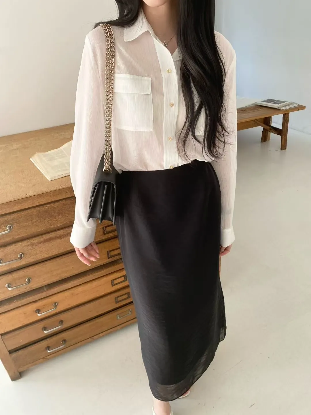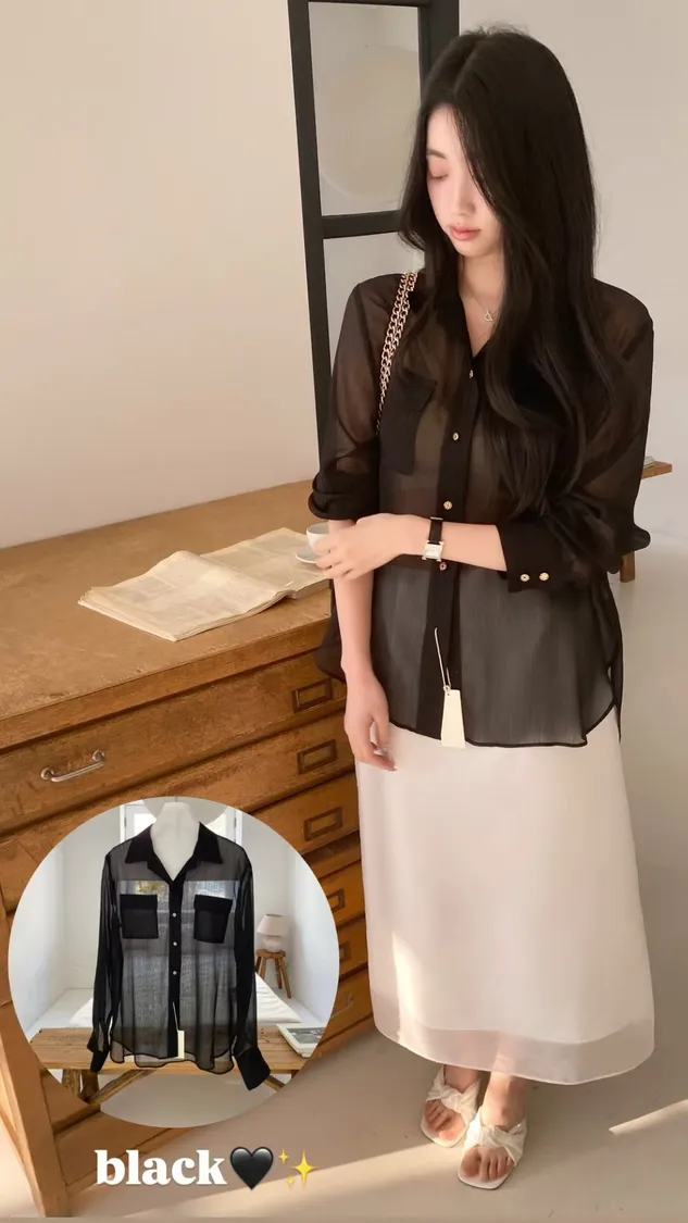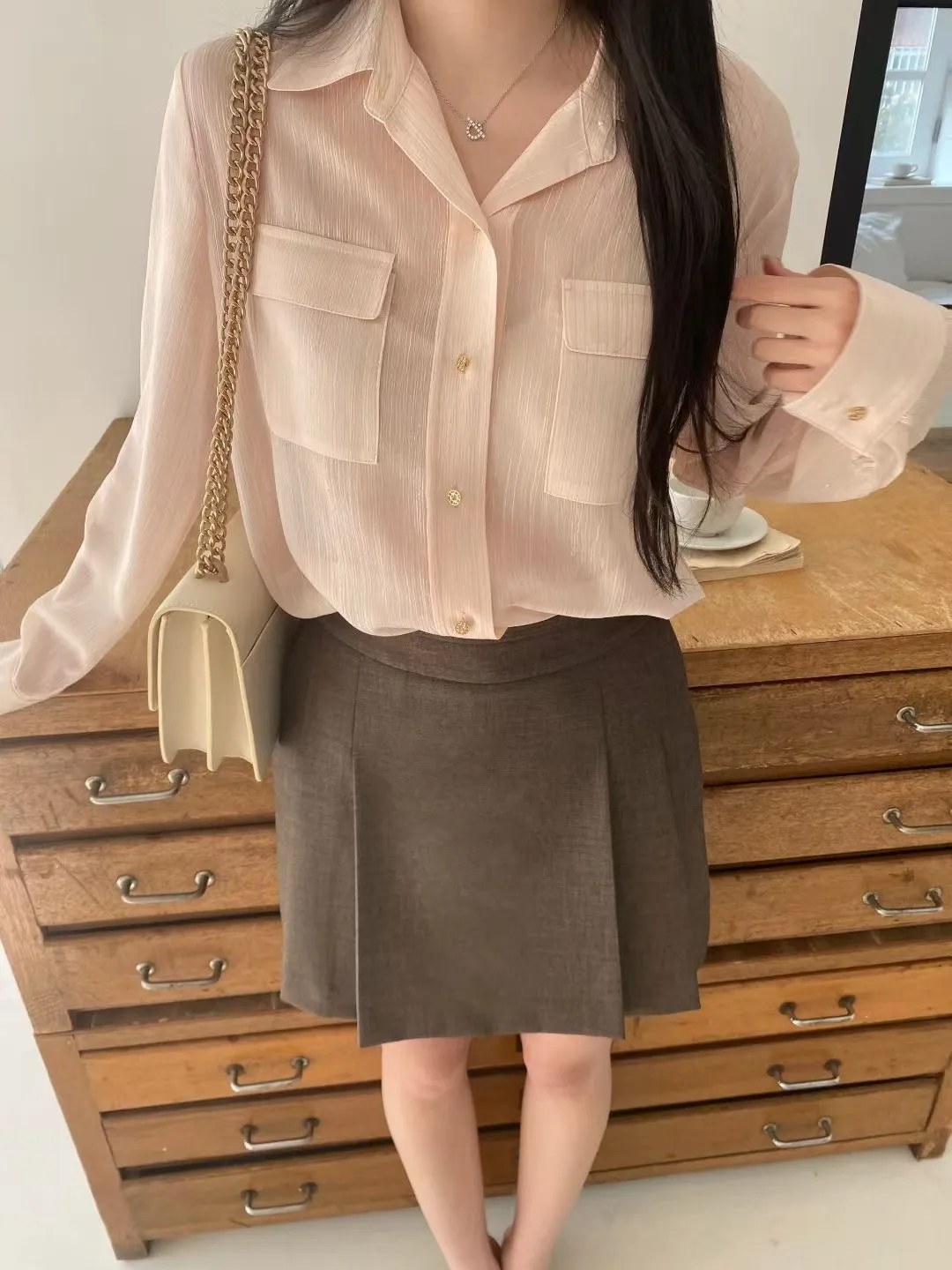光澤細閃紋理輕薄襯衫