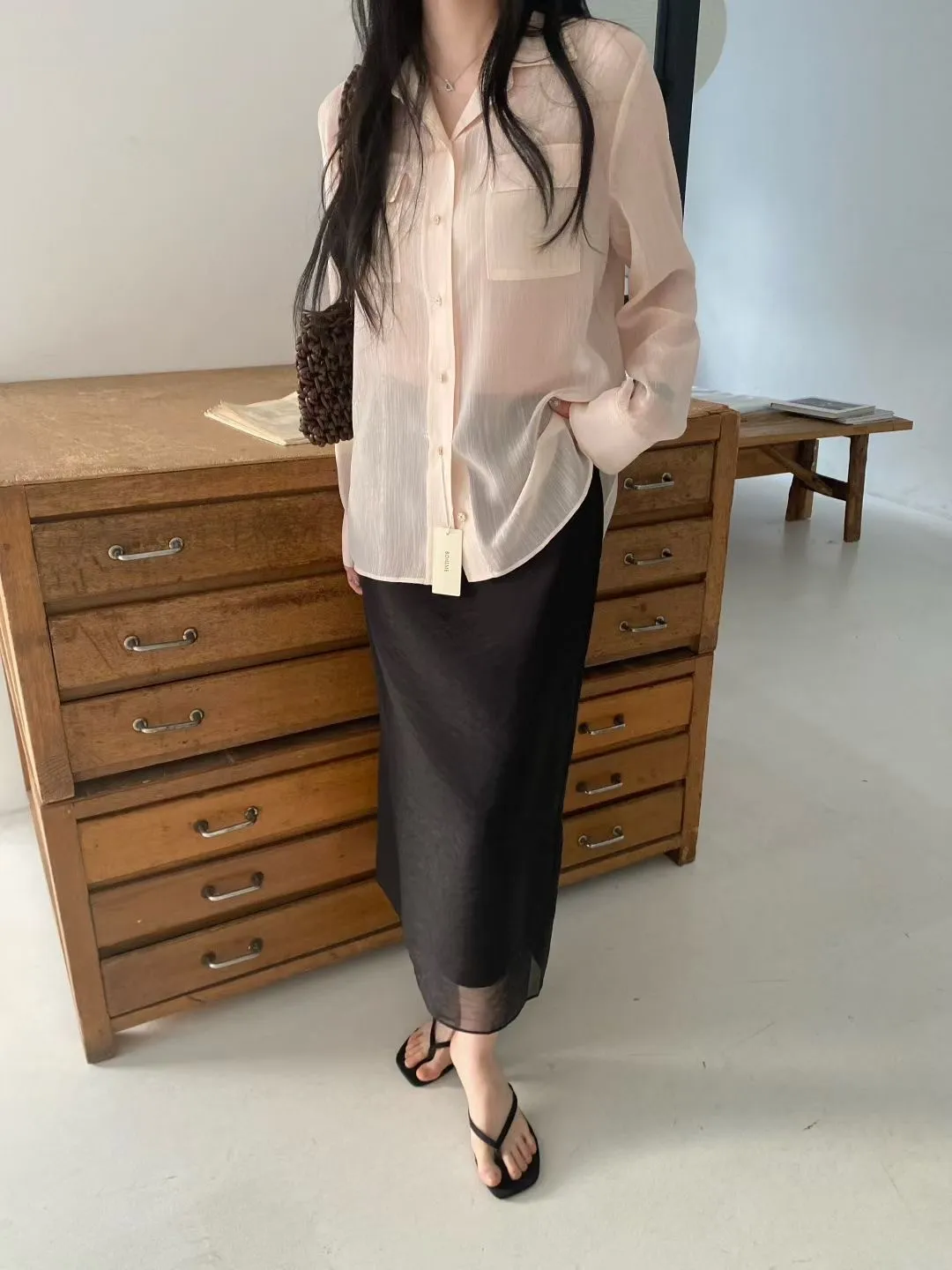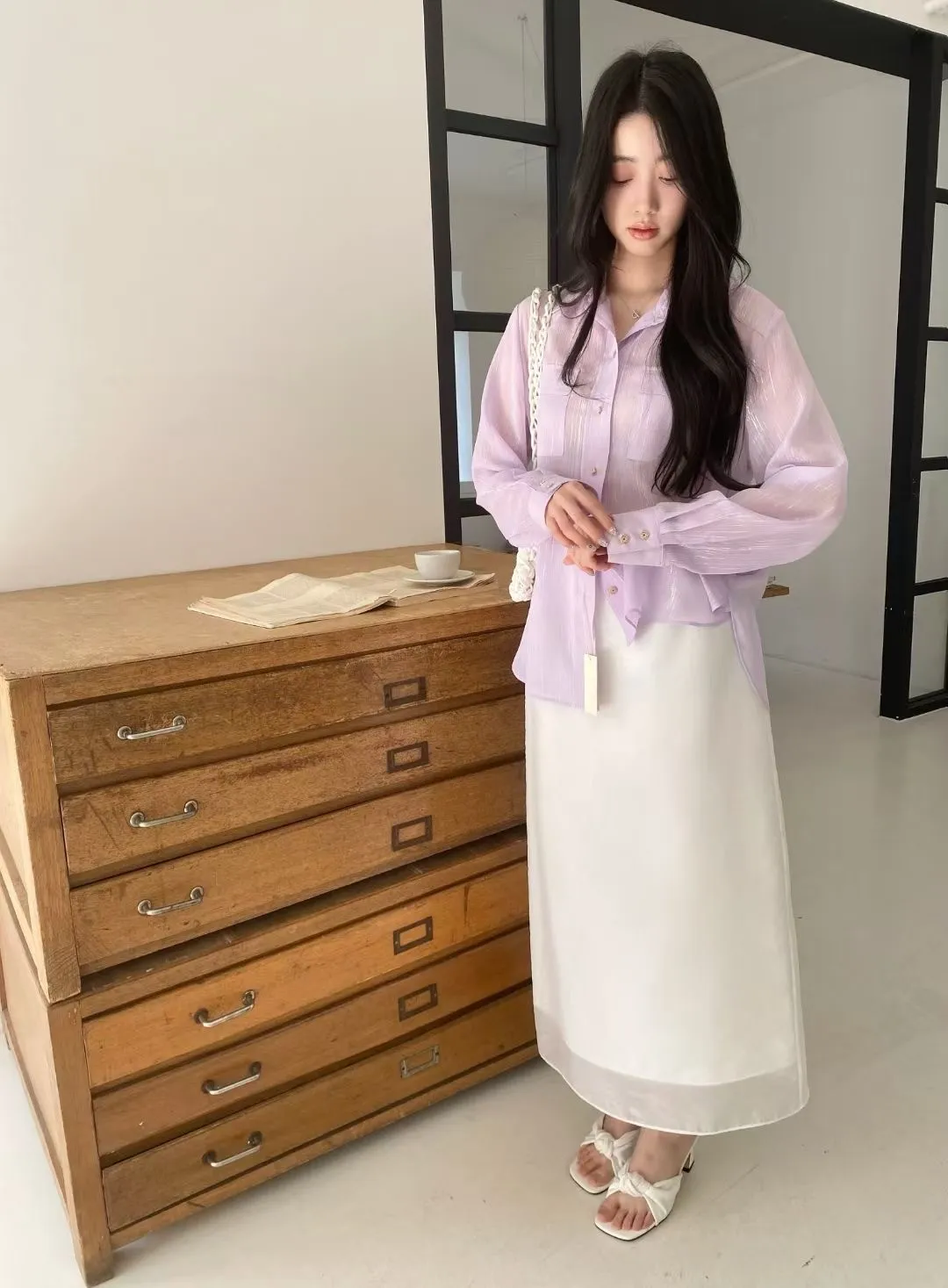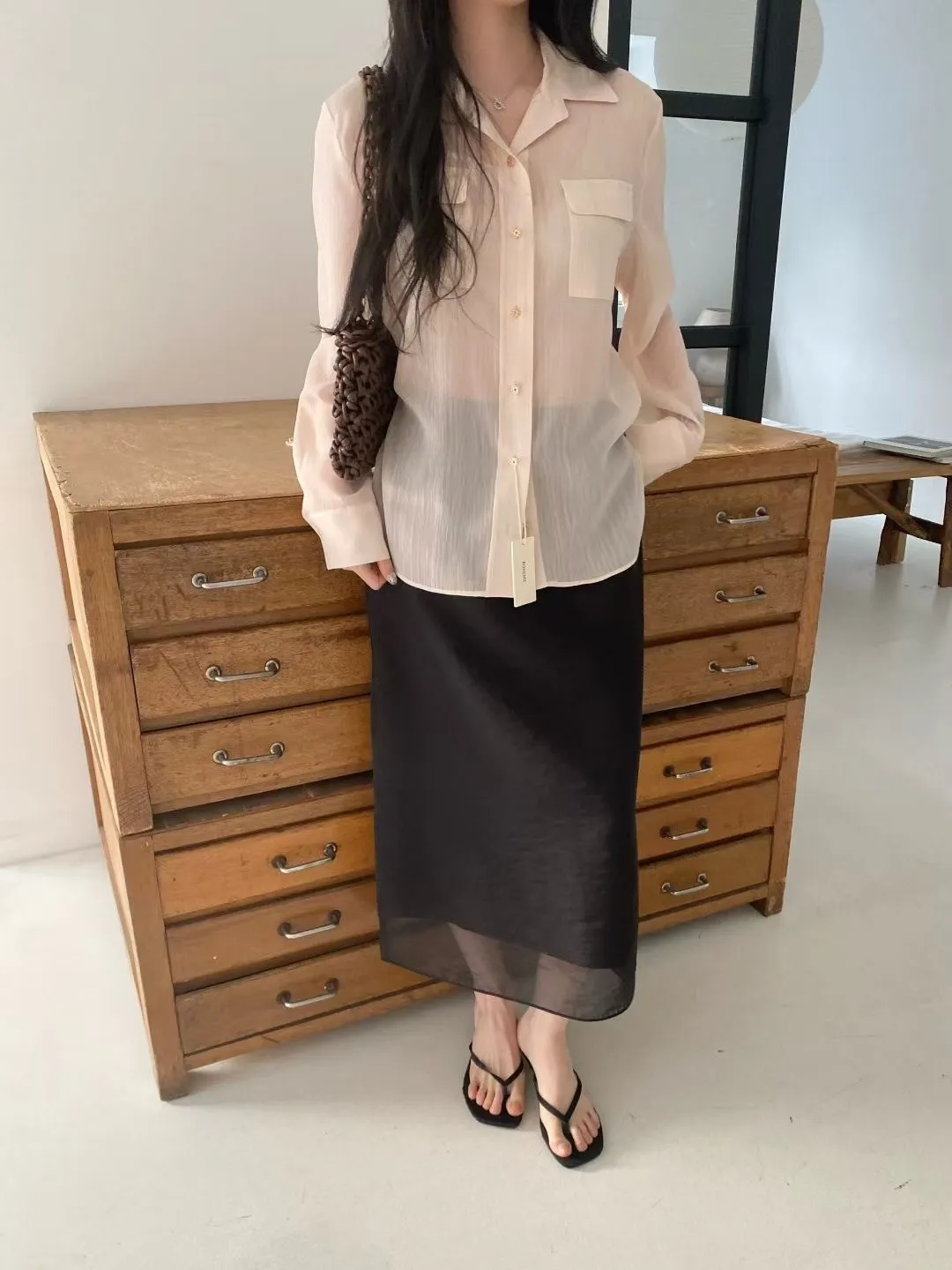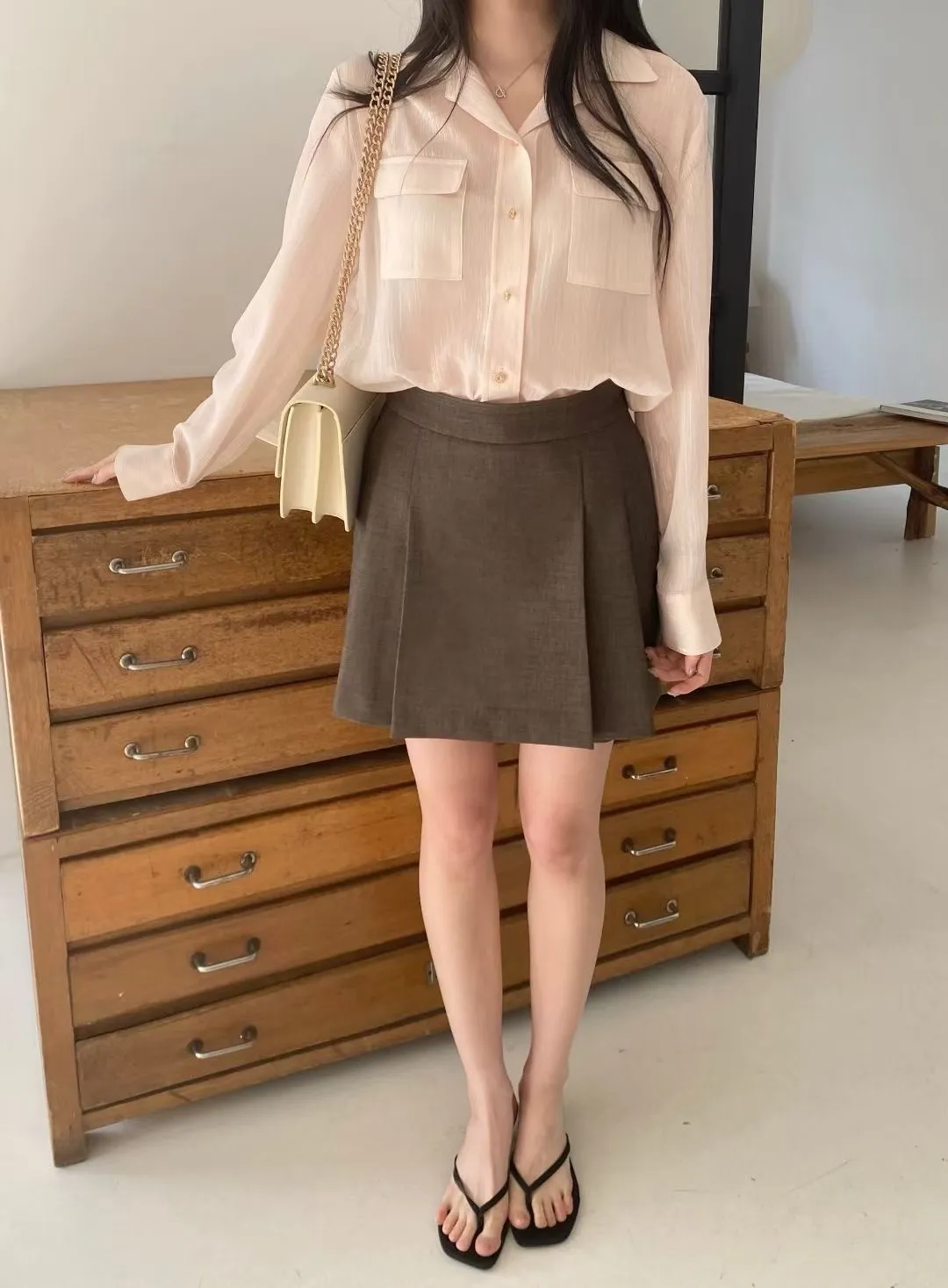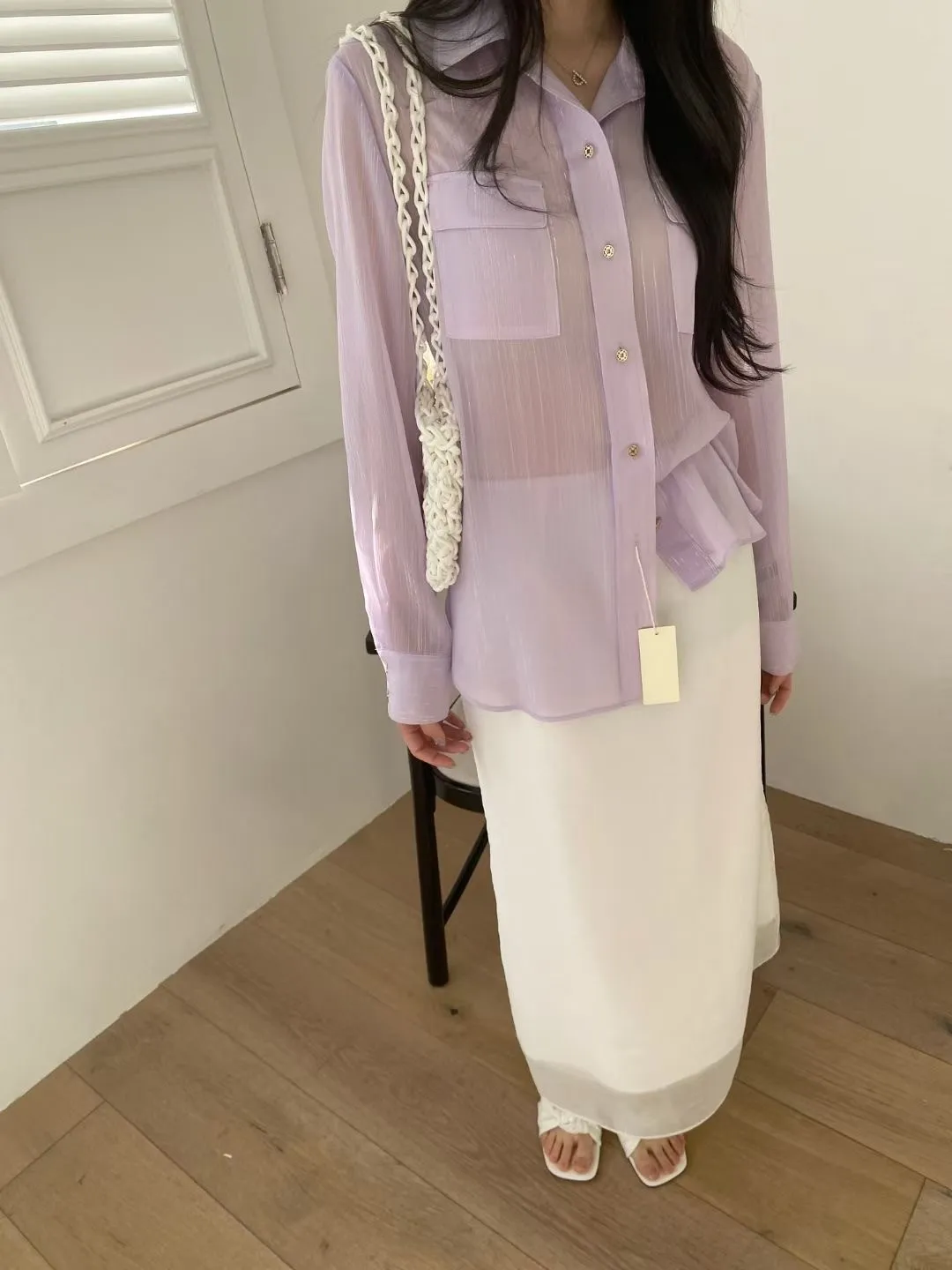光澤細閃紋理輕薄襯衫