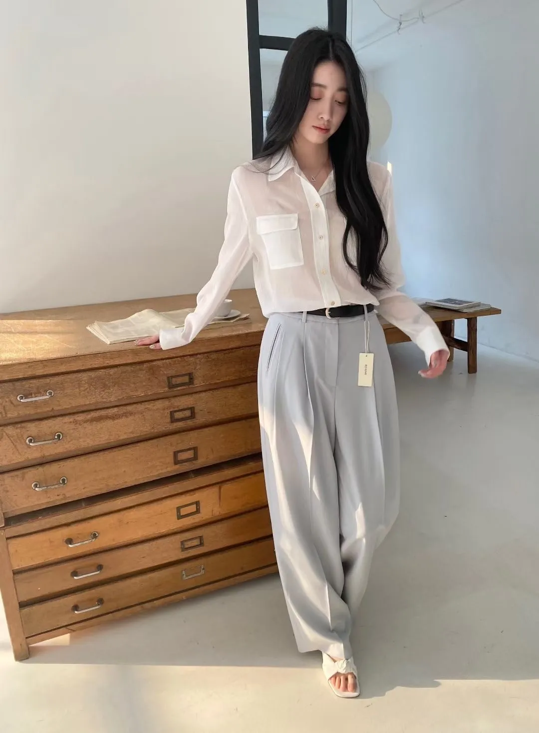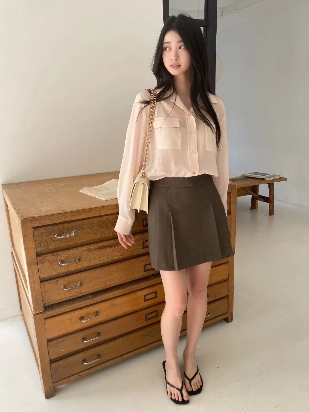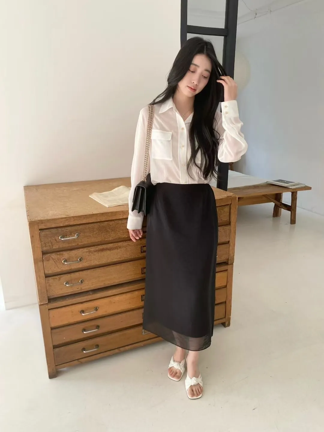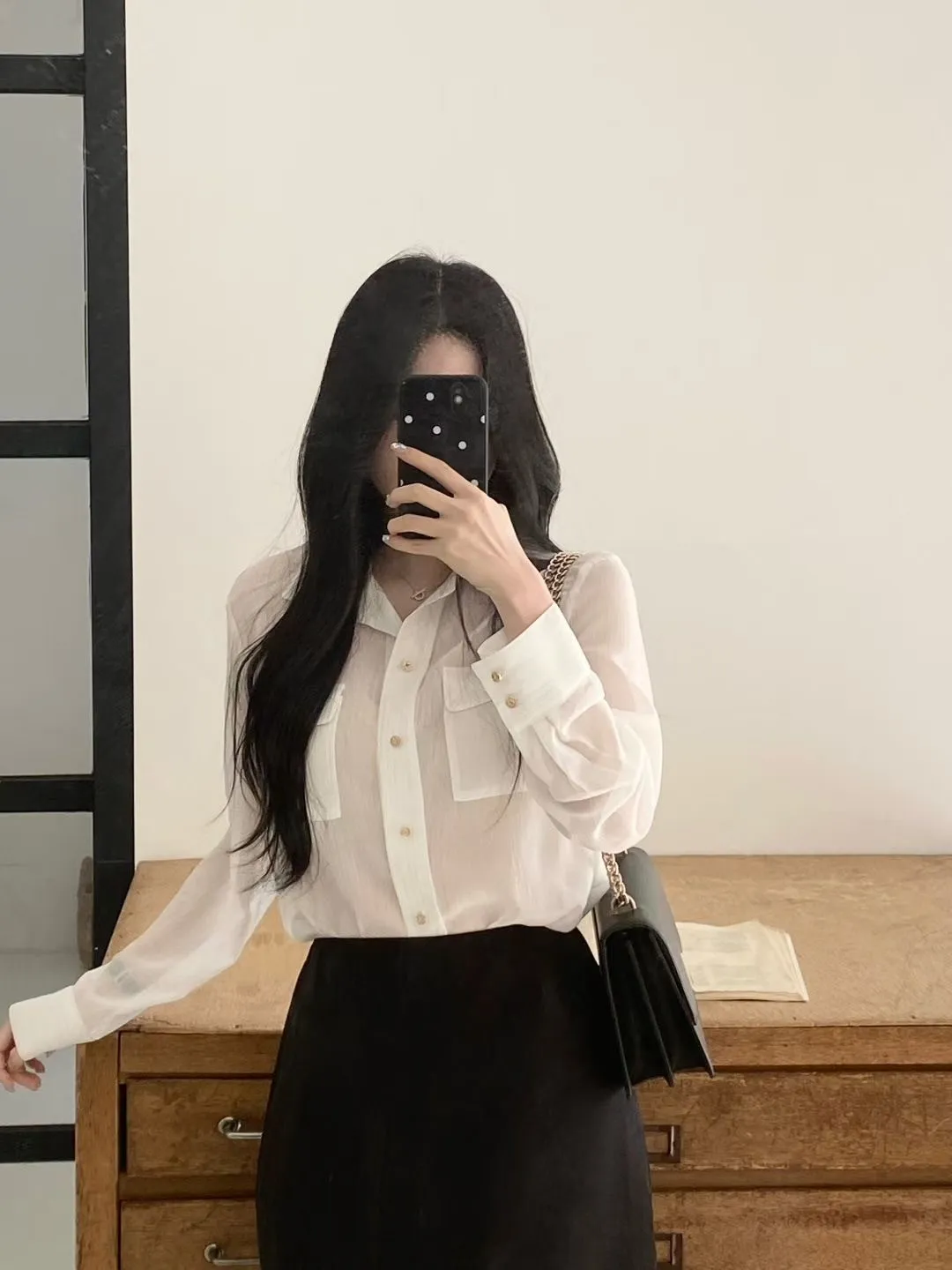 光澤細閃紋理輕薄襯衫