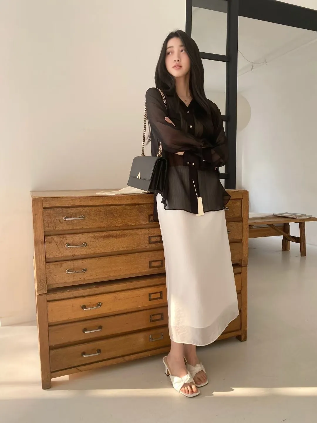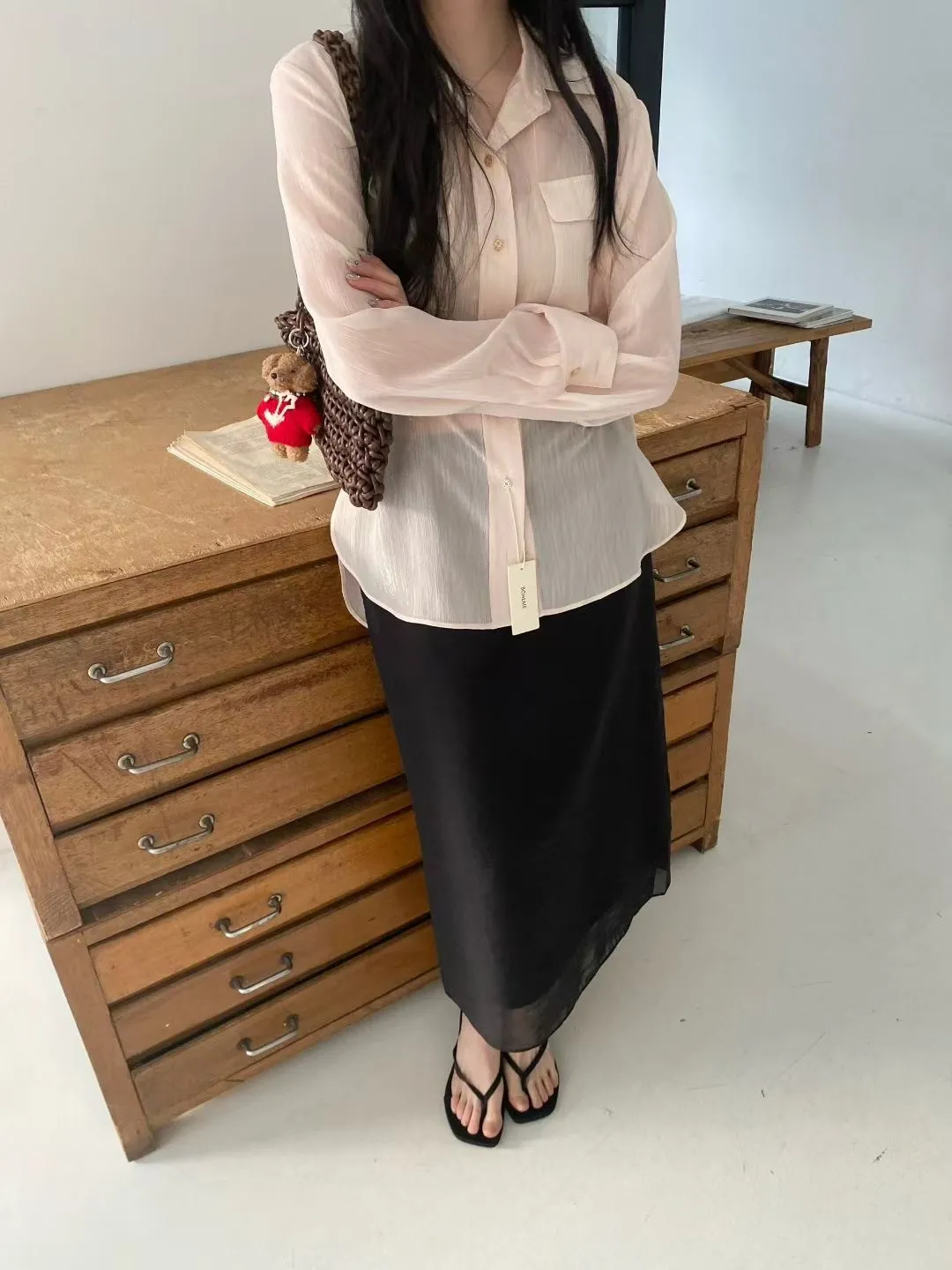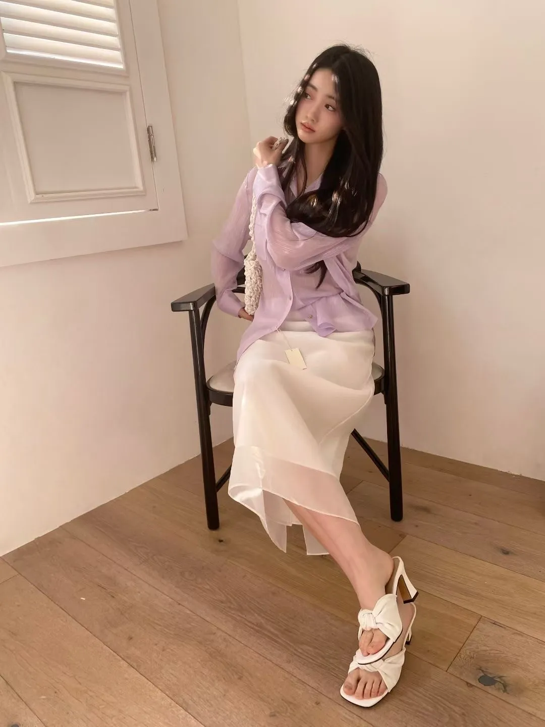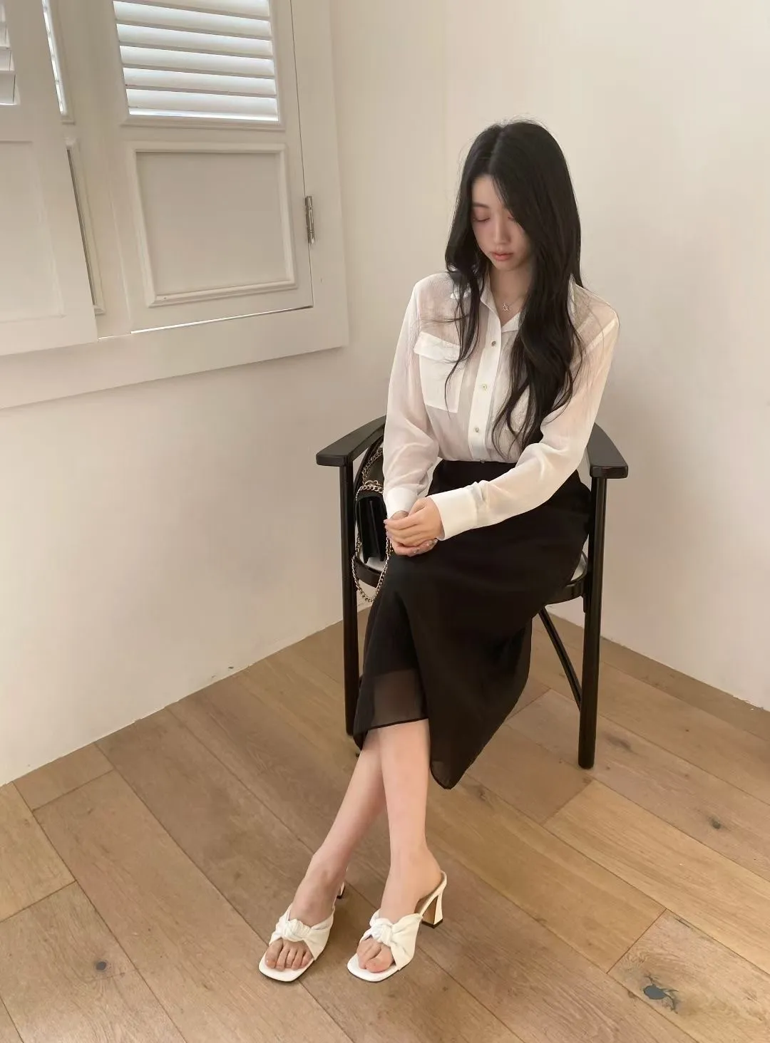 光澤細閃紋理輕薄襯衫