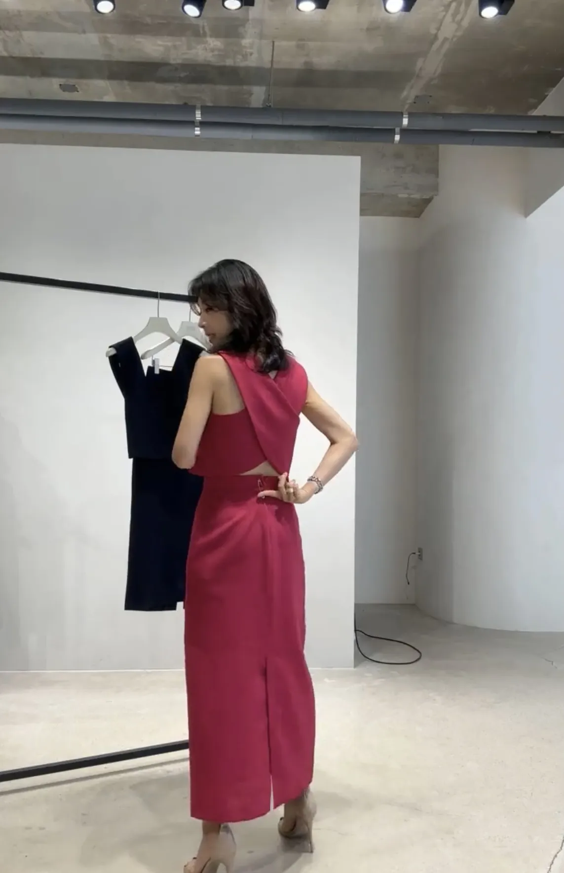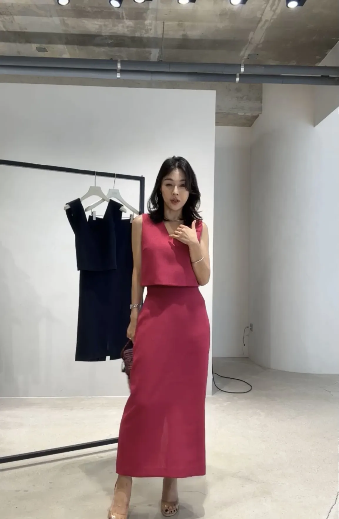 MAINSTAR 交叉露背V領無袖背心➕包臀半身裙套裝 不單賣