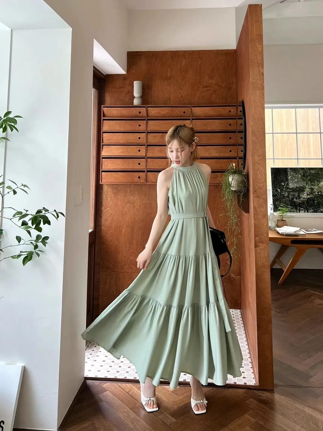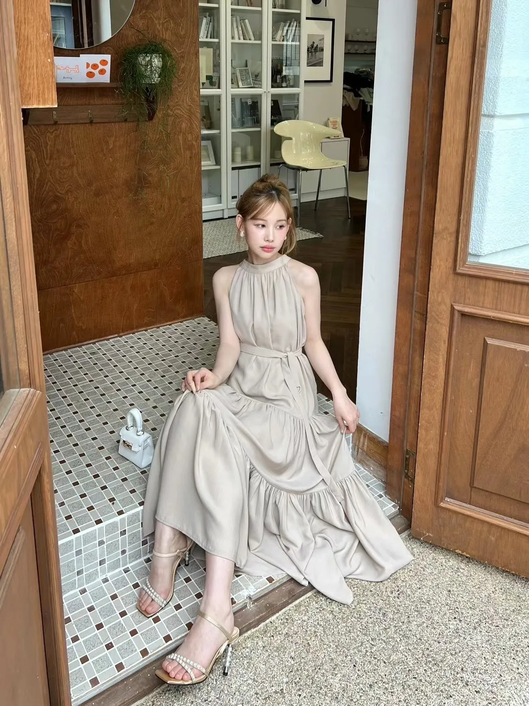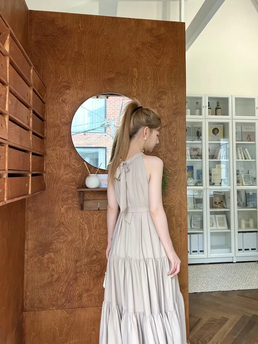 氣質渡假款蝴蝶結綁帶削肩大裙擺傘洋💕約會度假必備款