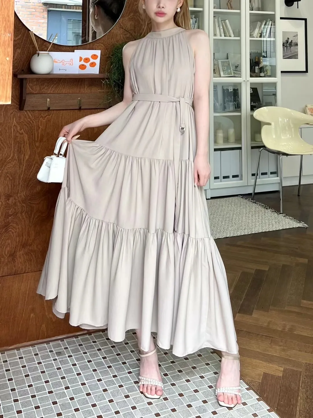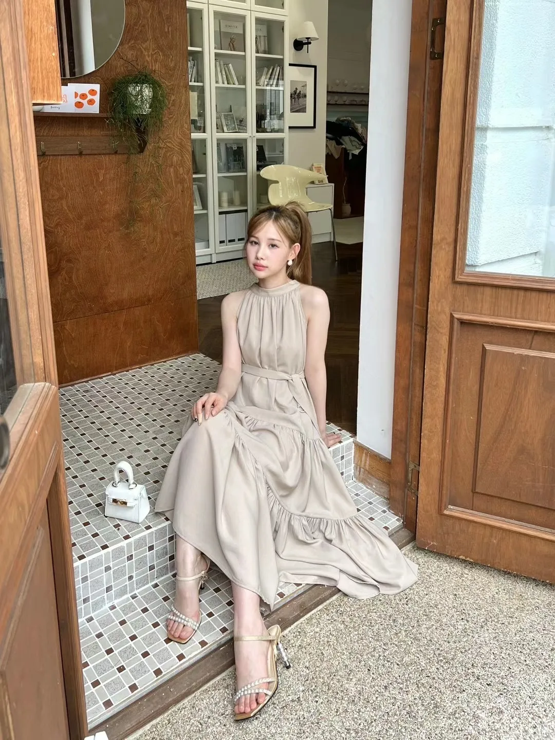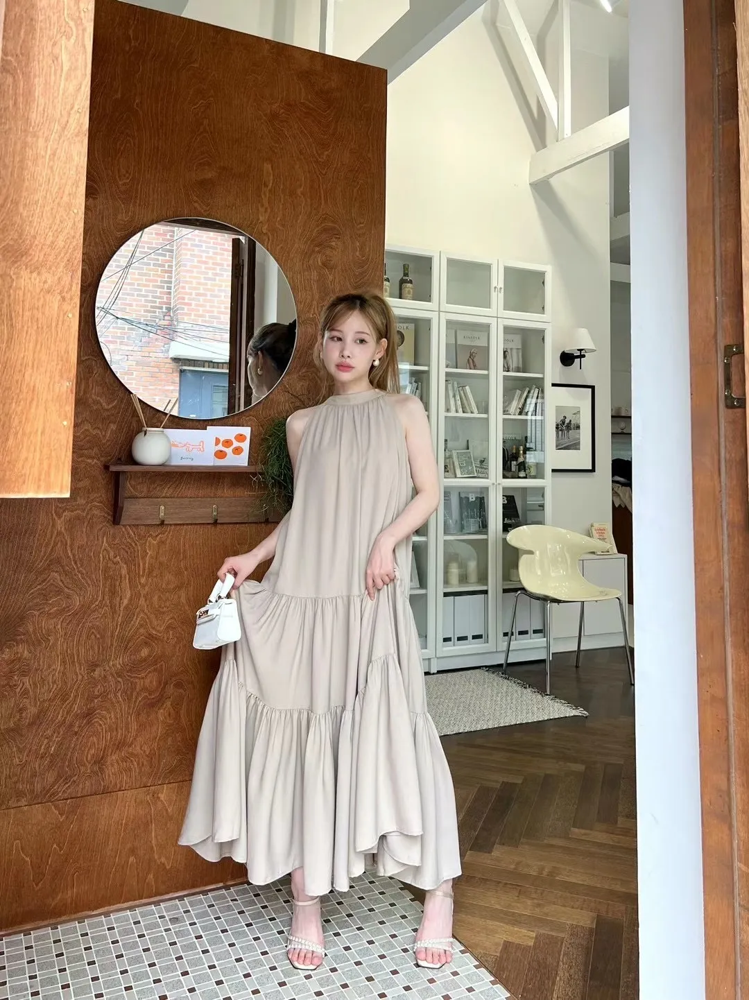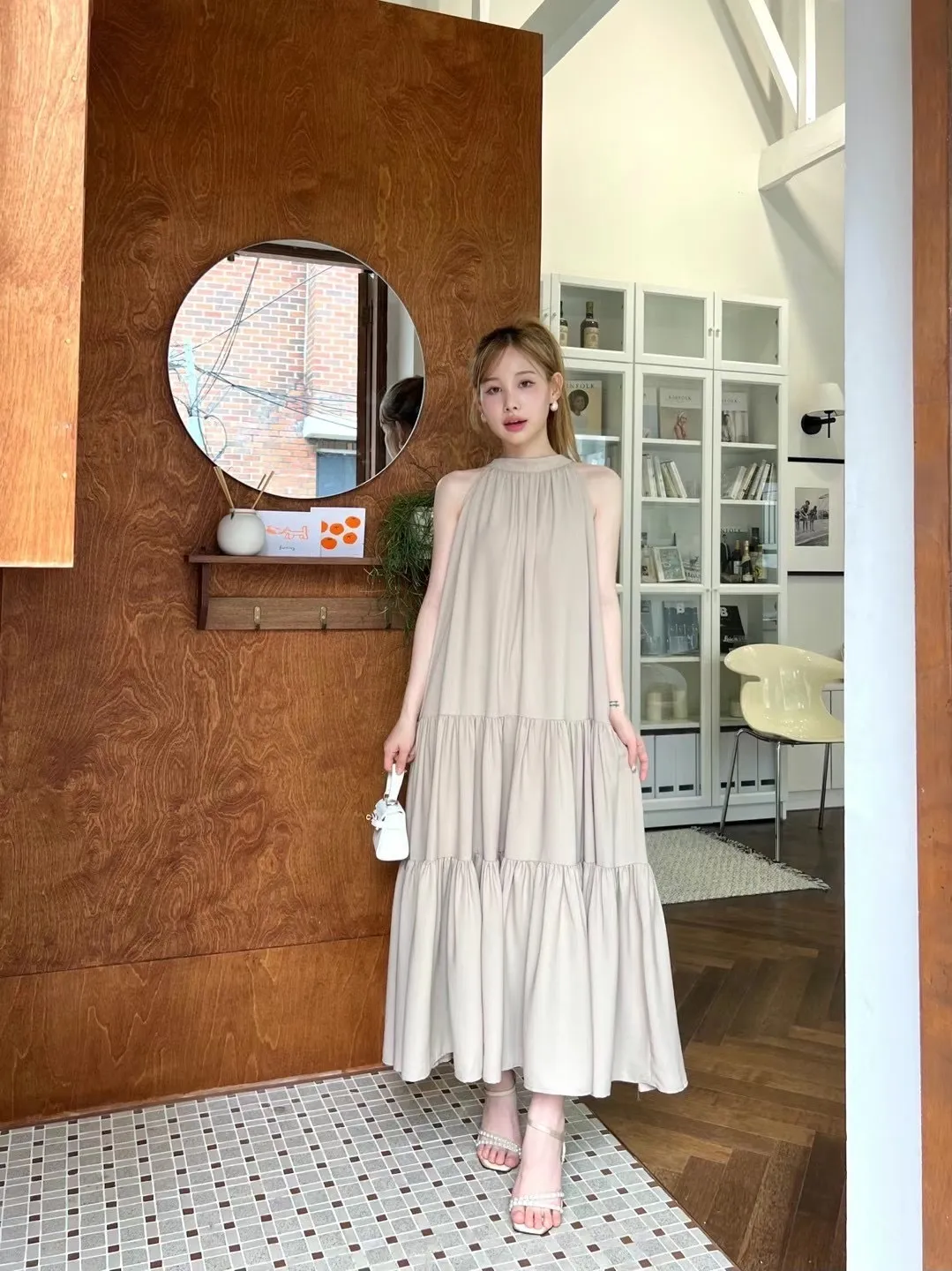 氣質渡假款蝴蝶結綁帶削肩大裙擺傘洋💕約會度假必備款