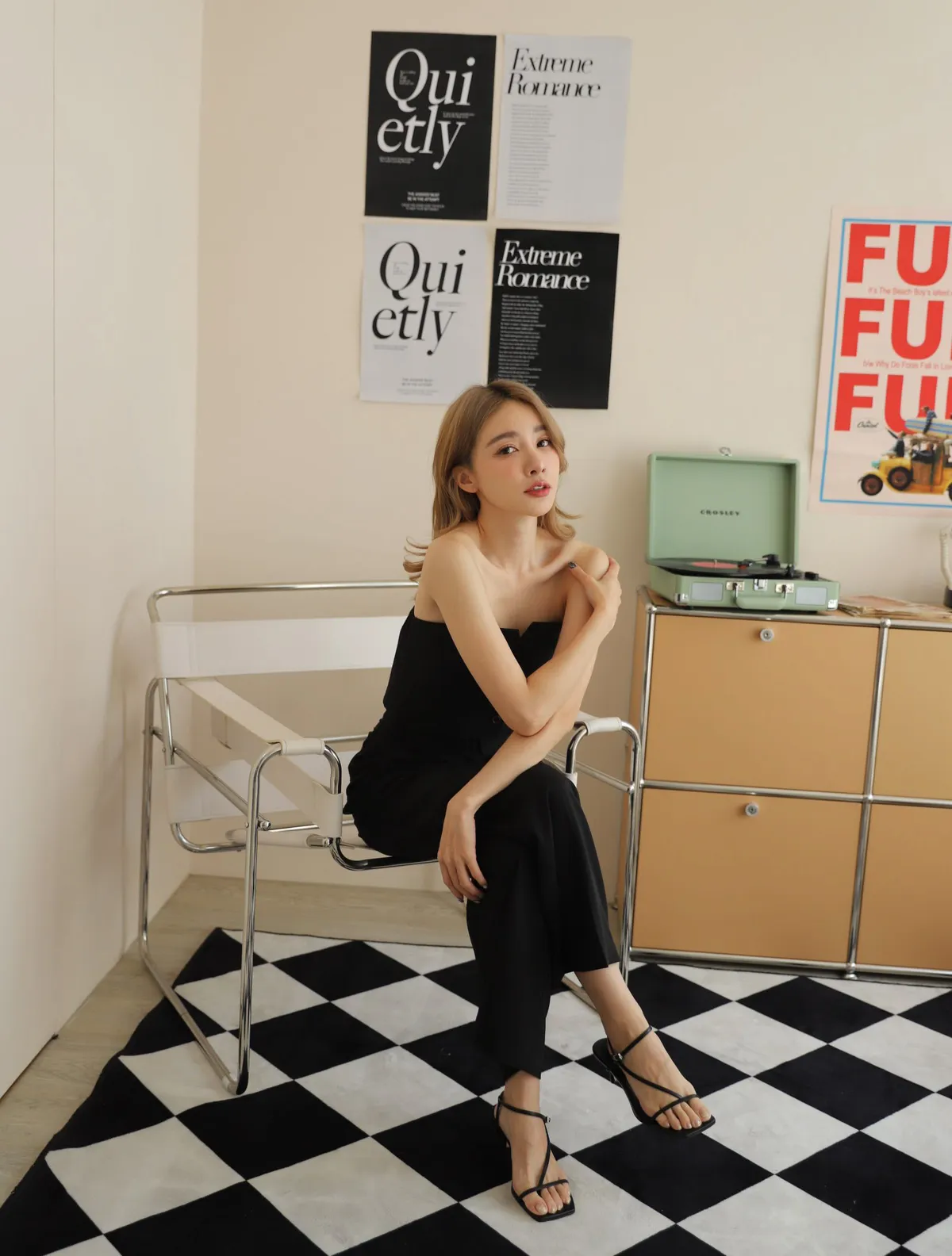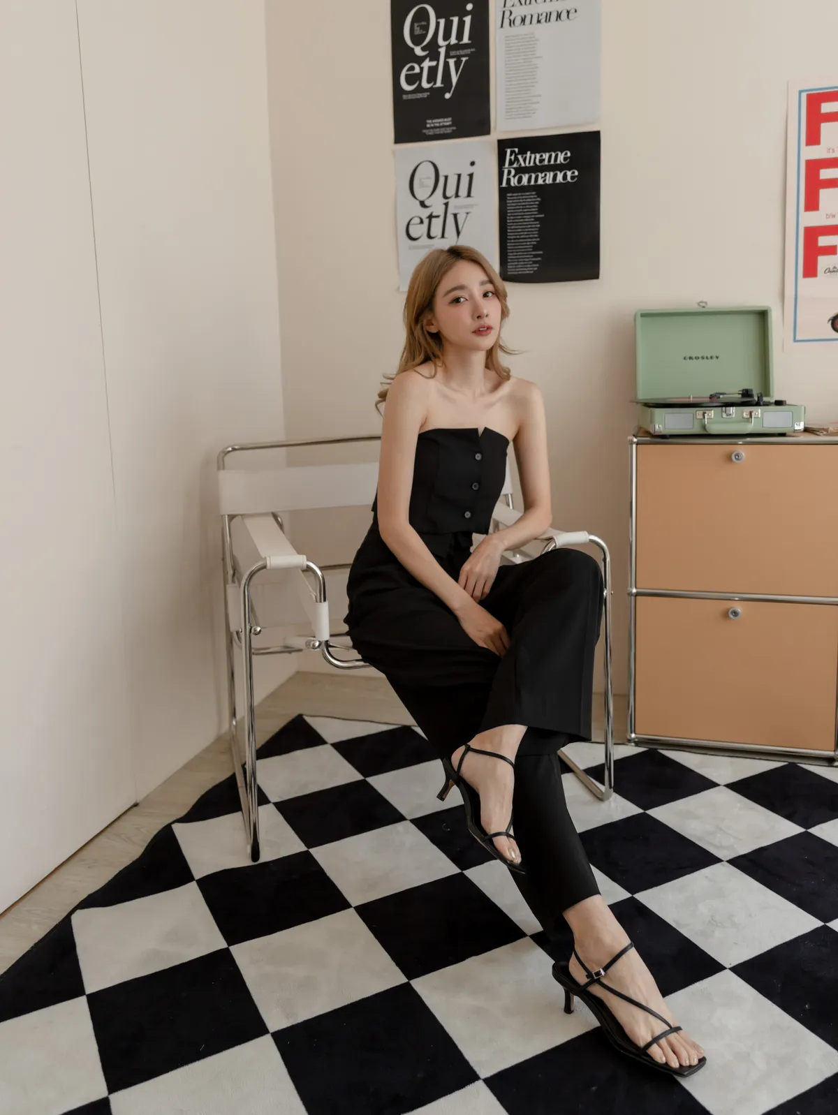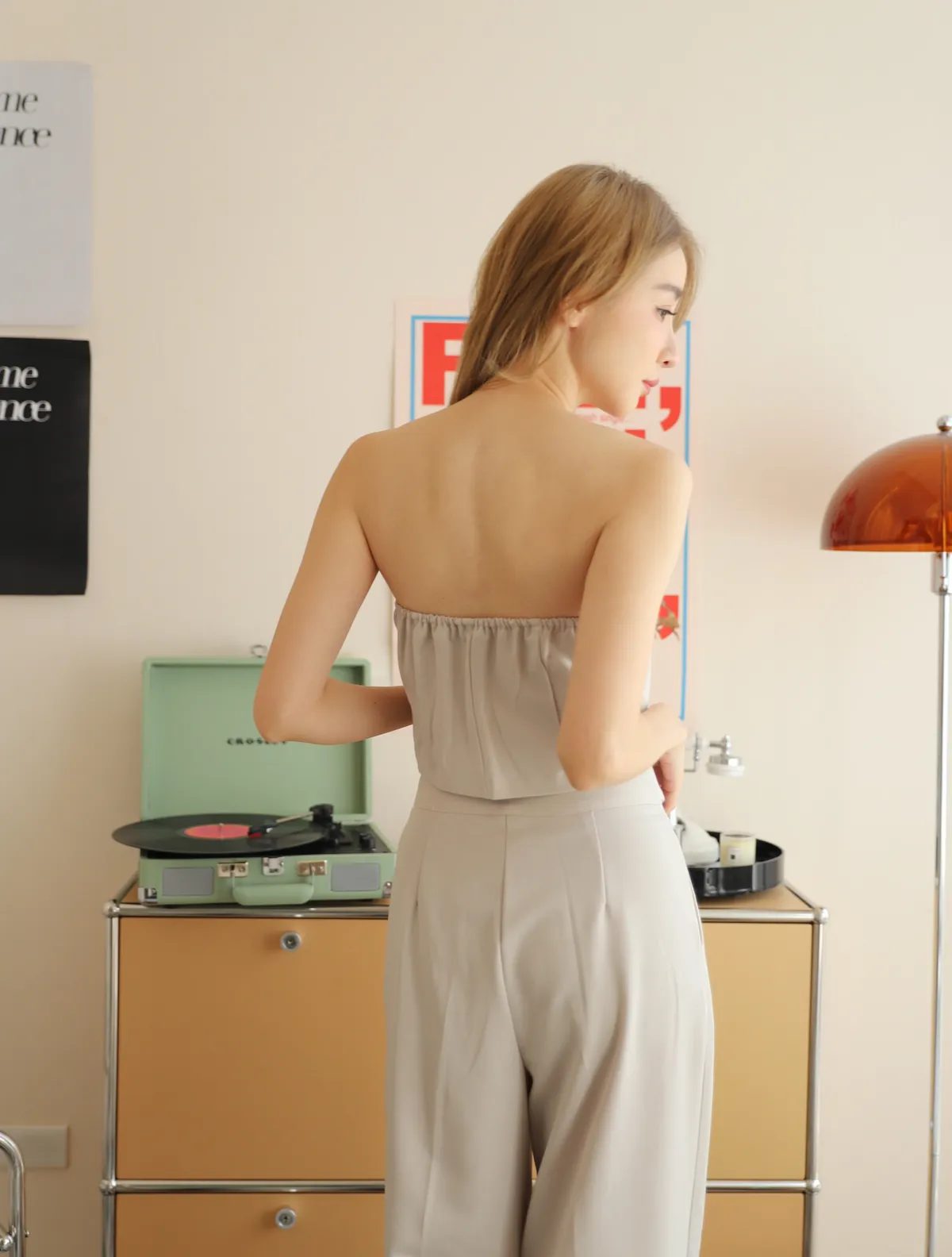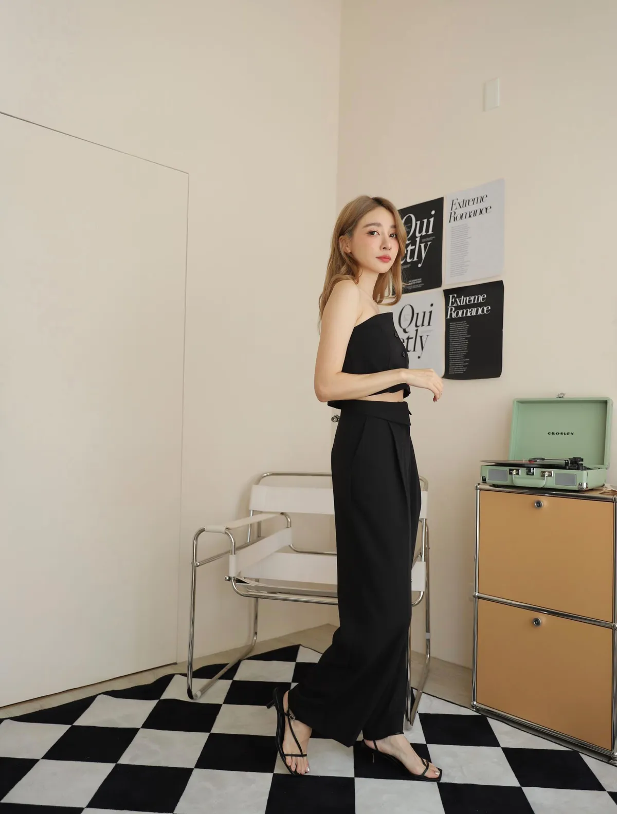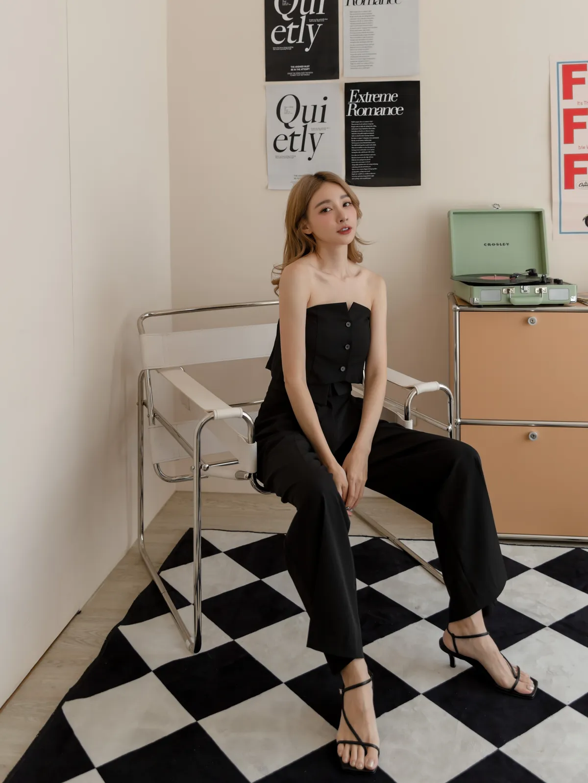 設計感小V鬆緊排扣裹胸背心上衣➕高腰翻折修身褲