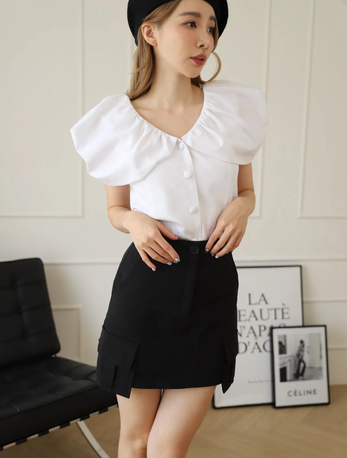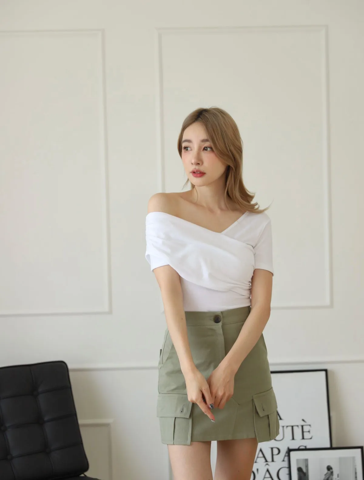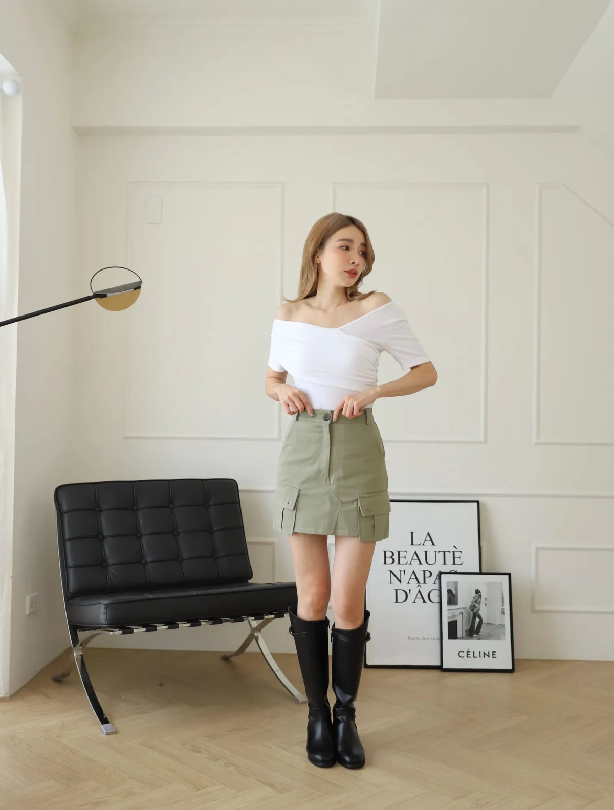 質感顯瘦包臀口袋工裝短裙 鬆緊裙