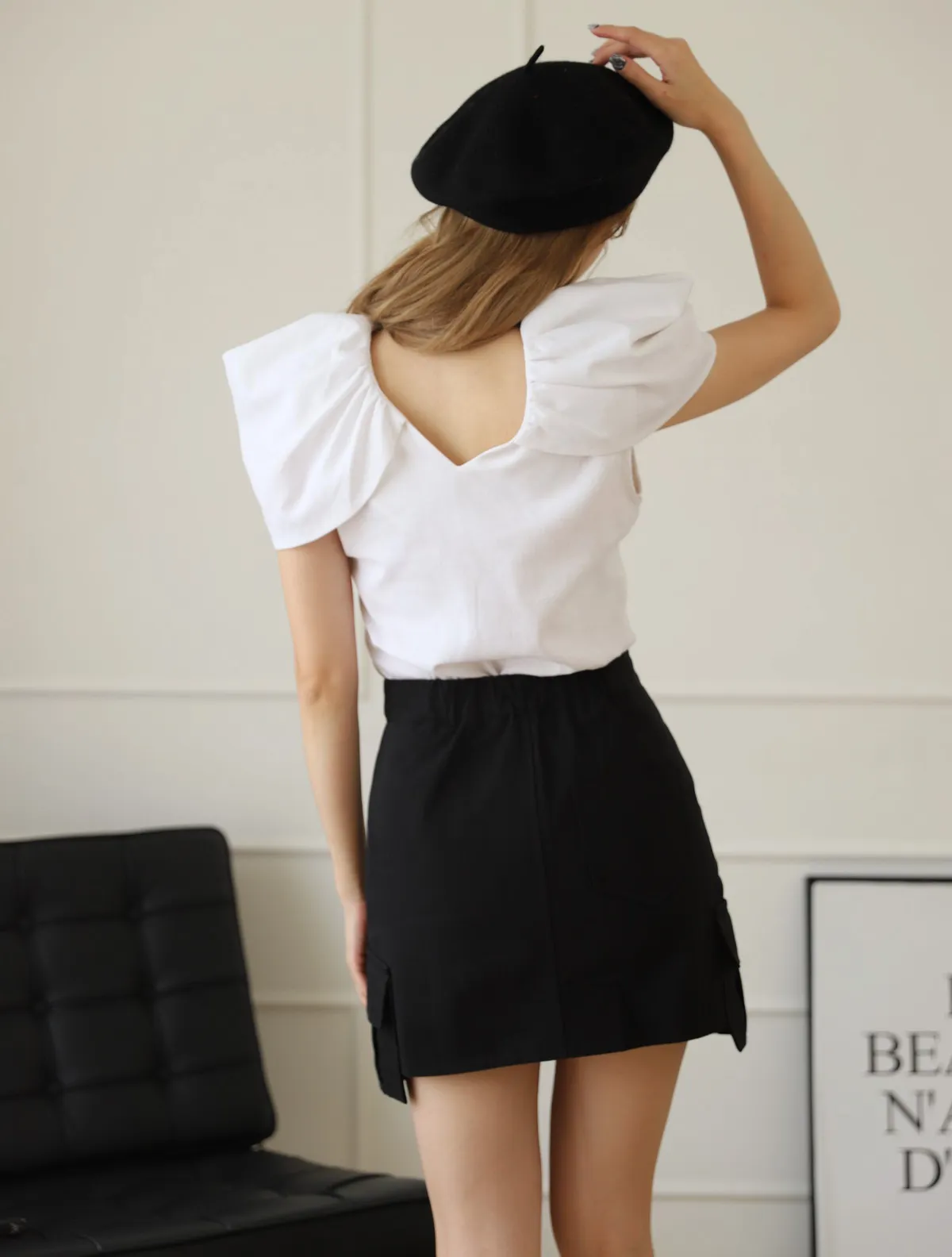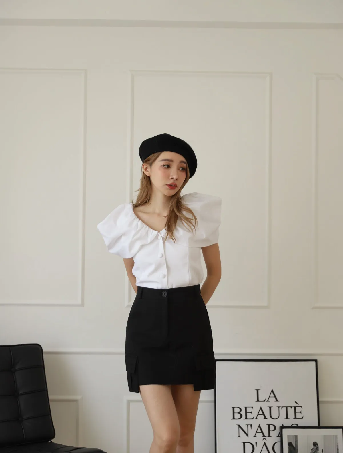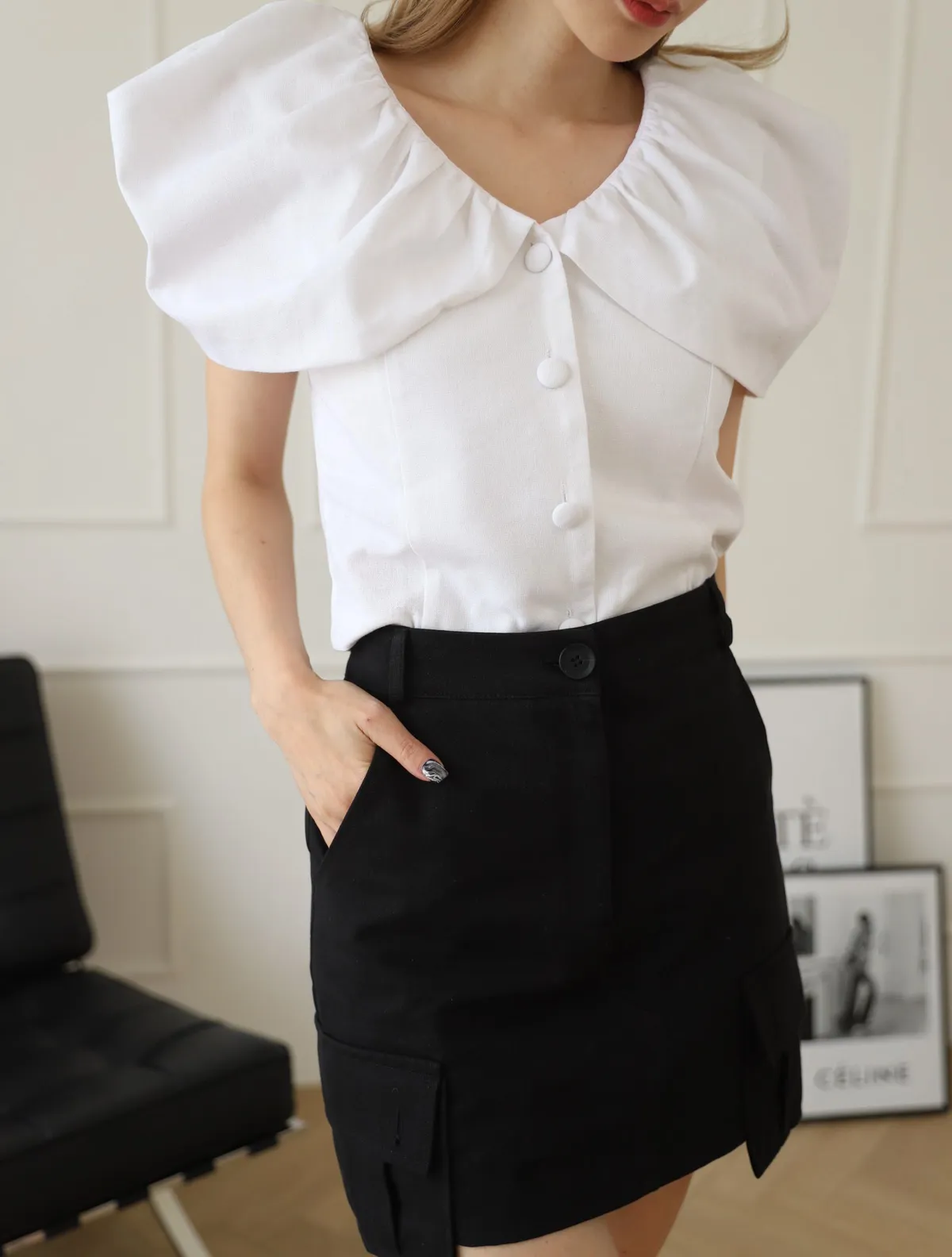 質感顯瘦包臀口袋工裝短裙 鬆緊裙