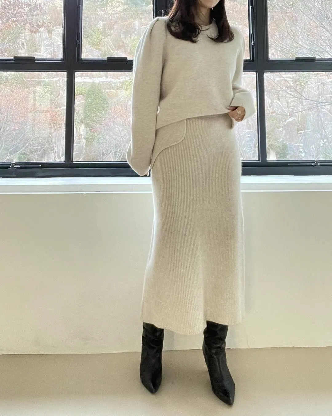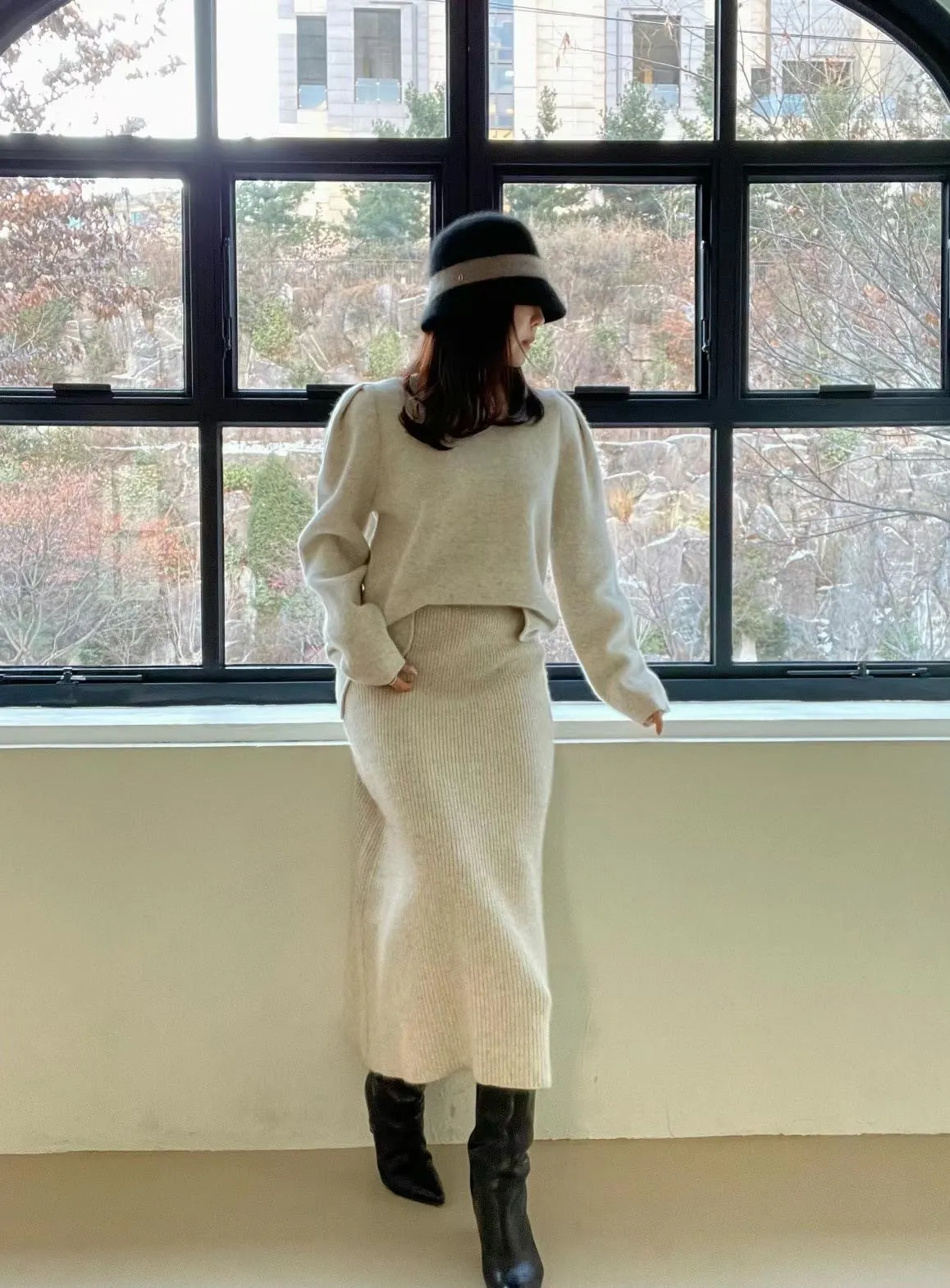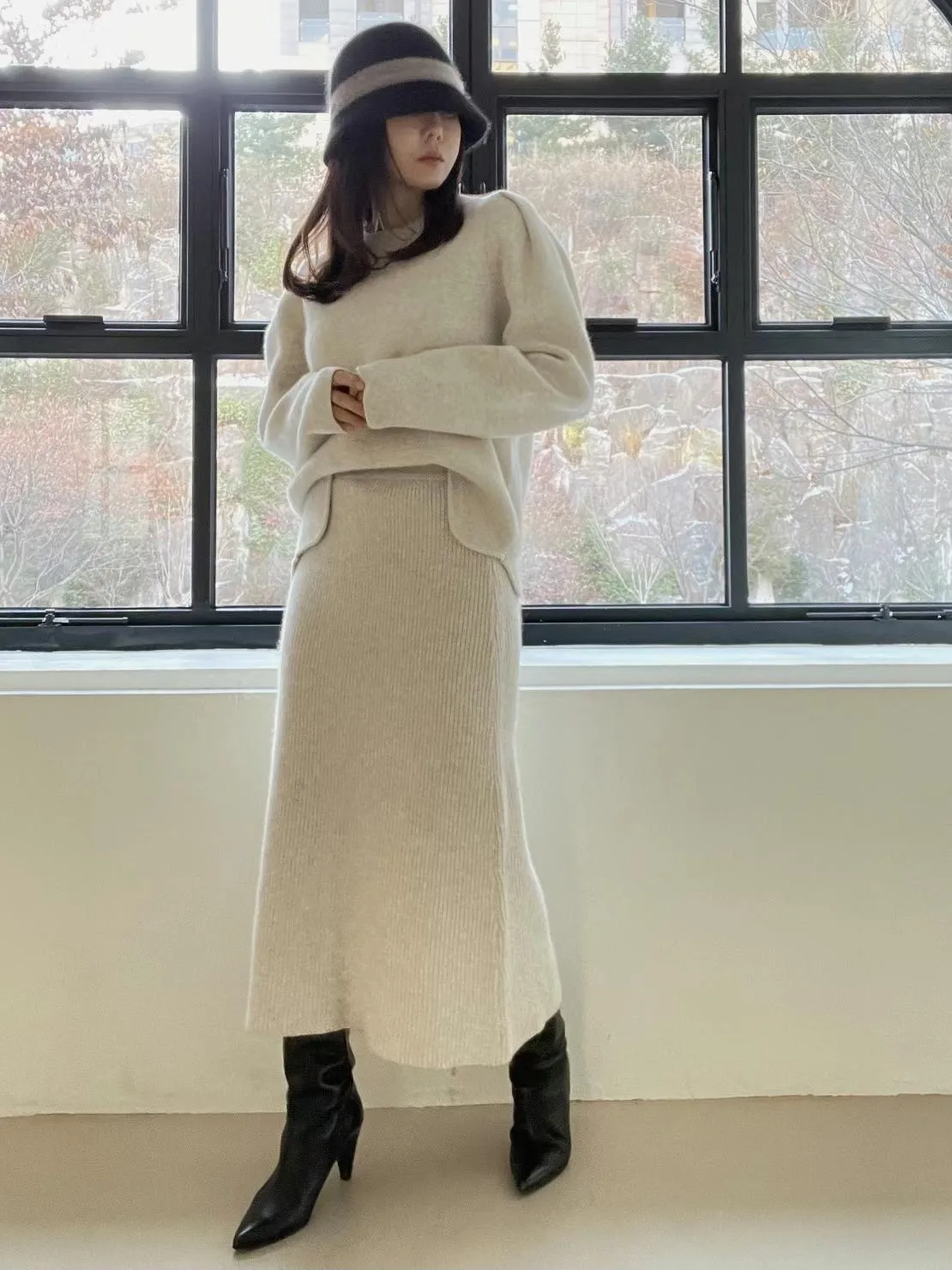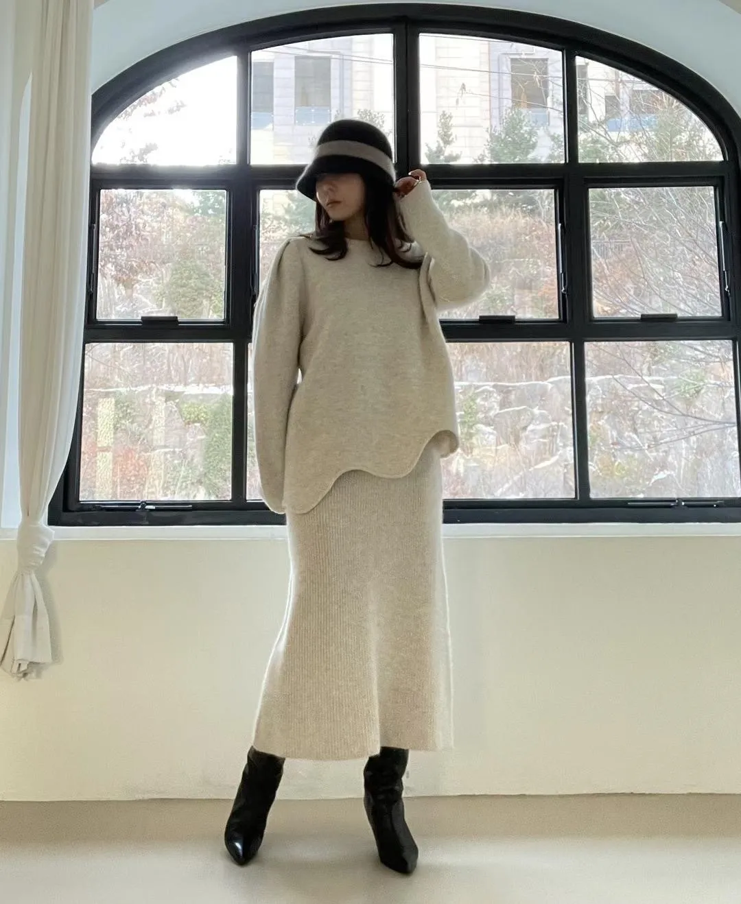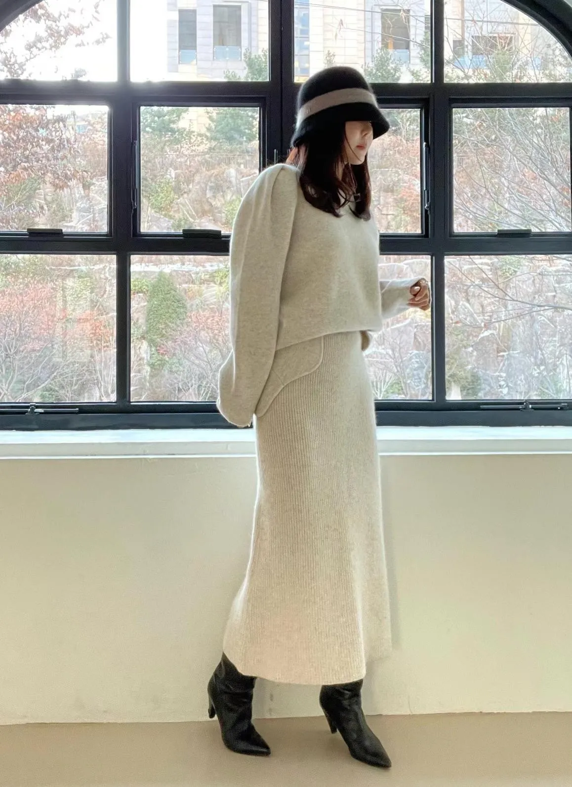 溫柔慵懶風浣熊毛氣質套裝裙 上衣+裙子set