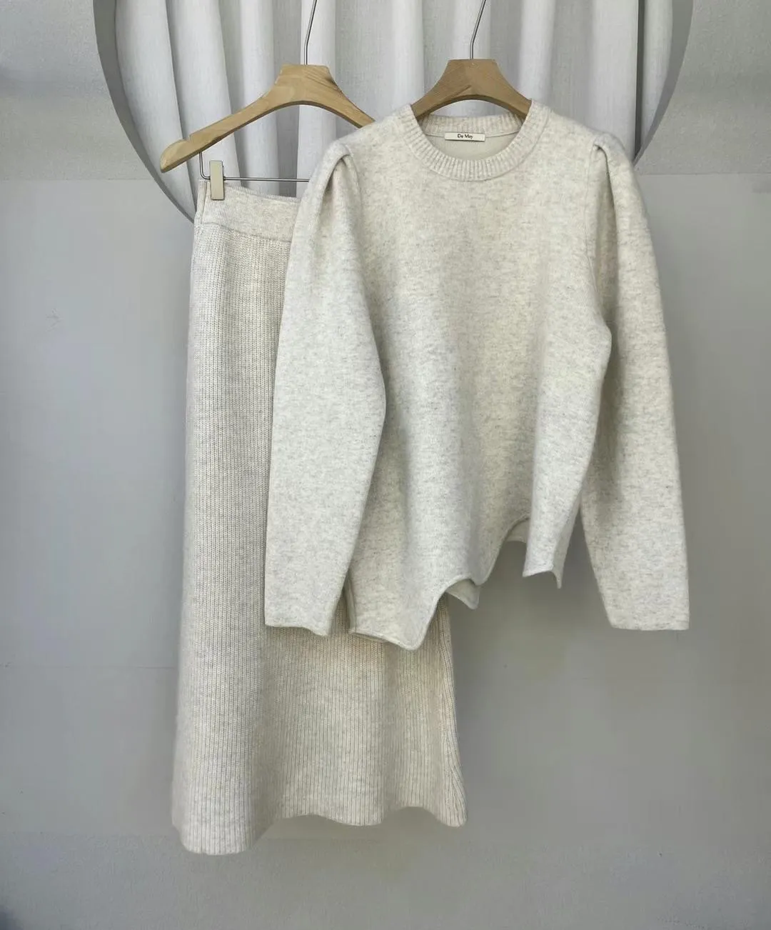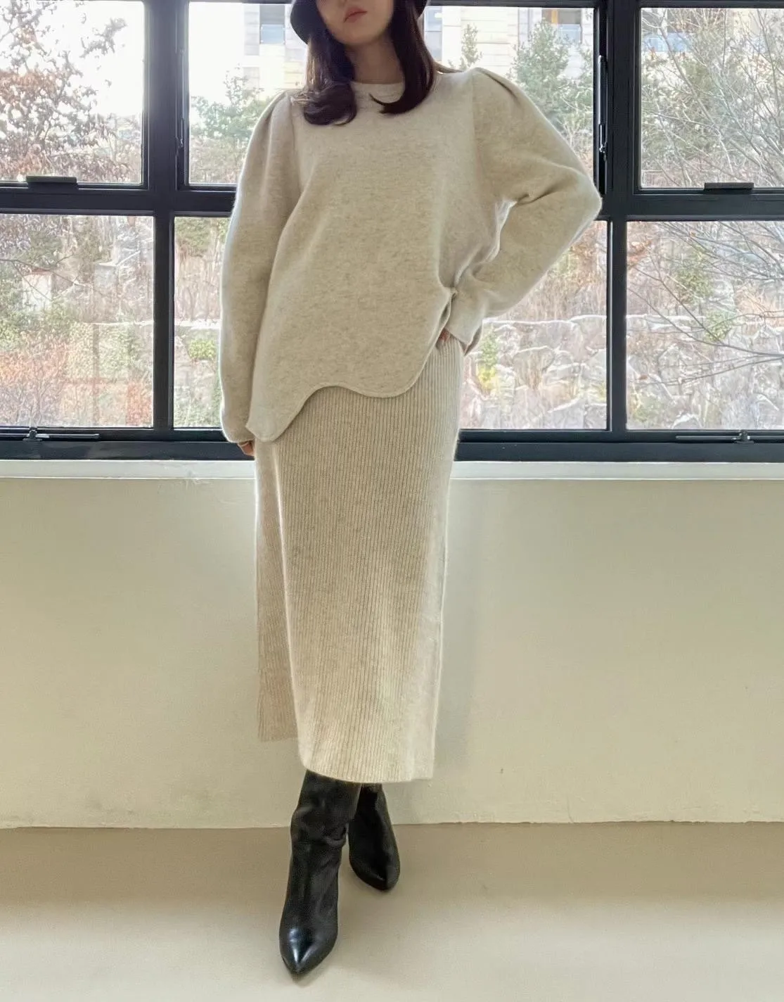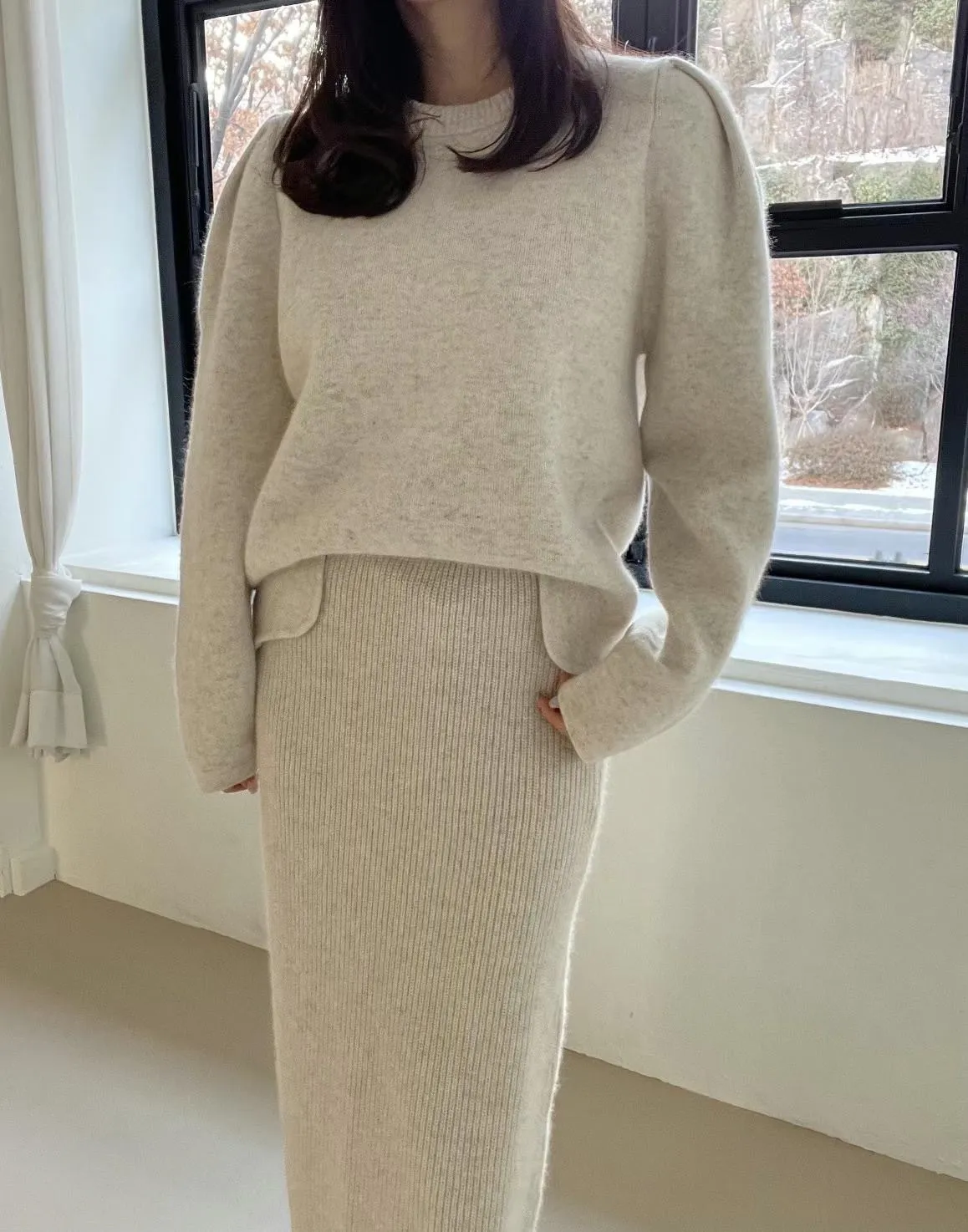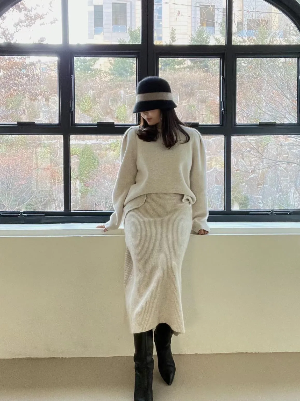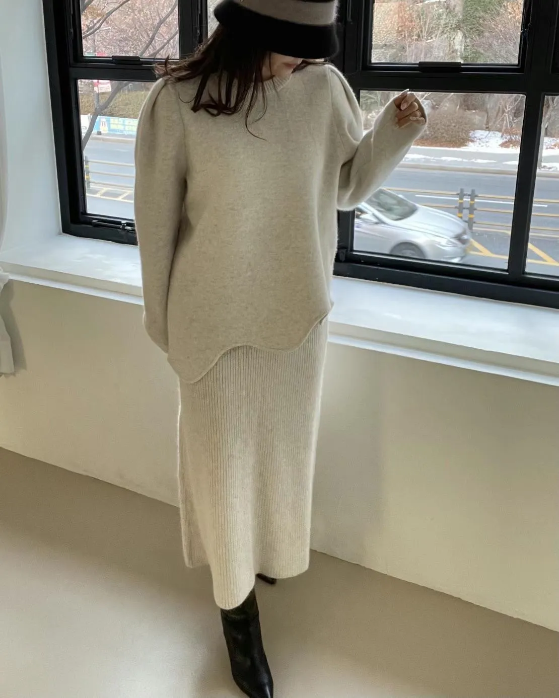溫柔慵懶風浣熊毛氣質套裝裙 上衣+裙子set