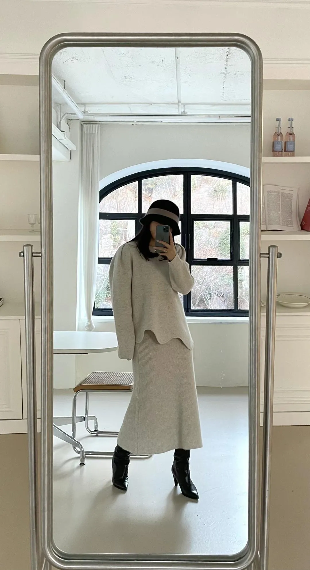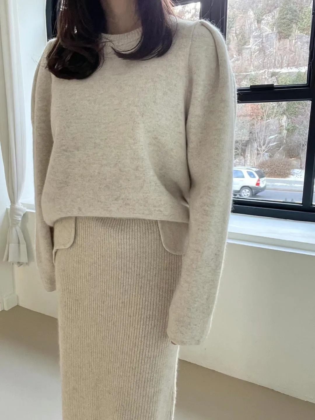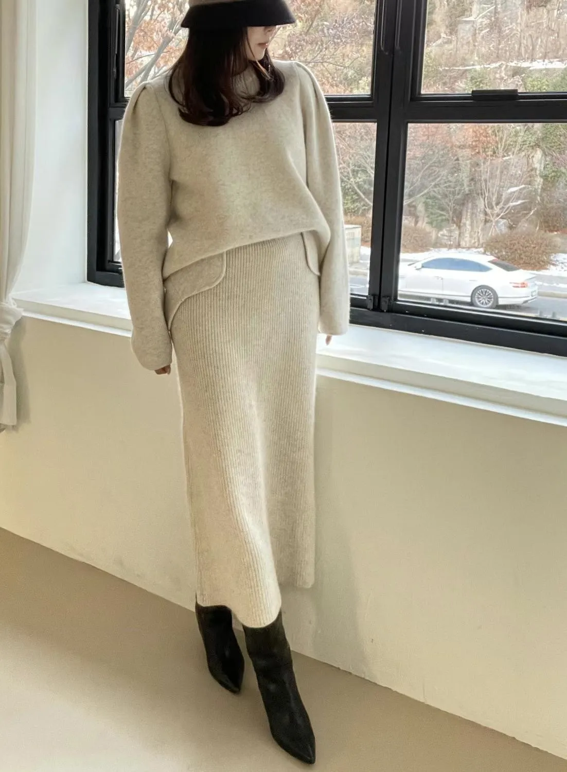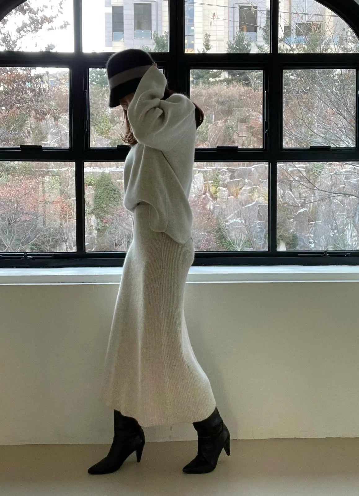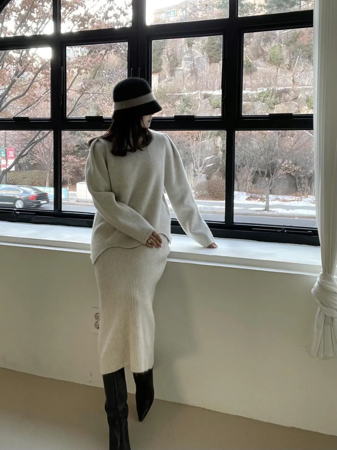 溫柔慵懶風浣熊毛氣質套裝裙 上衣+裙子set