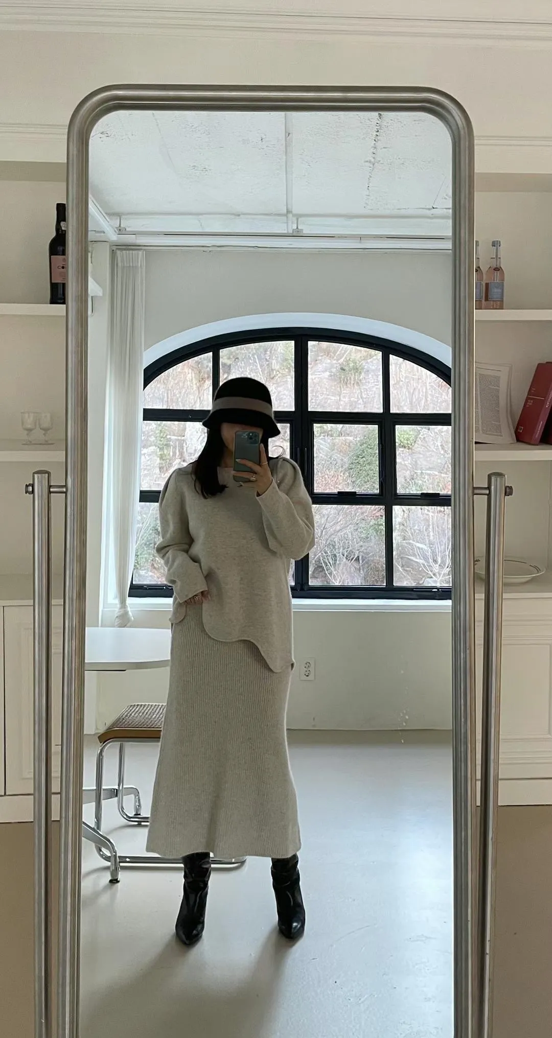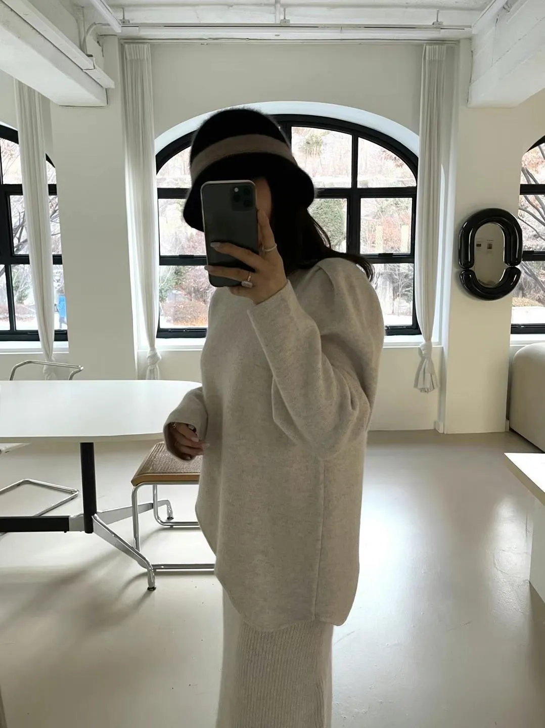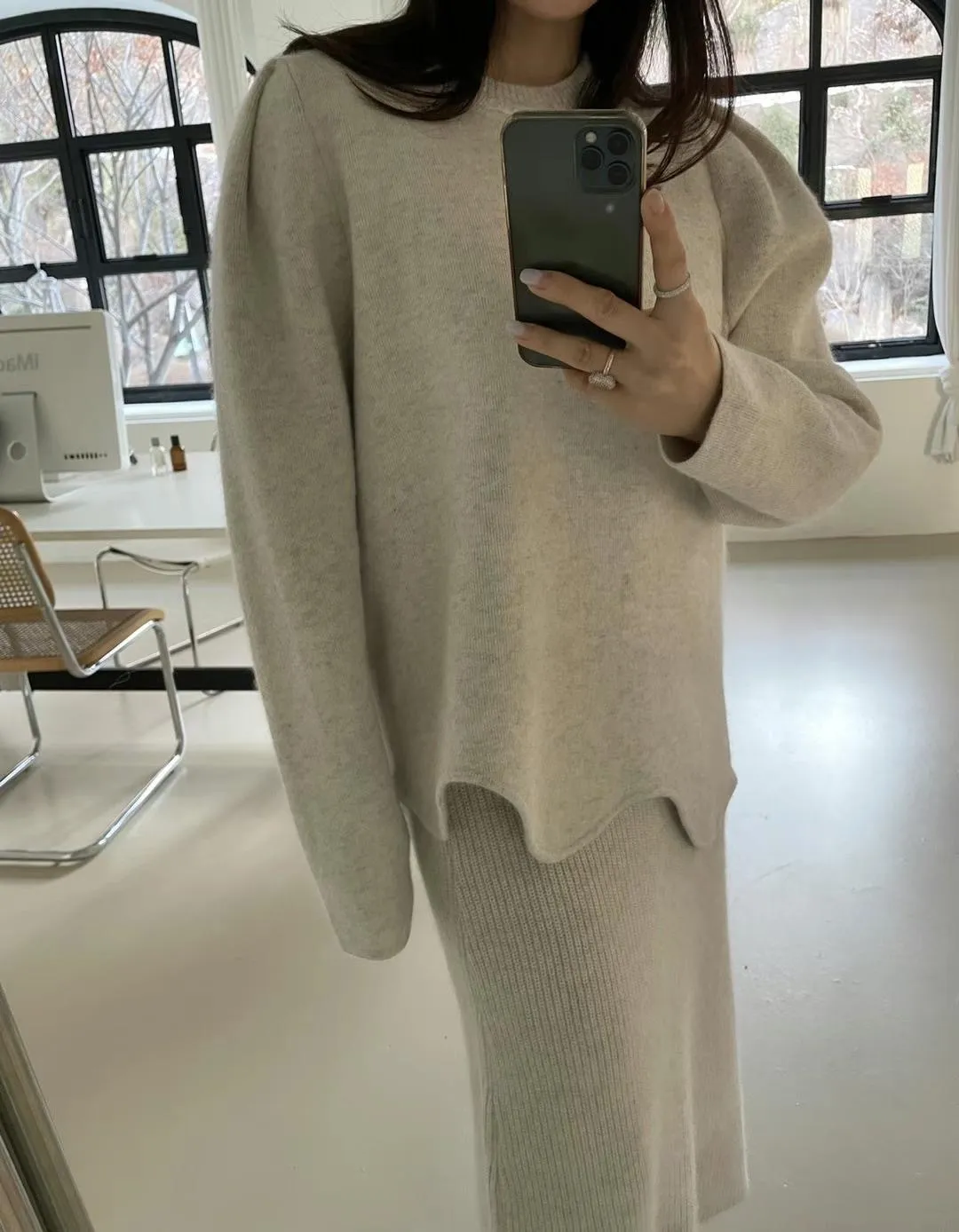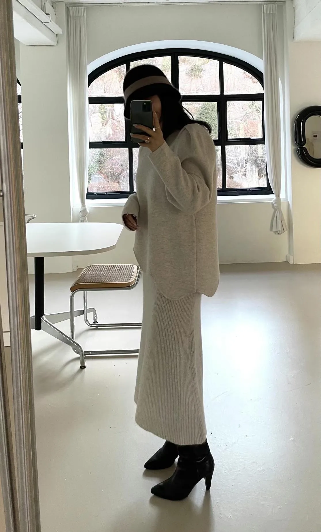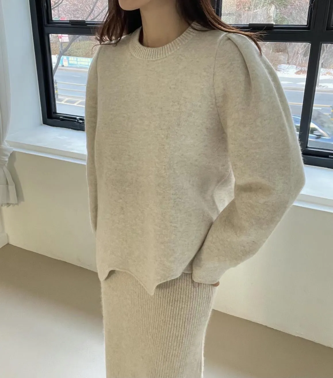 溫柔慵懶風浣熊毛氣質套裝裙 上衣+裙子set