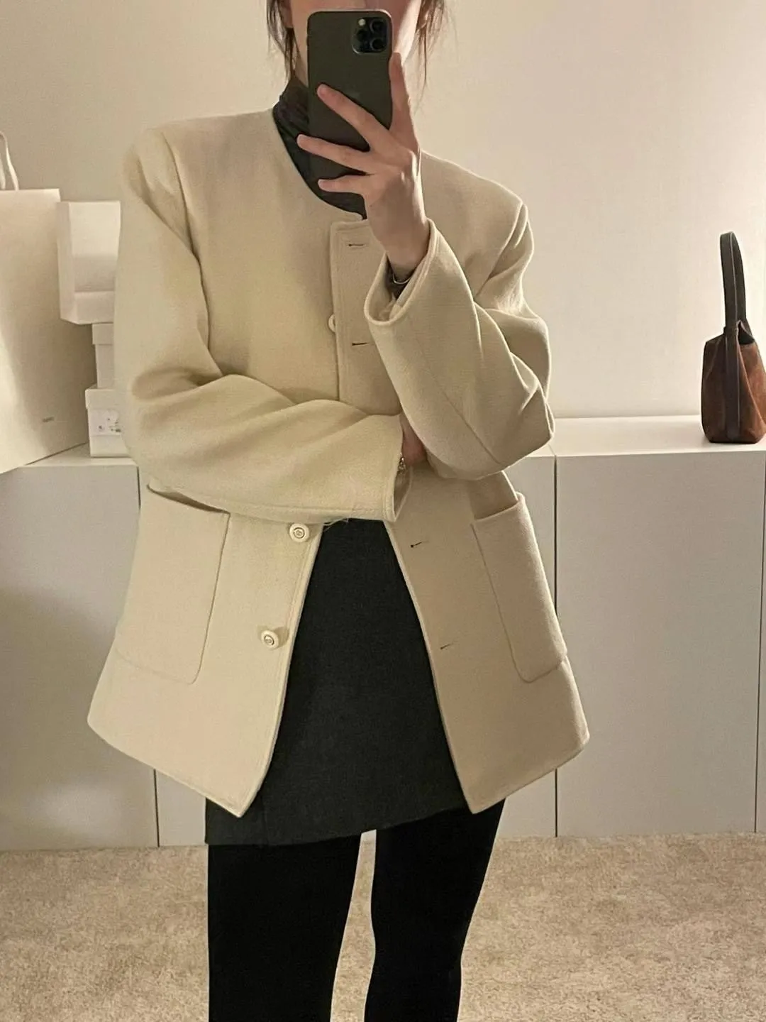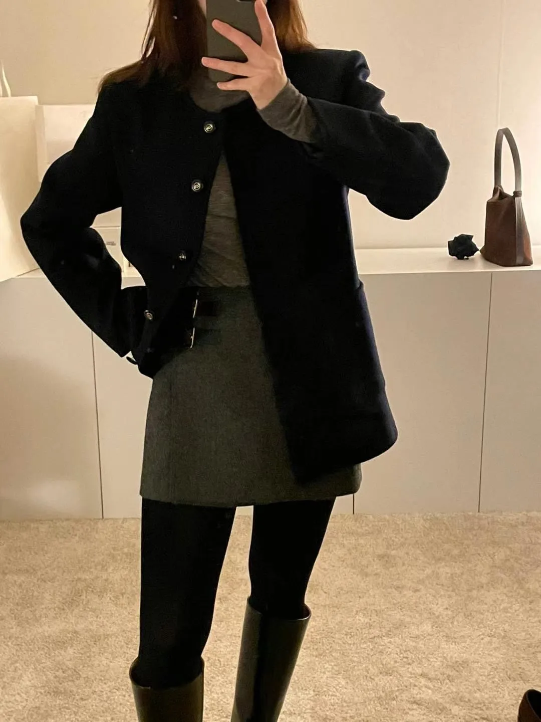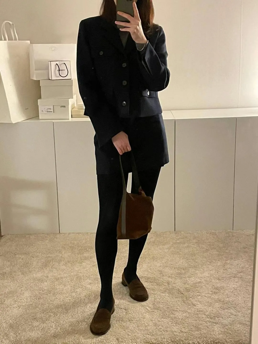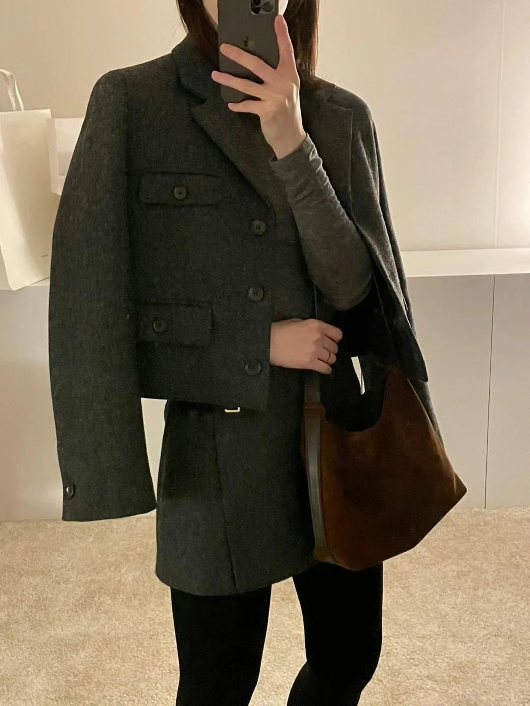 設計師款學院風羊毛西裝外套+羊毛百摺短裙set套裝