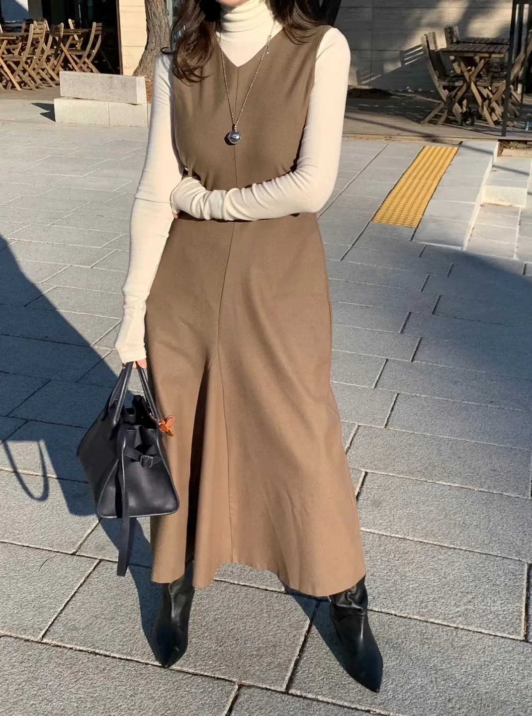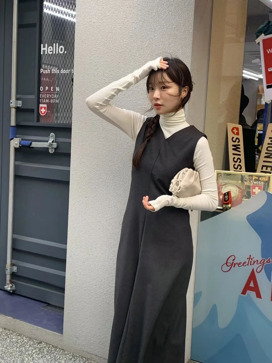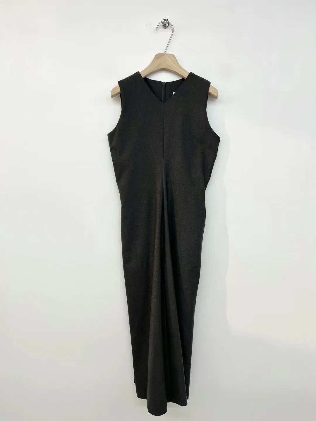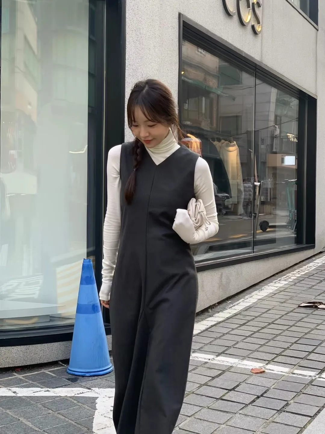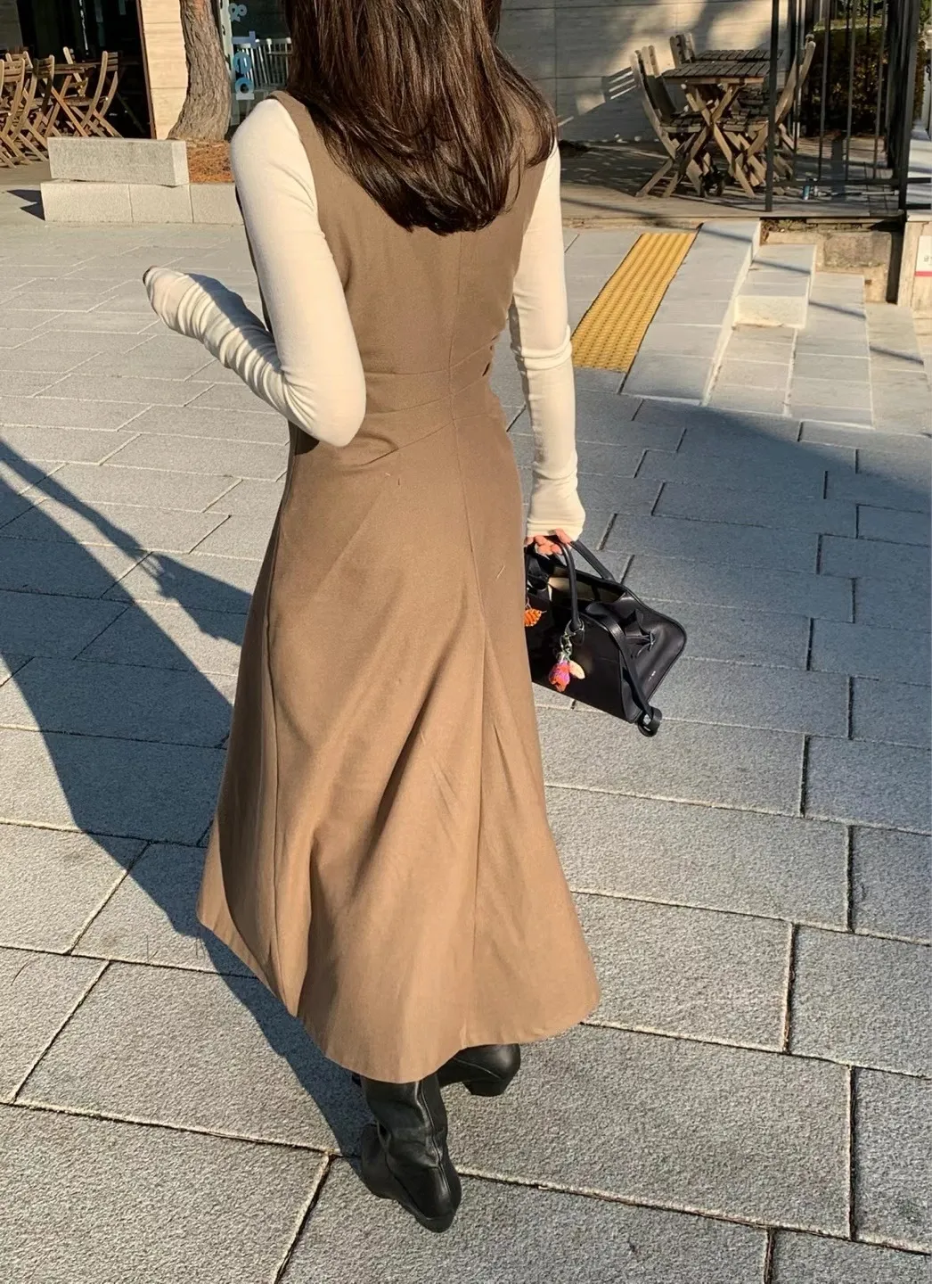 設計師品牌 氣質修身顯瘦v領羊毛無袖長款連衣裙