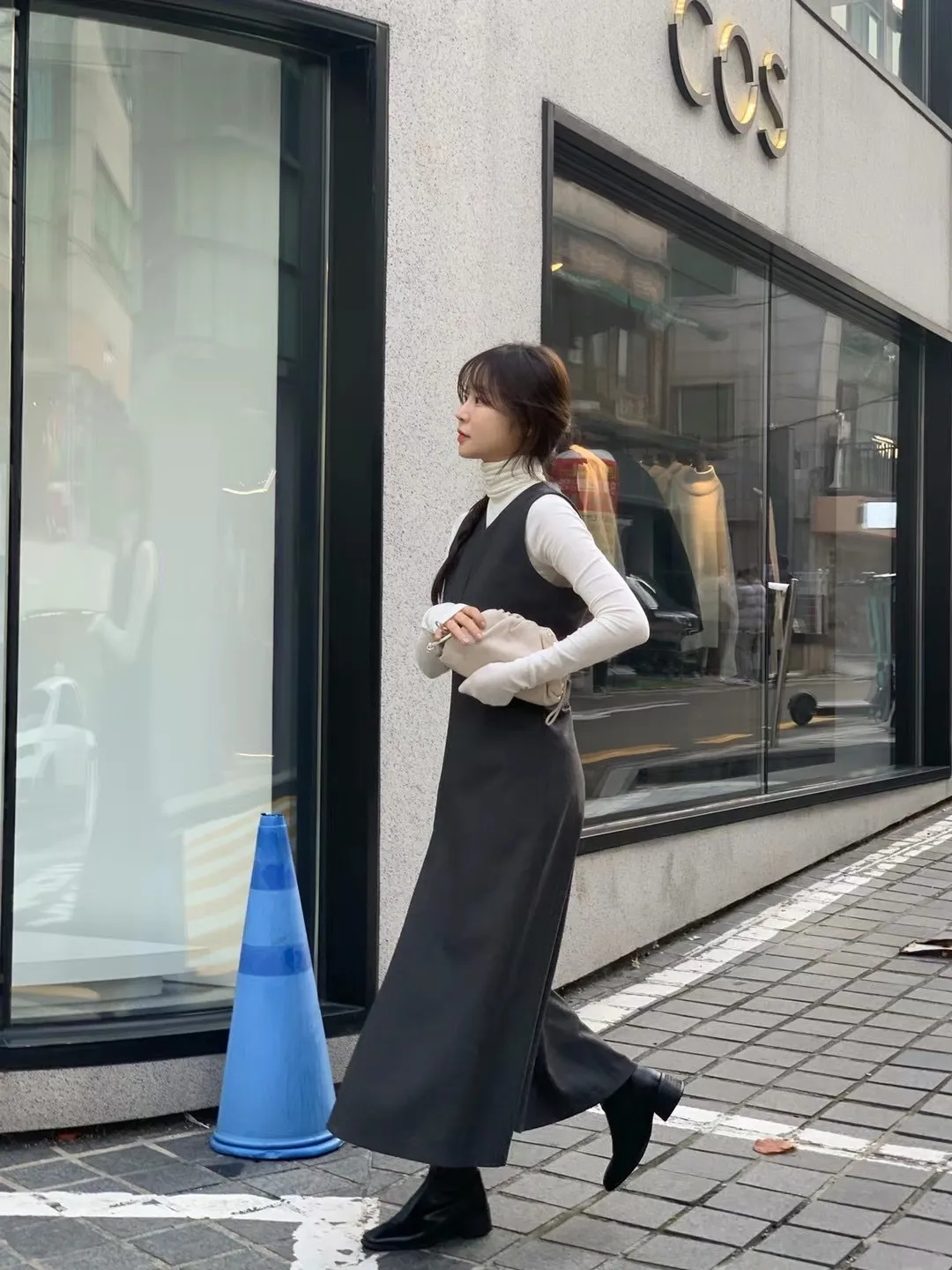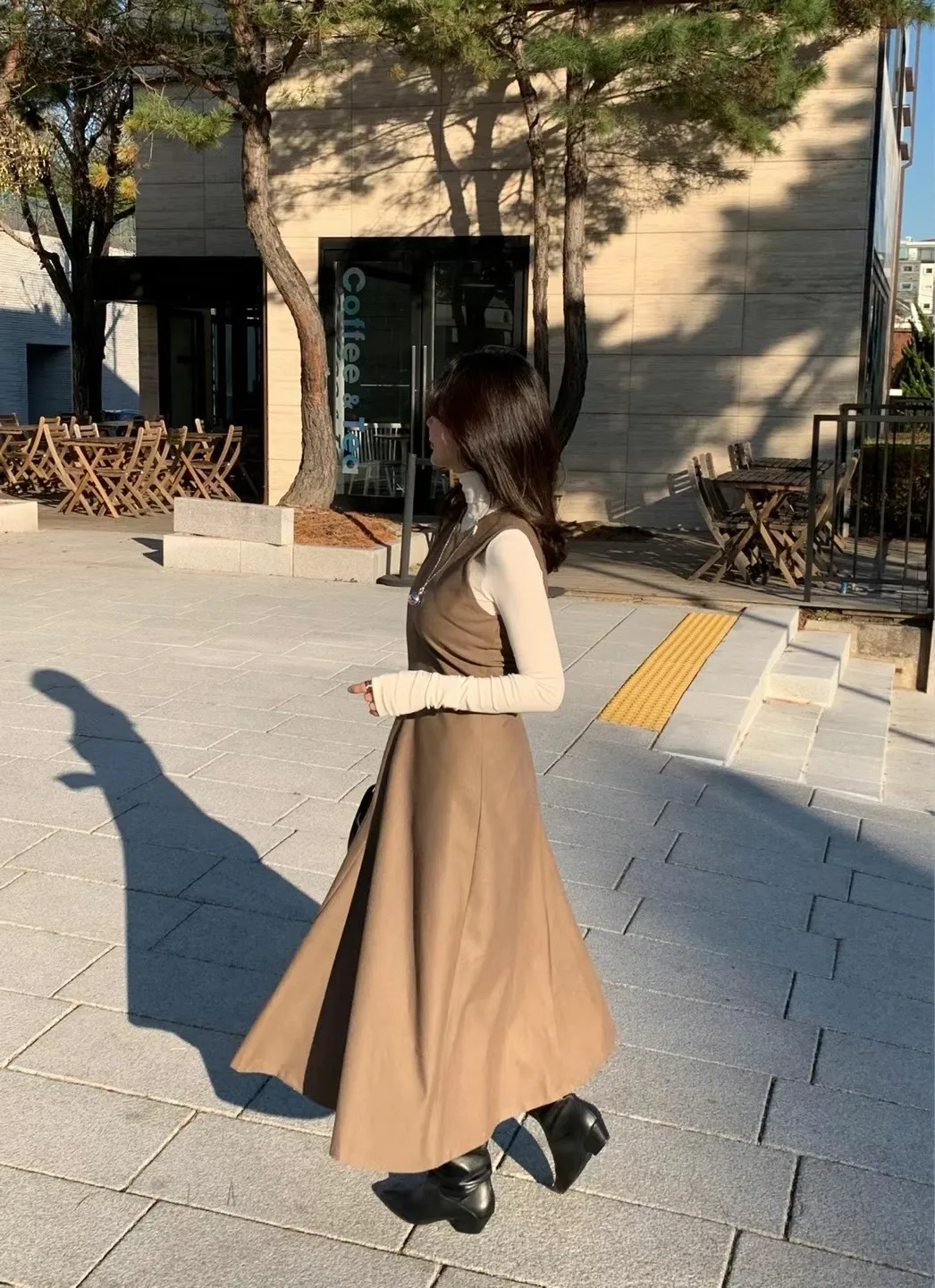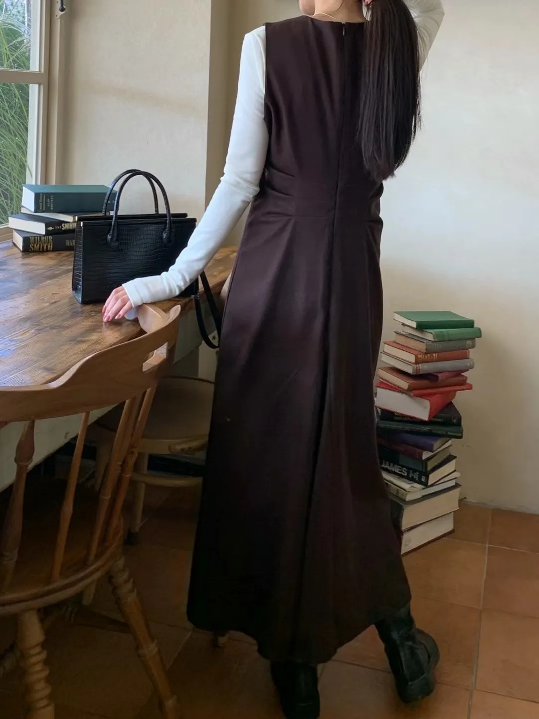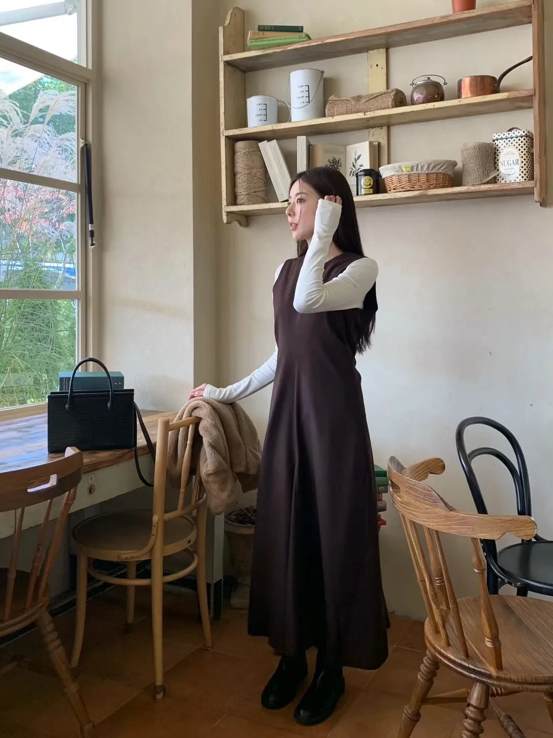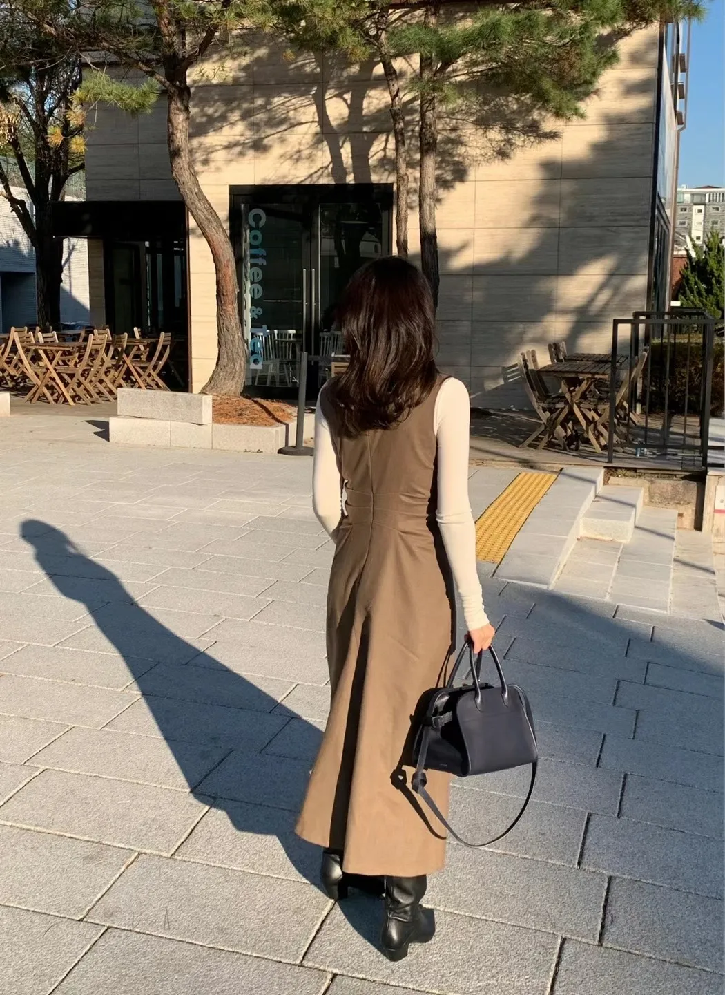 設計師品牌 氣質修身顯瘦v領羊毛無袖長款連衣裙