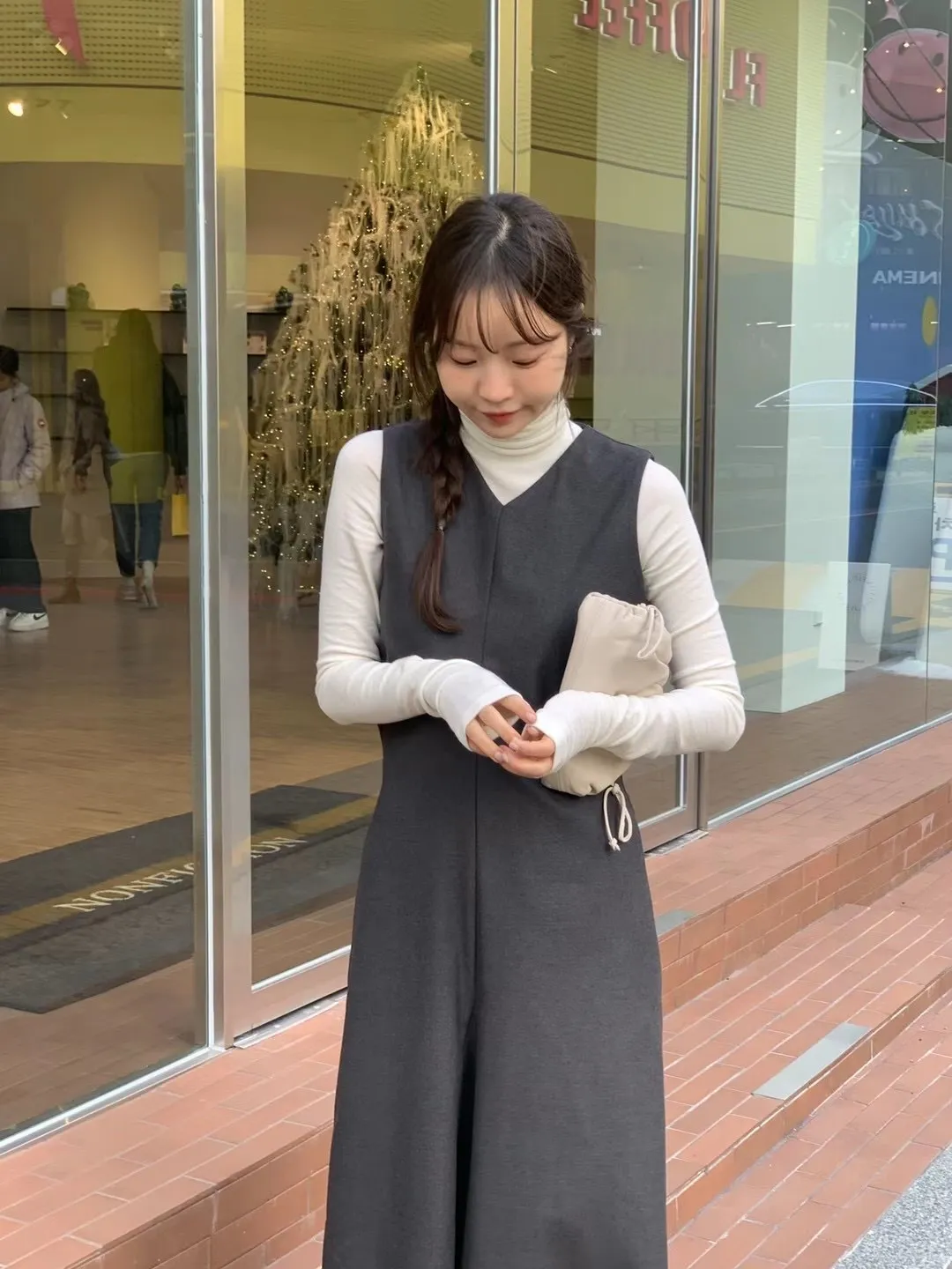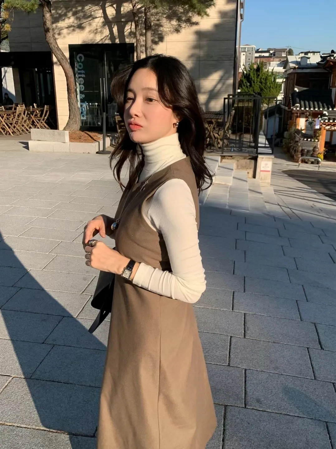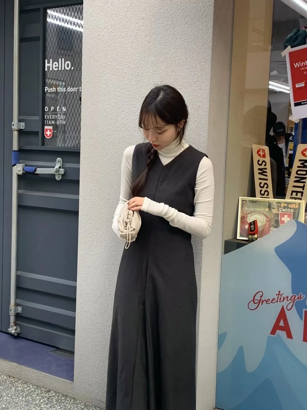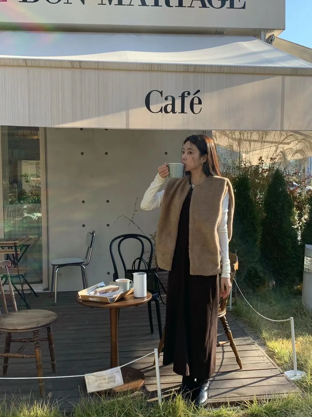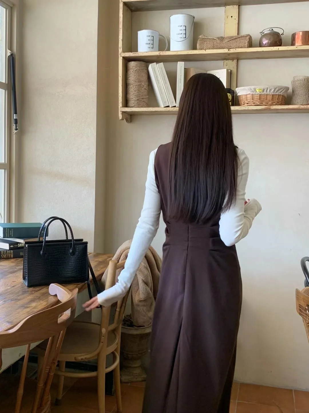 設計師品牌 氣質修身顯瘦v領羊毛無袖長款連衣裙
