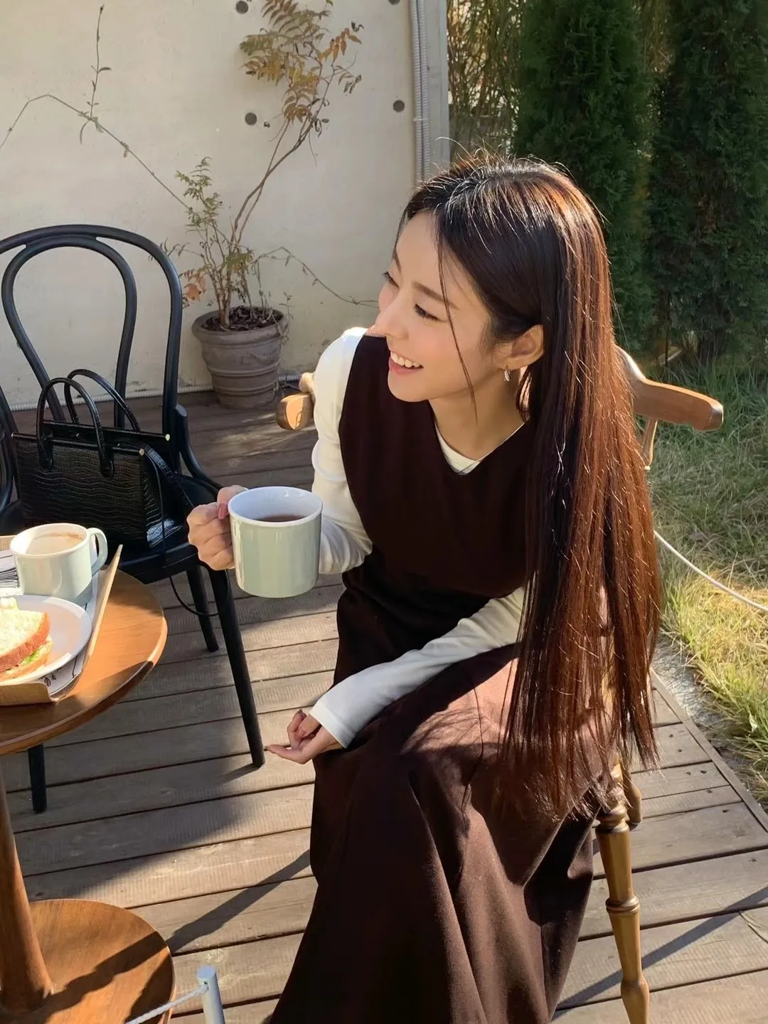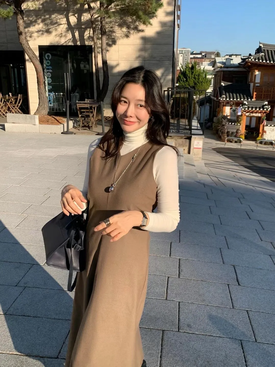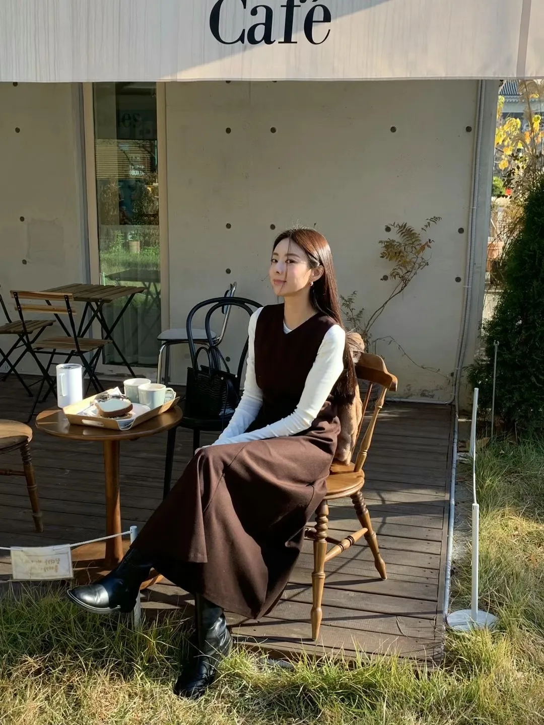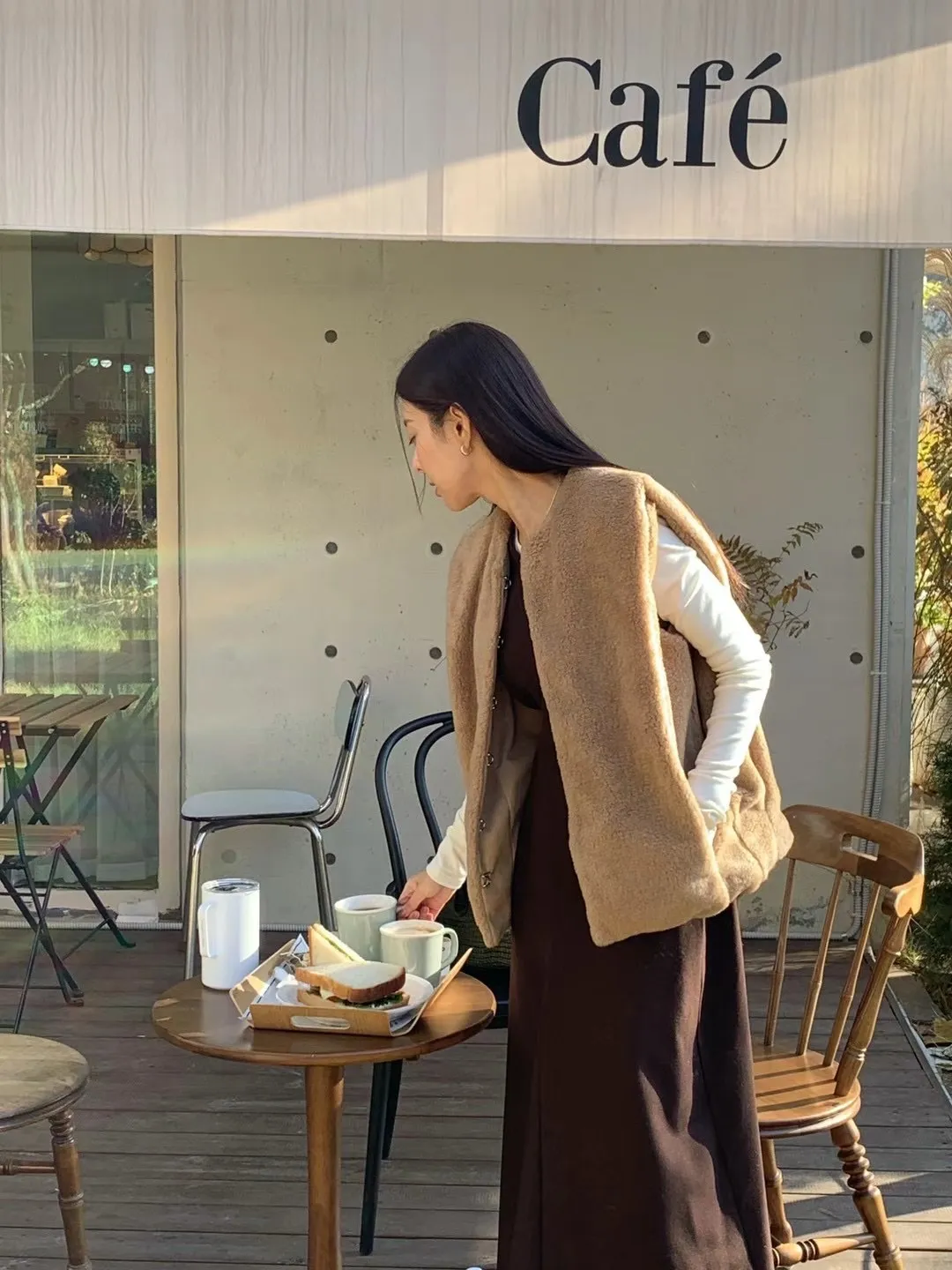 設計師品牌 氣質修身顯瘦v領羊毛無袖長款連衣裙