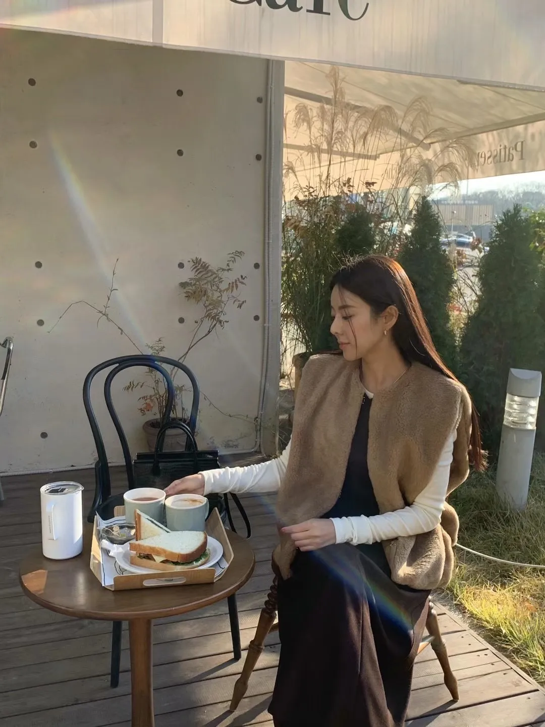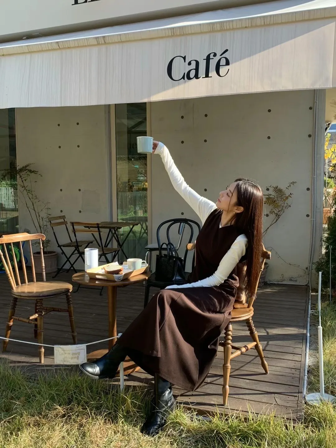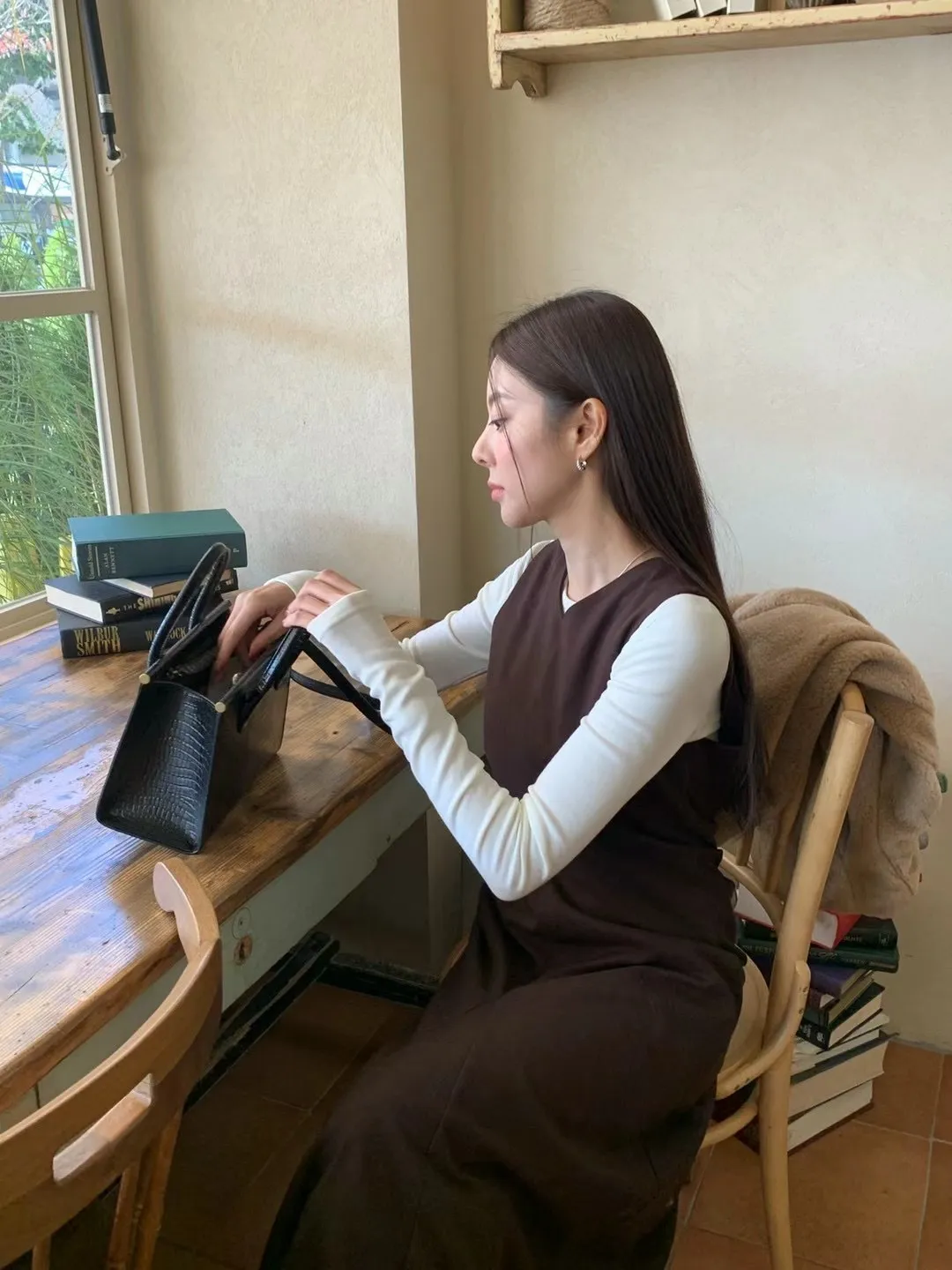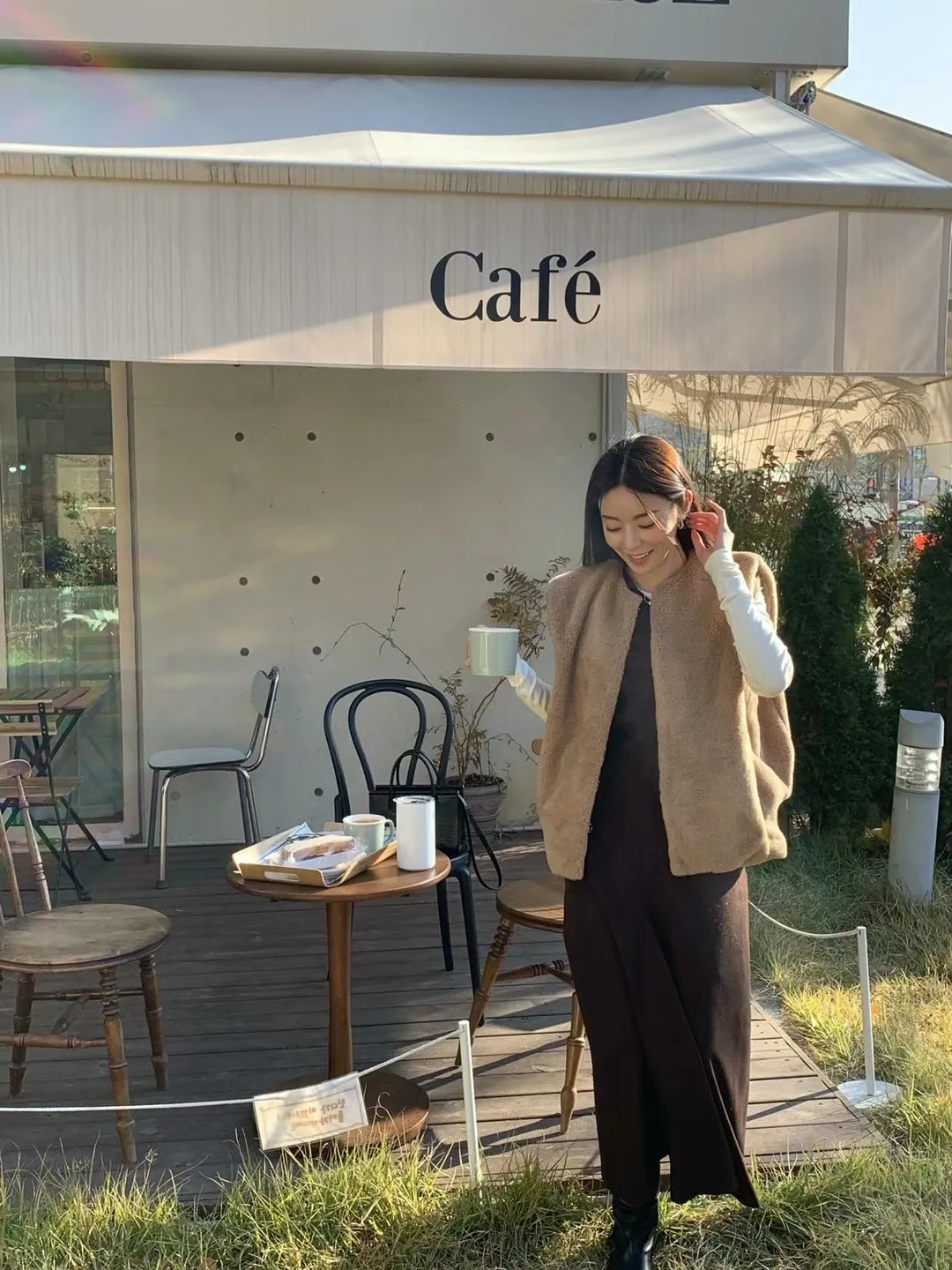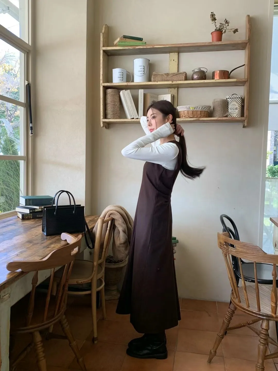 設計師品牌 氣質修身顯瘦v領羊毛無袖長款連衣裙