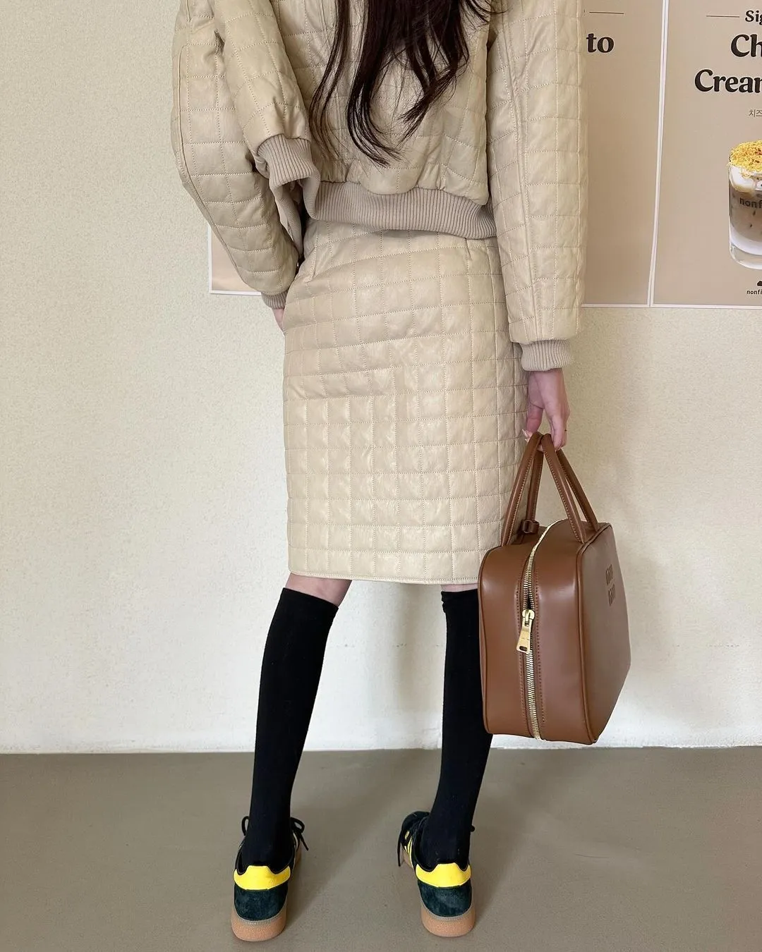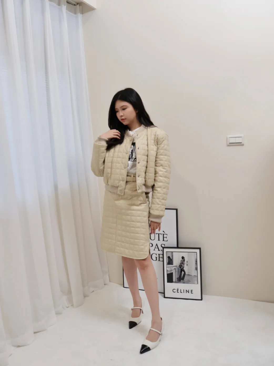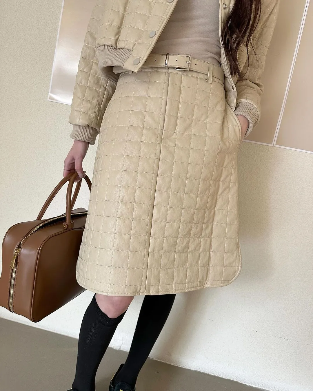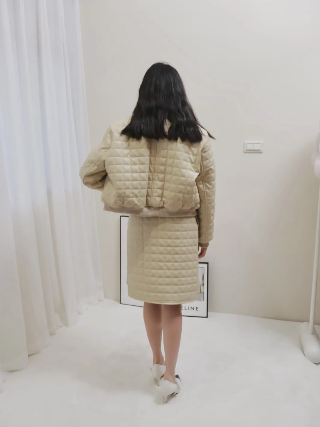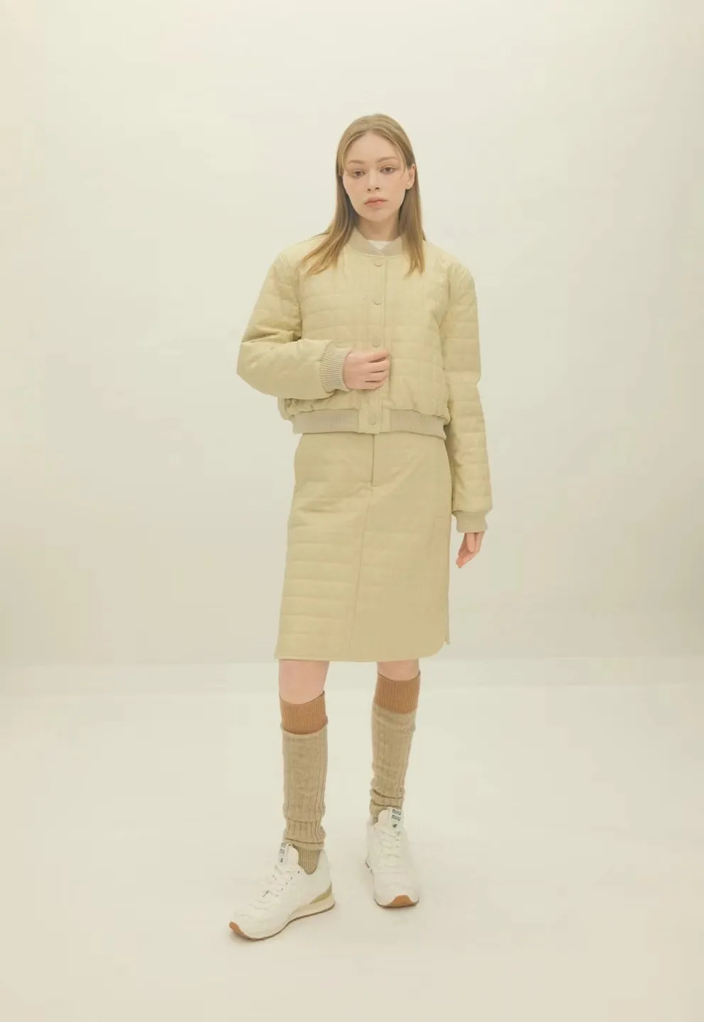 設計師品牌 休閒圓領棉服外套+裙子 套裝
