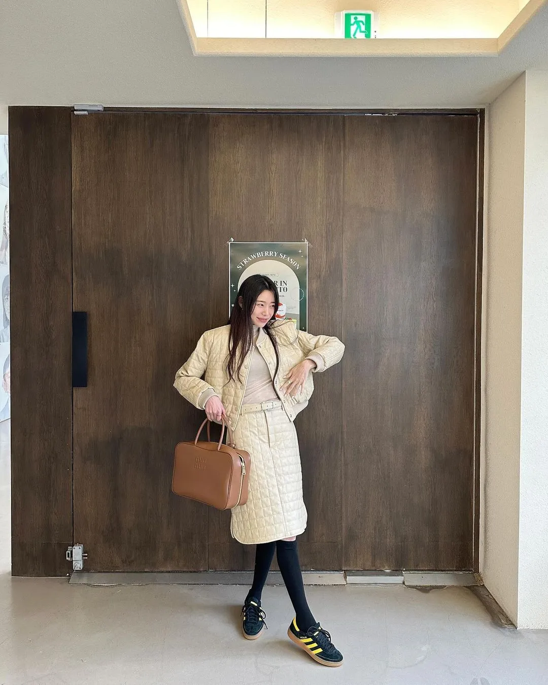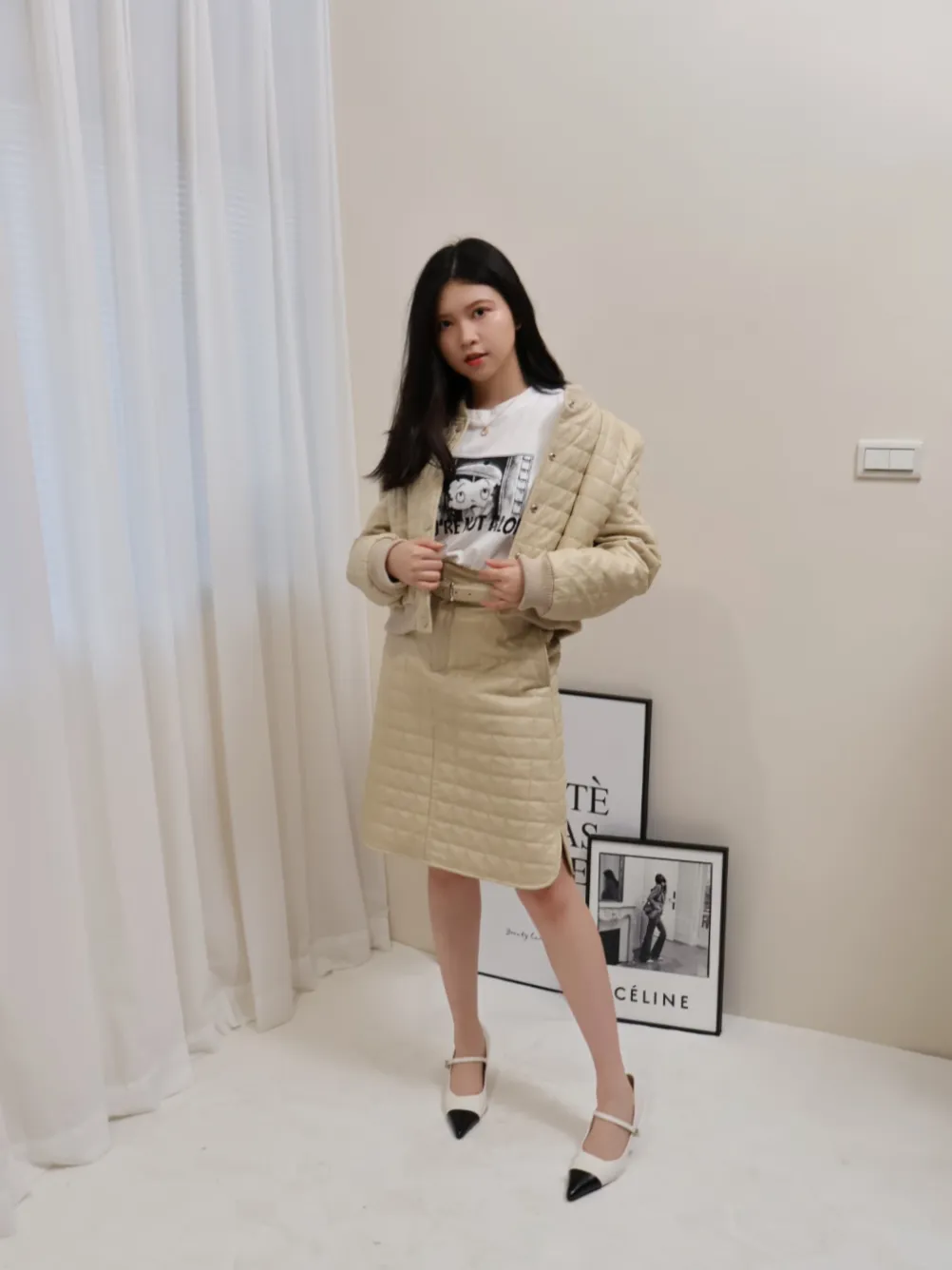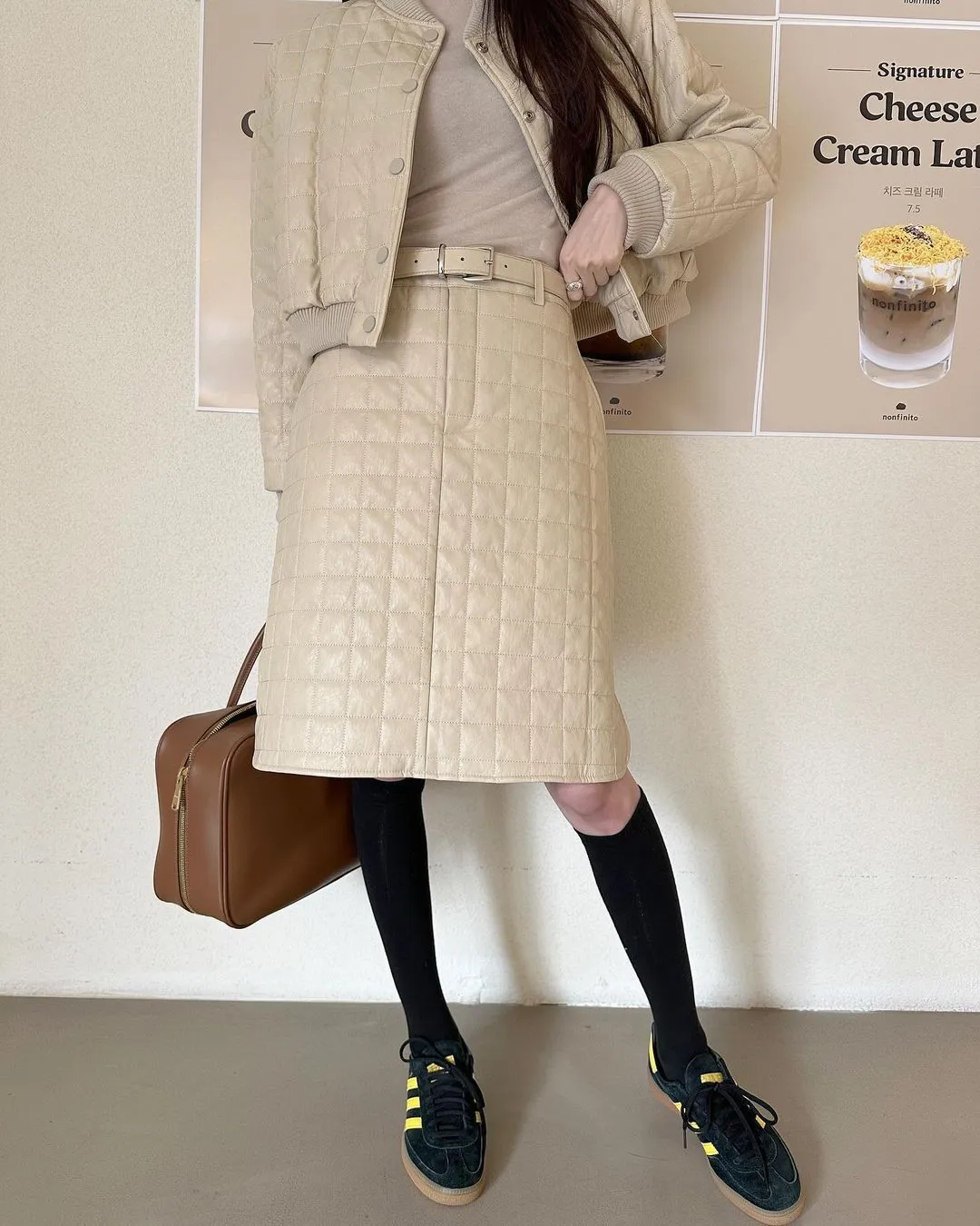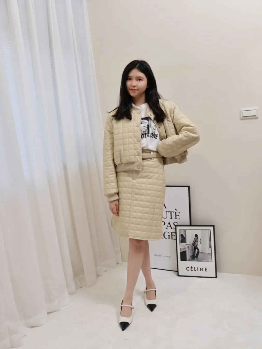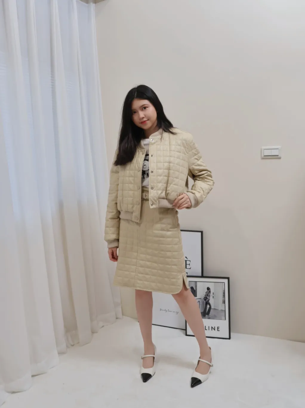 設計師品牌 休閒圓領棉服外套+裙子 套裝