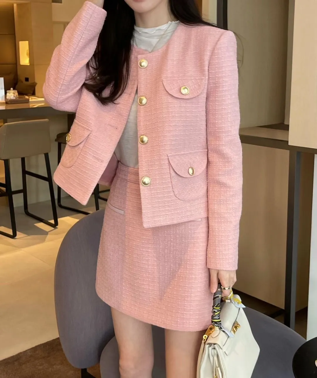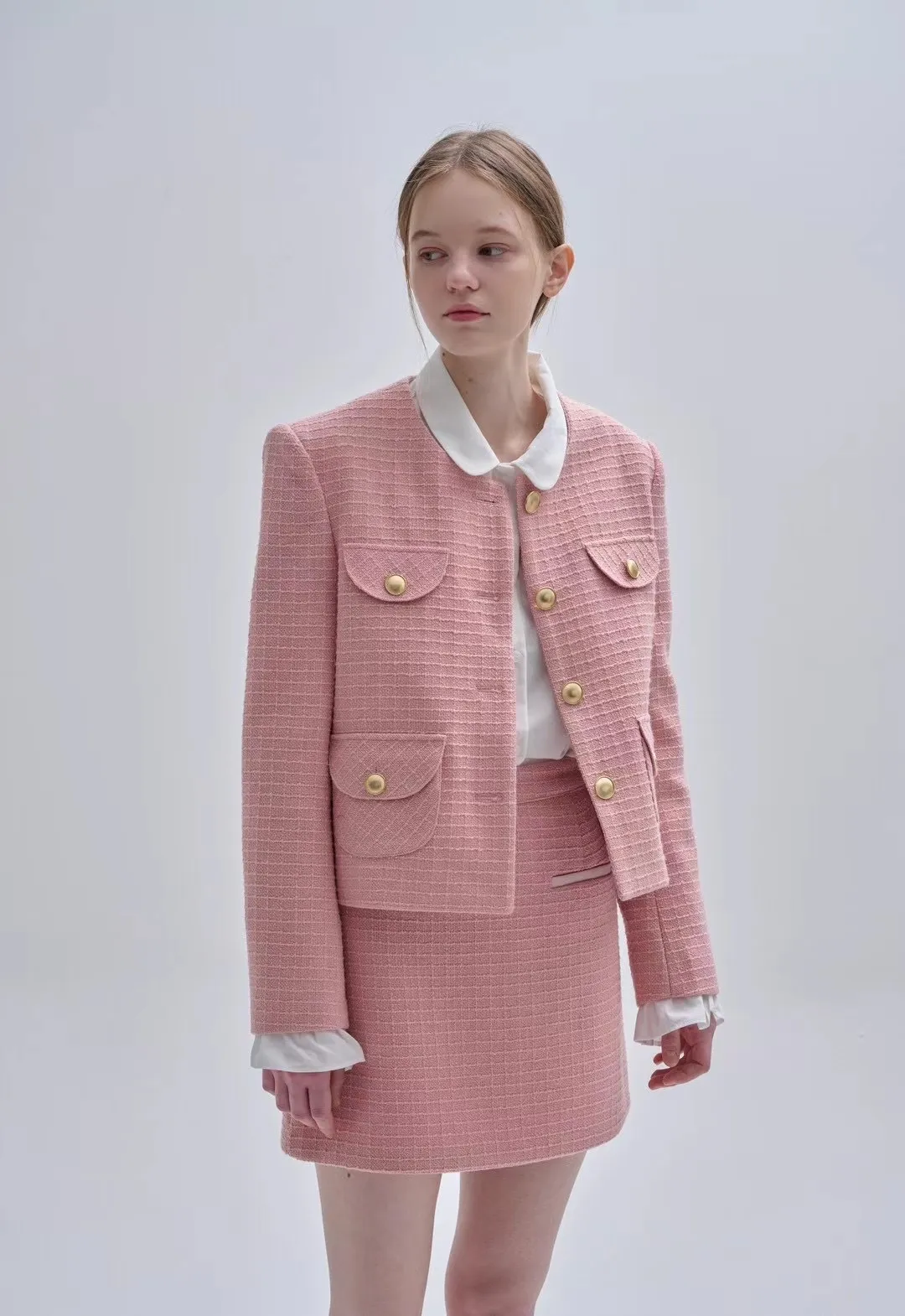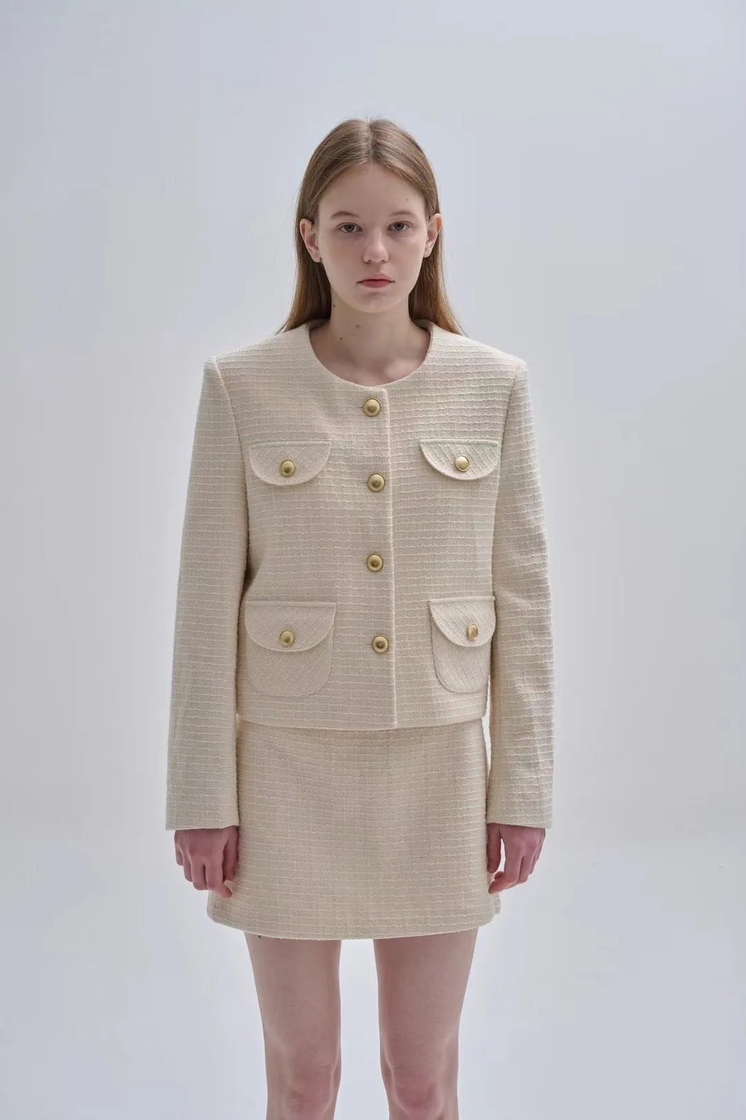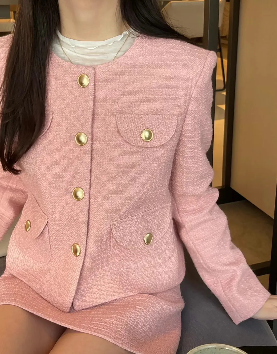設計師品牌 小香風羊毛70%氣質金釦外套+小香風短裙 套裝