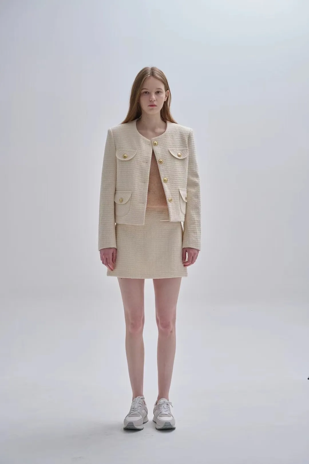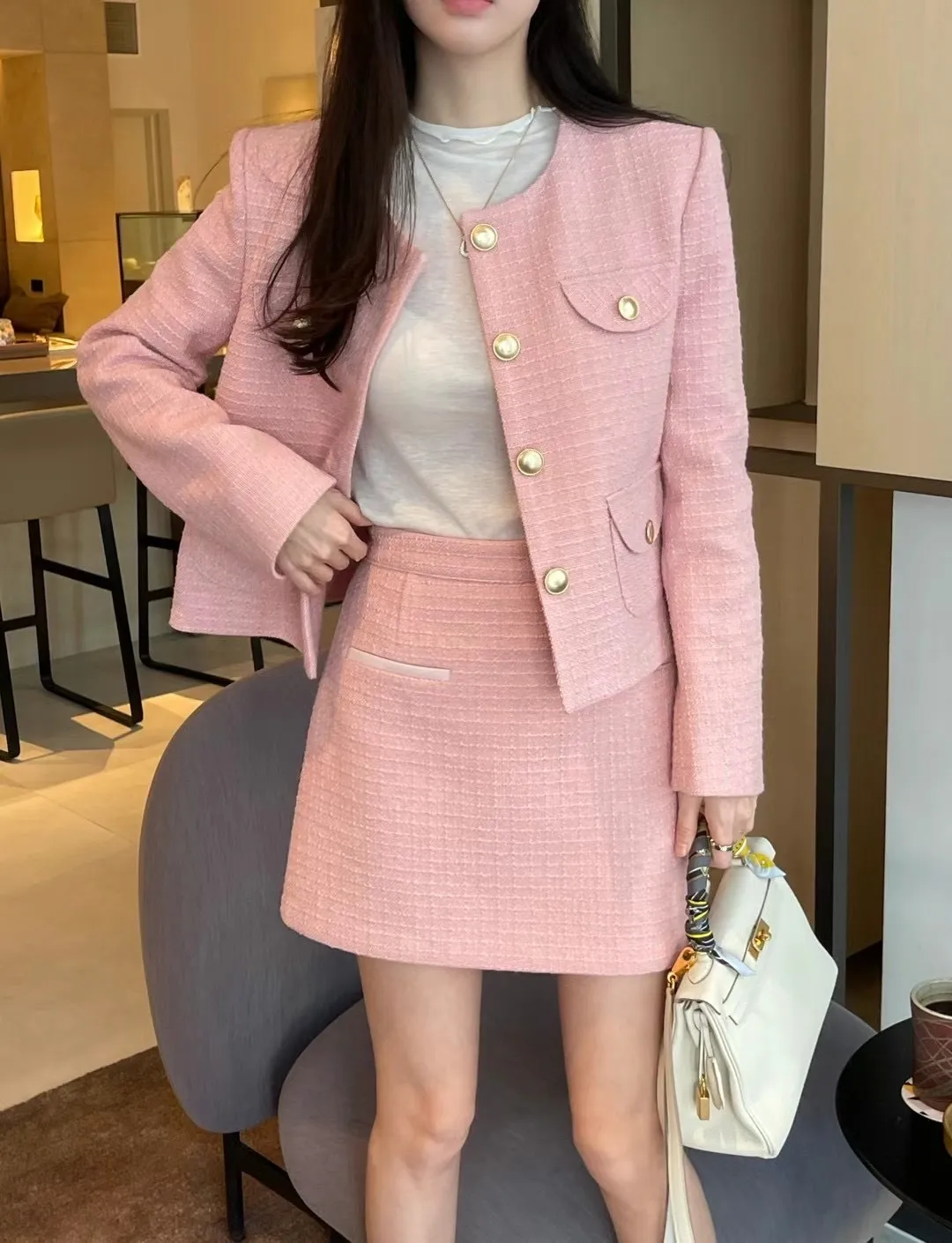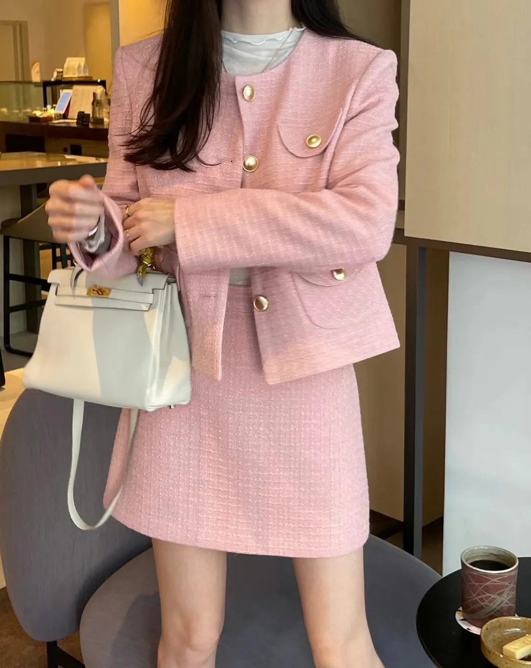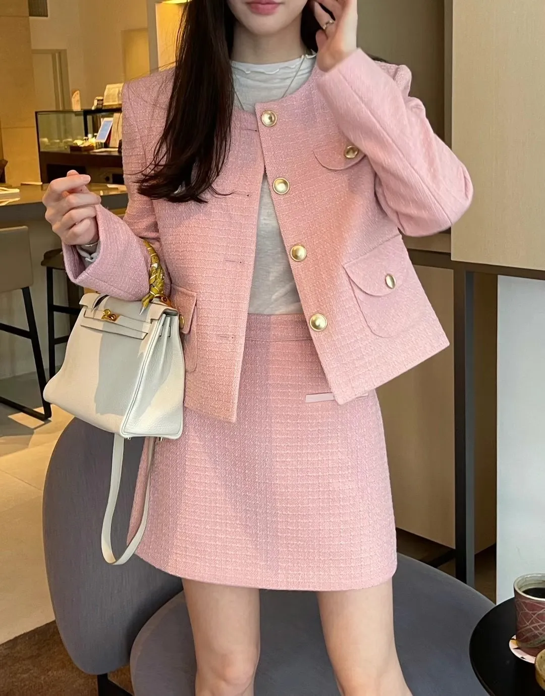 設計師品牌 小香風羊毛70%氣質金釦外套+小香風短裙 套裝