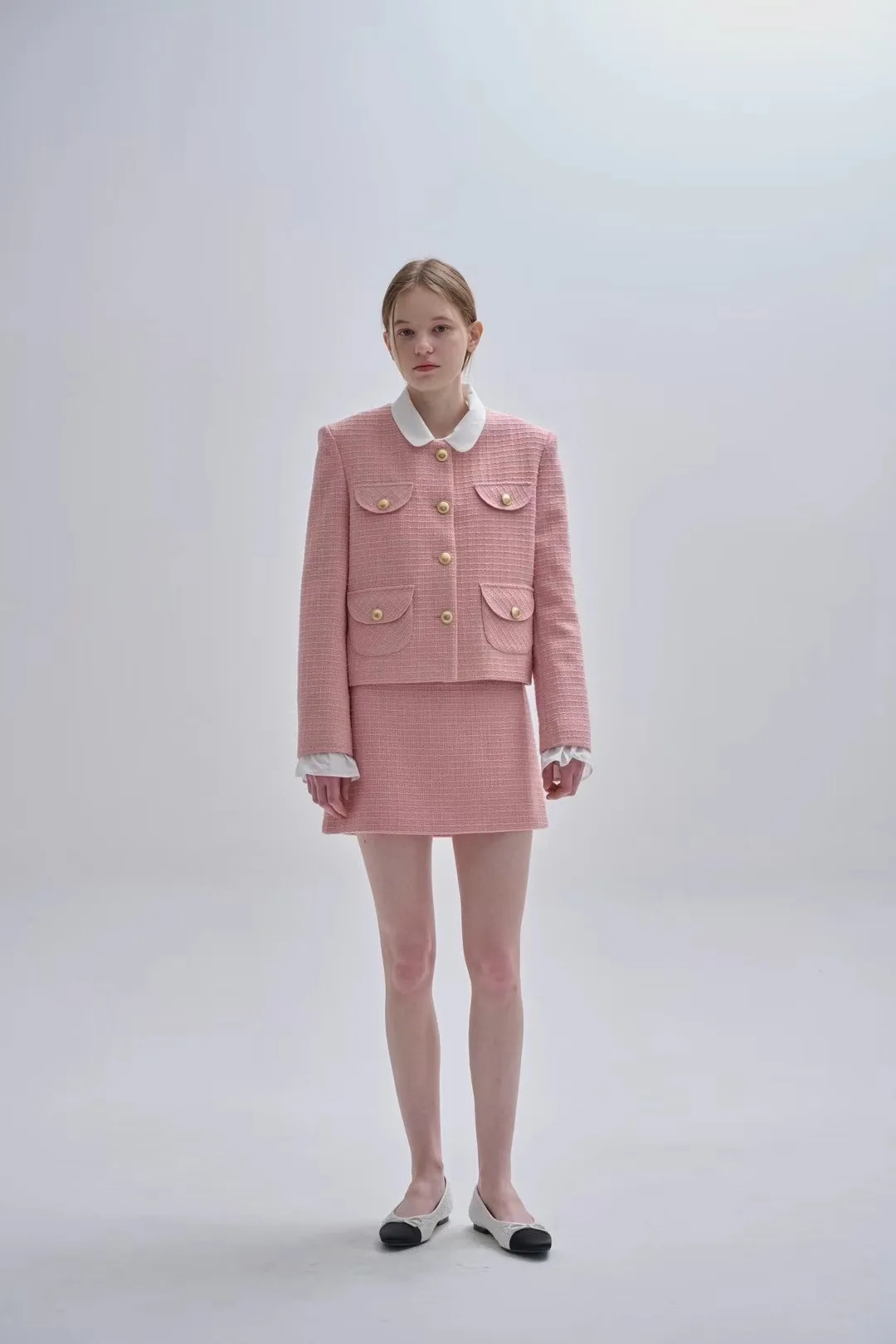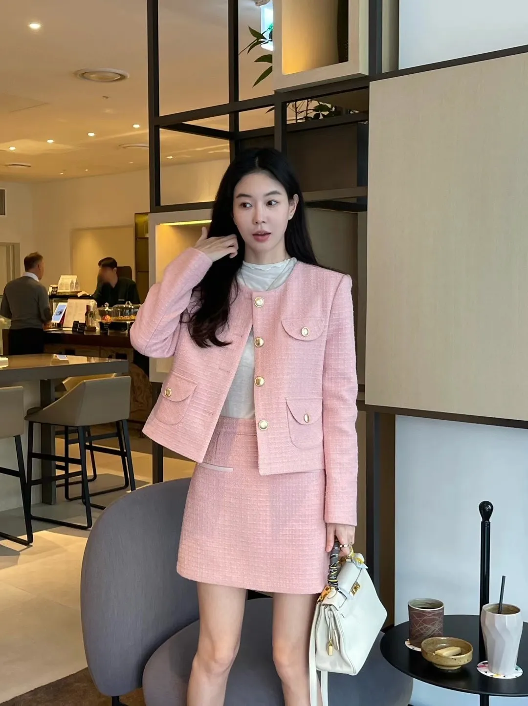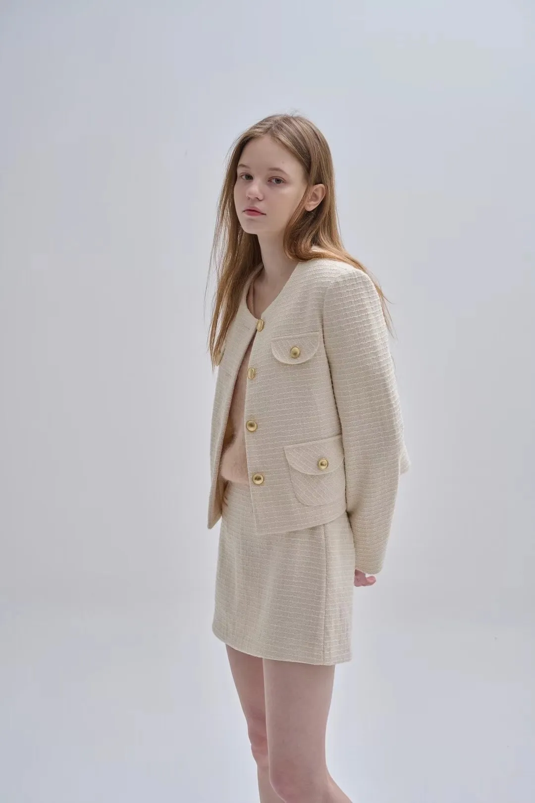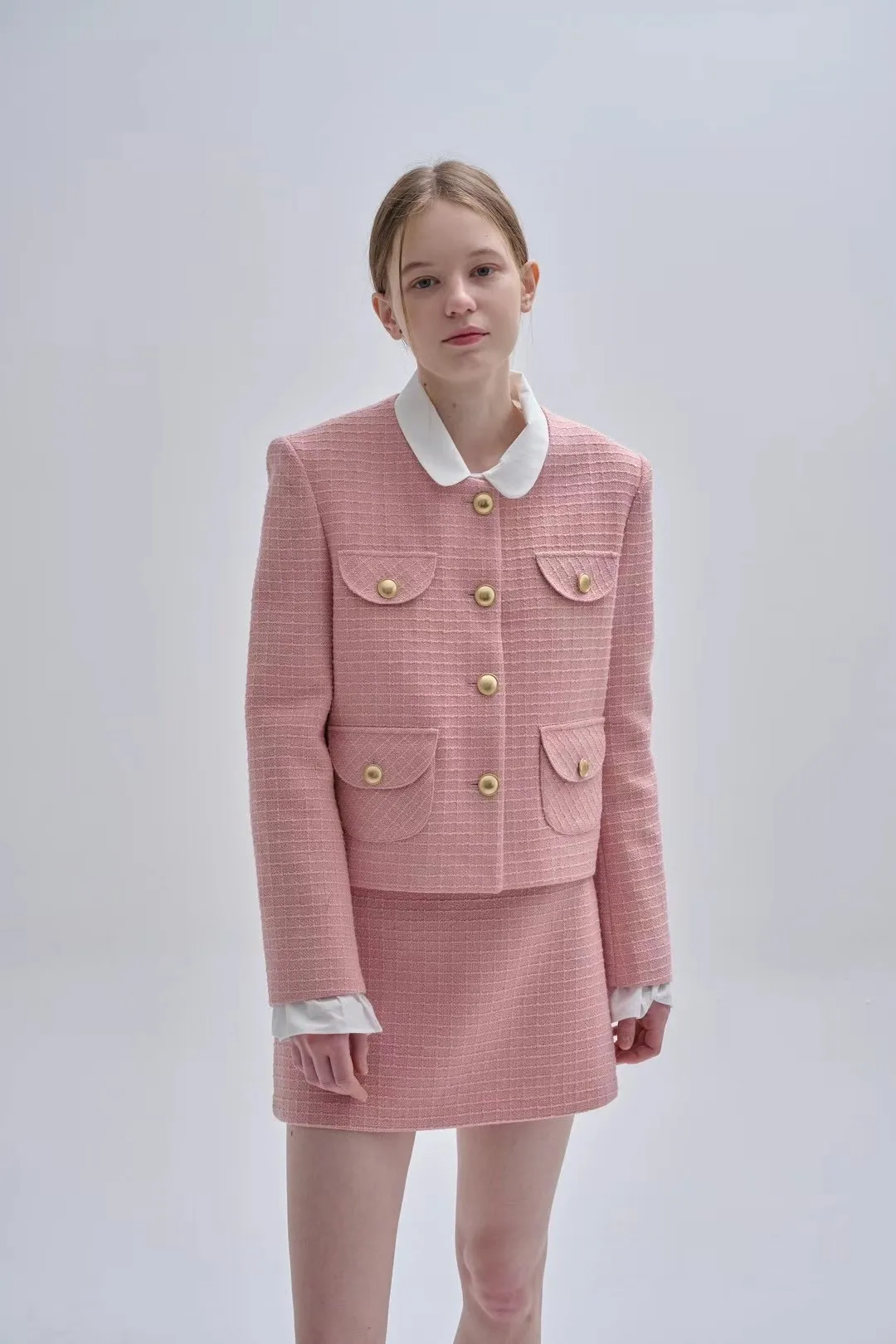 設計師品牌 小香風羊毛70%氣質金釦外套+小香風短裙 套裝