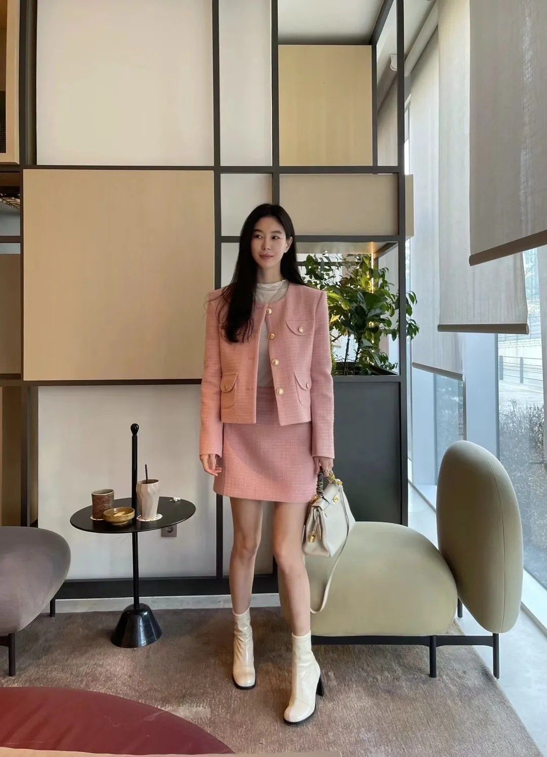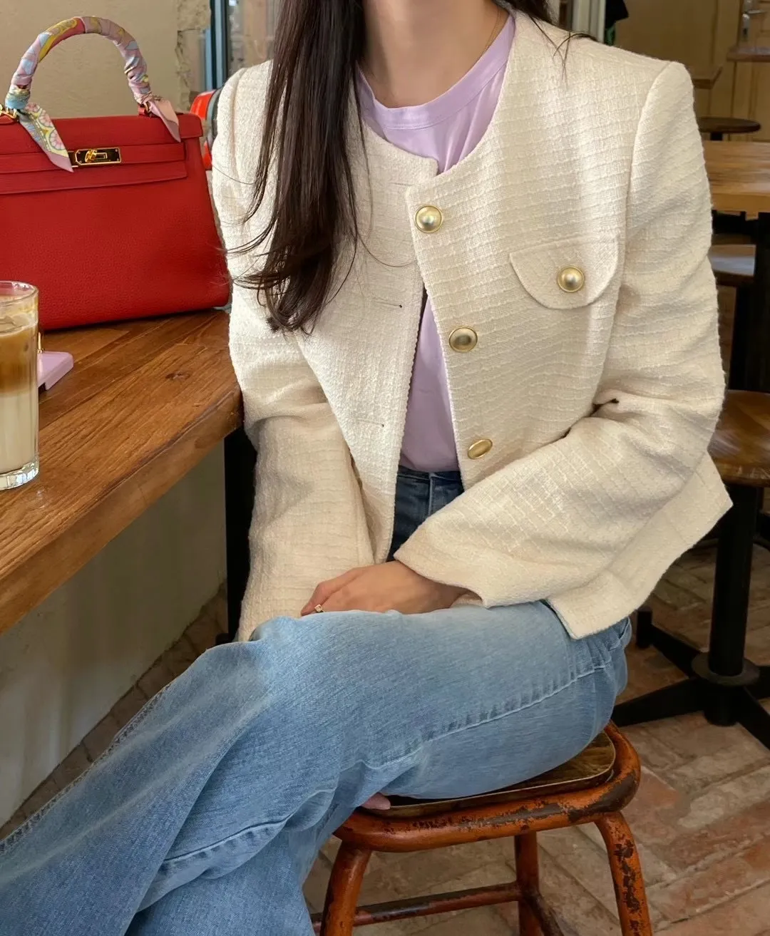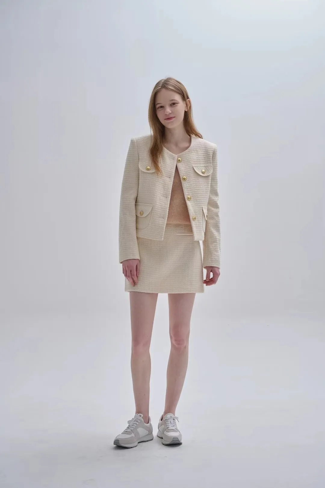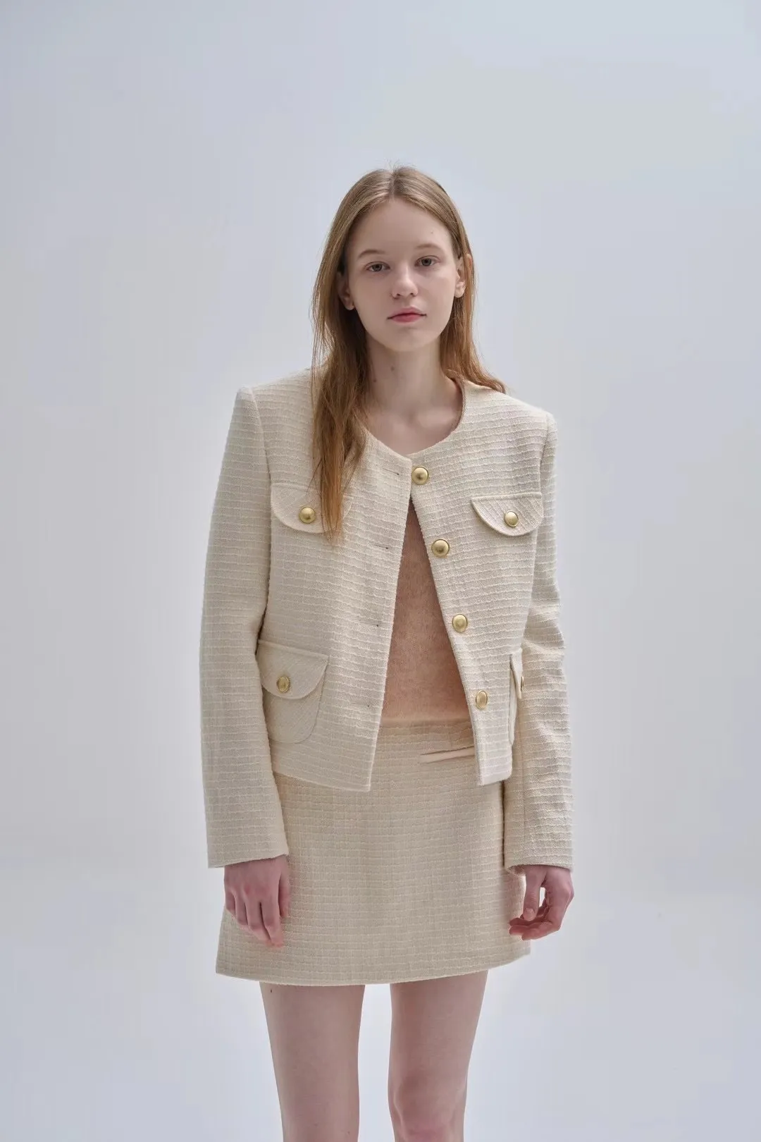 設計師品牌 小香風羊毛70%氣質金釦外套+小香風短裙 套裝
