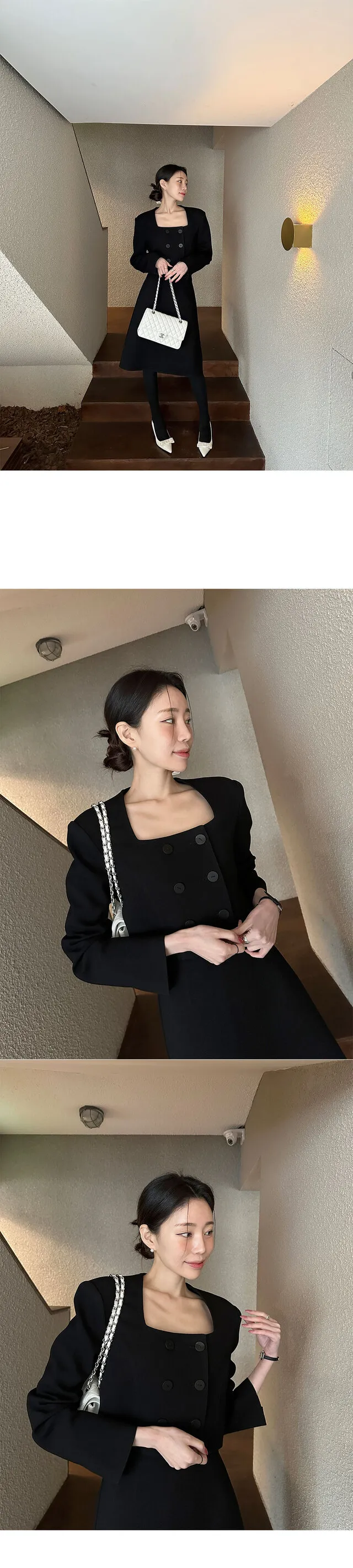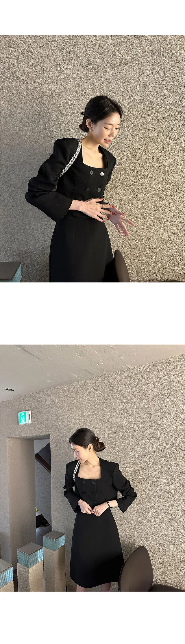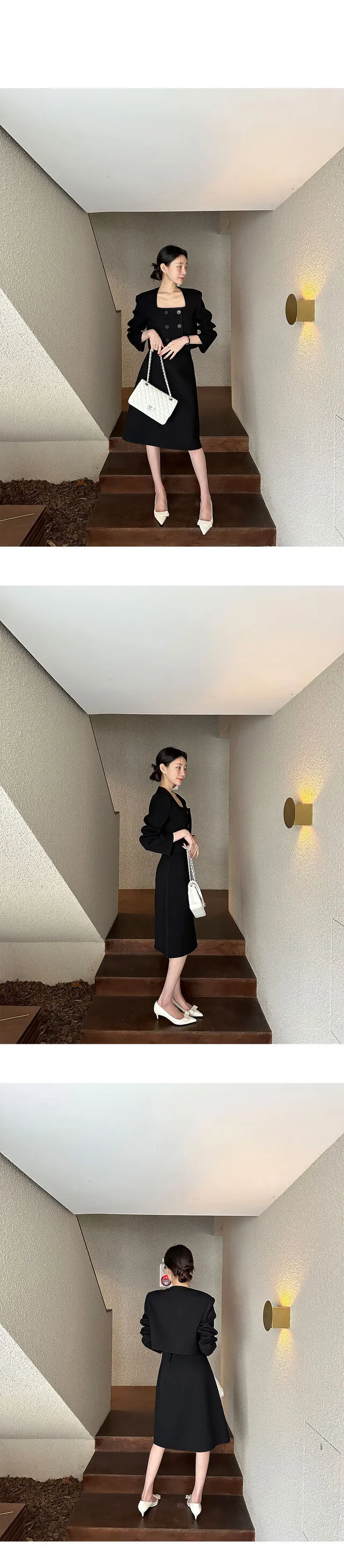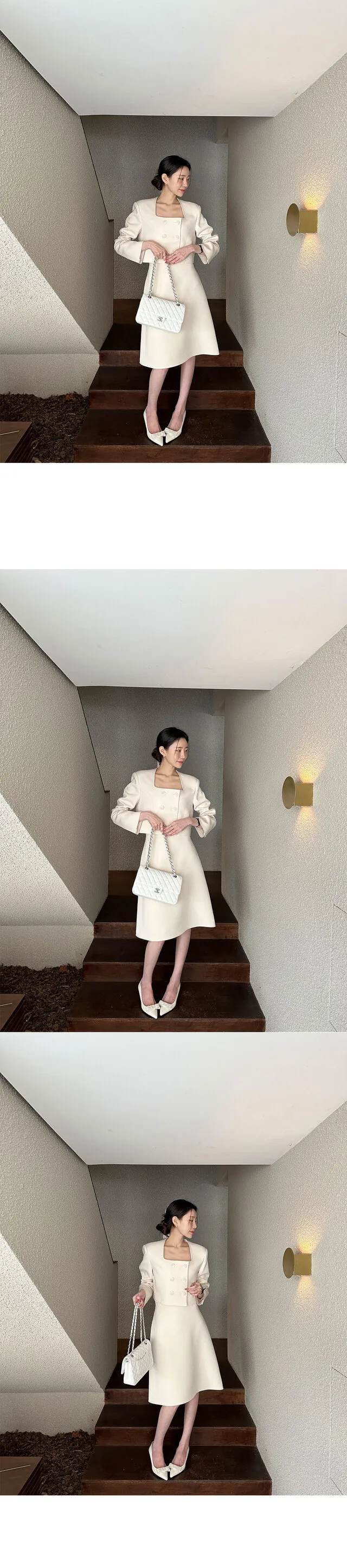 高端設計師品牌 白月光氣質方領雙排扣挺版修身短款長袖西裝外套+顯瘦A字半裙套裝 set