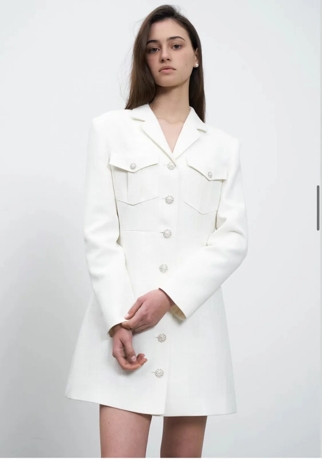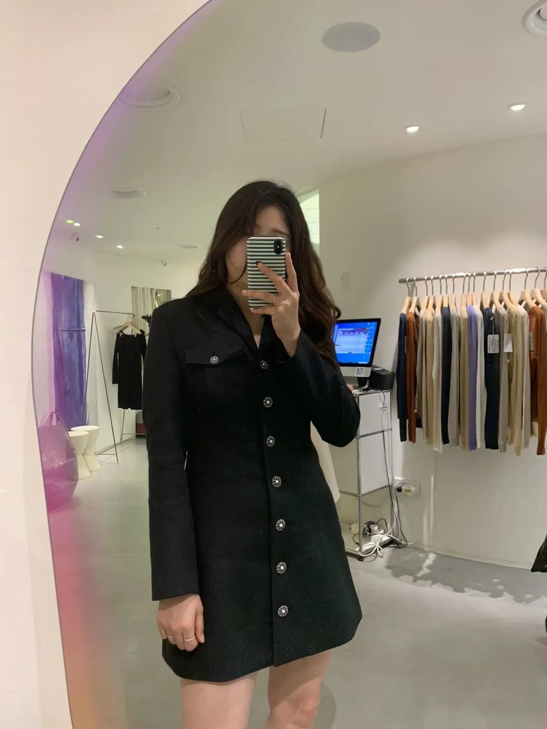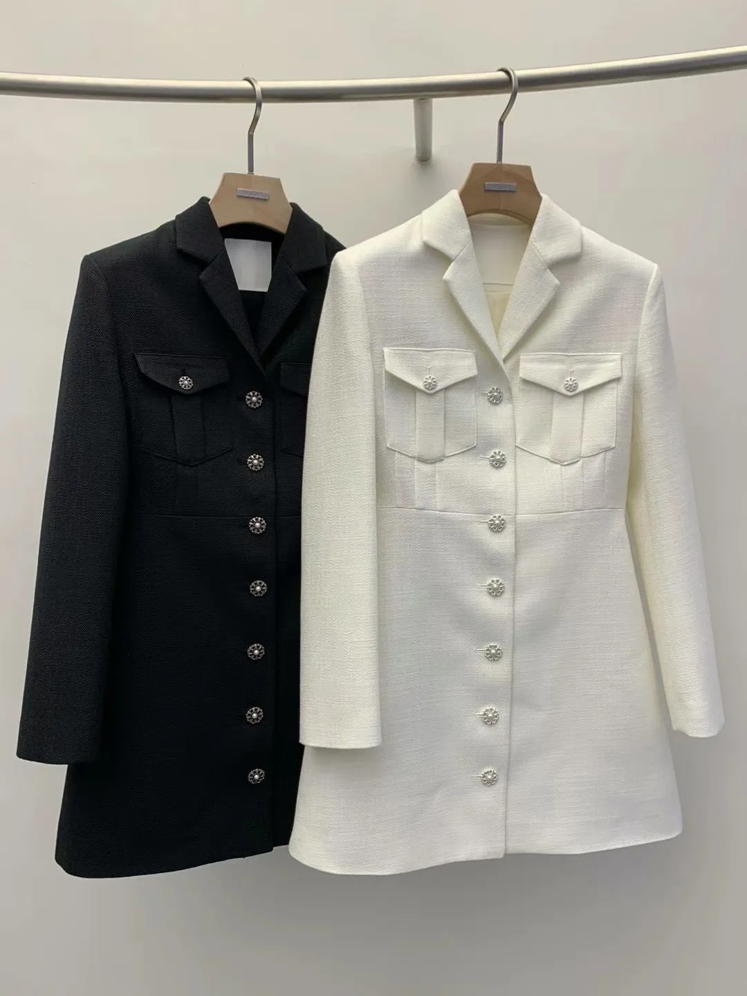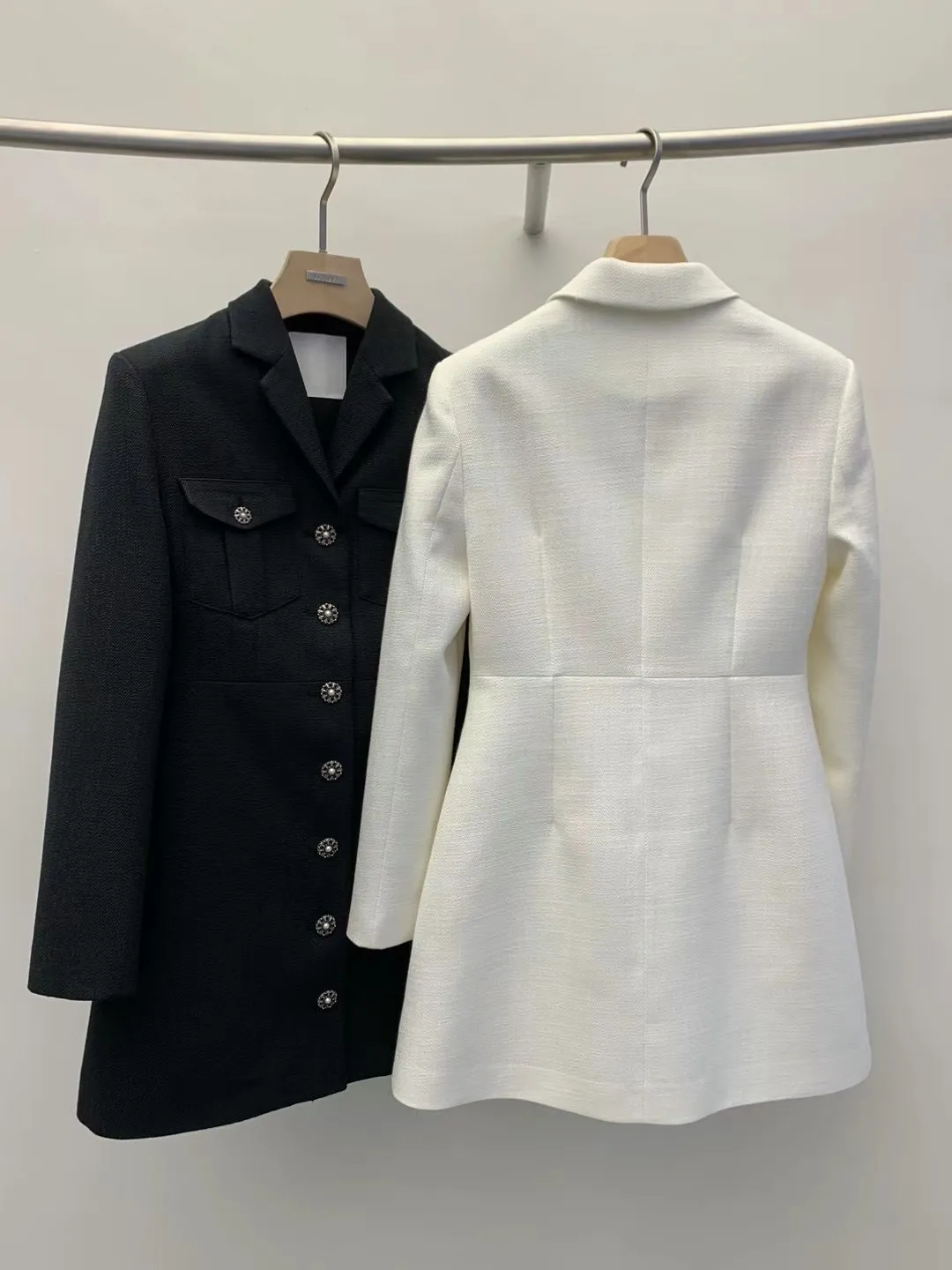 高端設計師品牌 法式小香風氣質優雅減齡翻領排釦長袖連衣裙