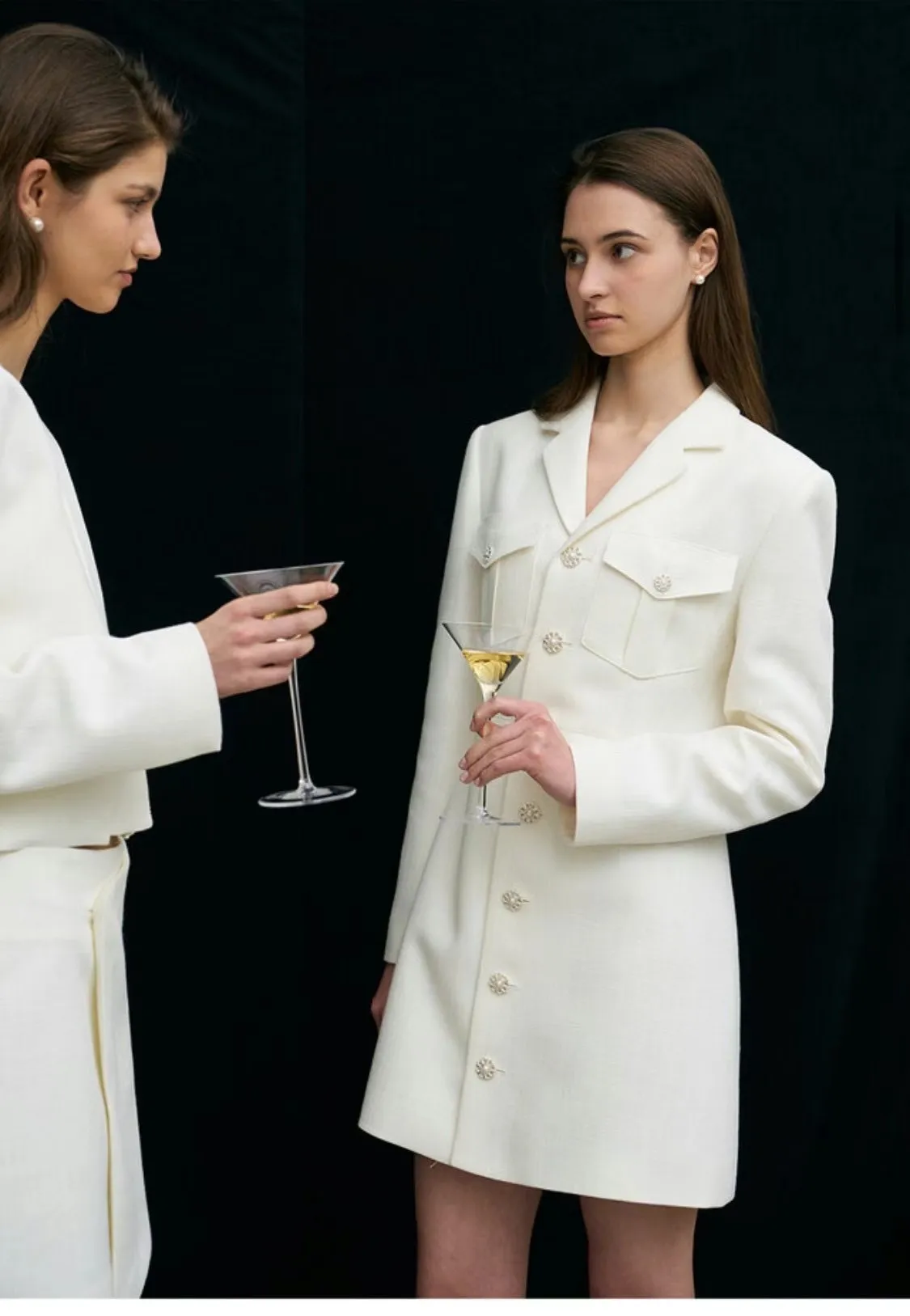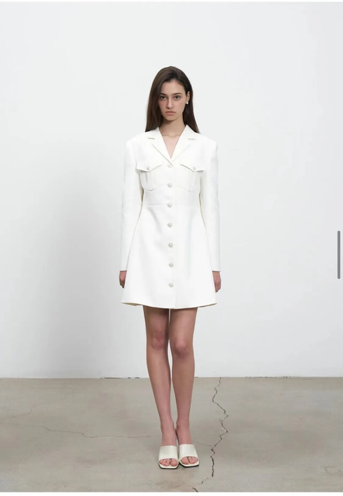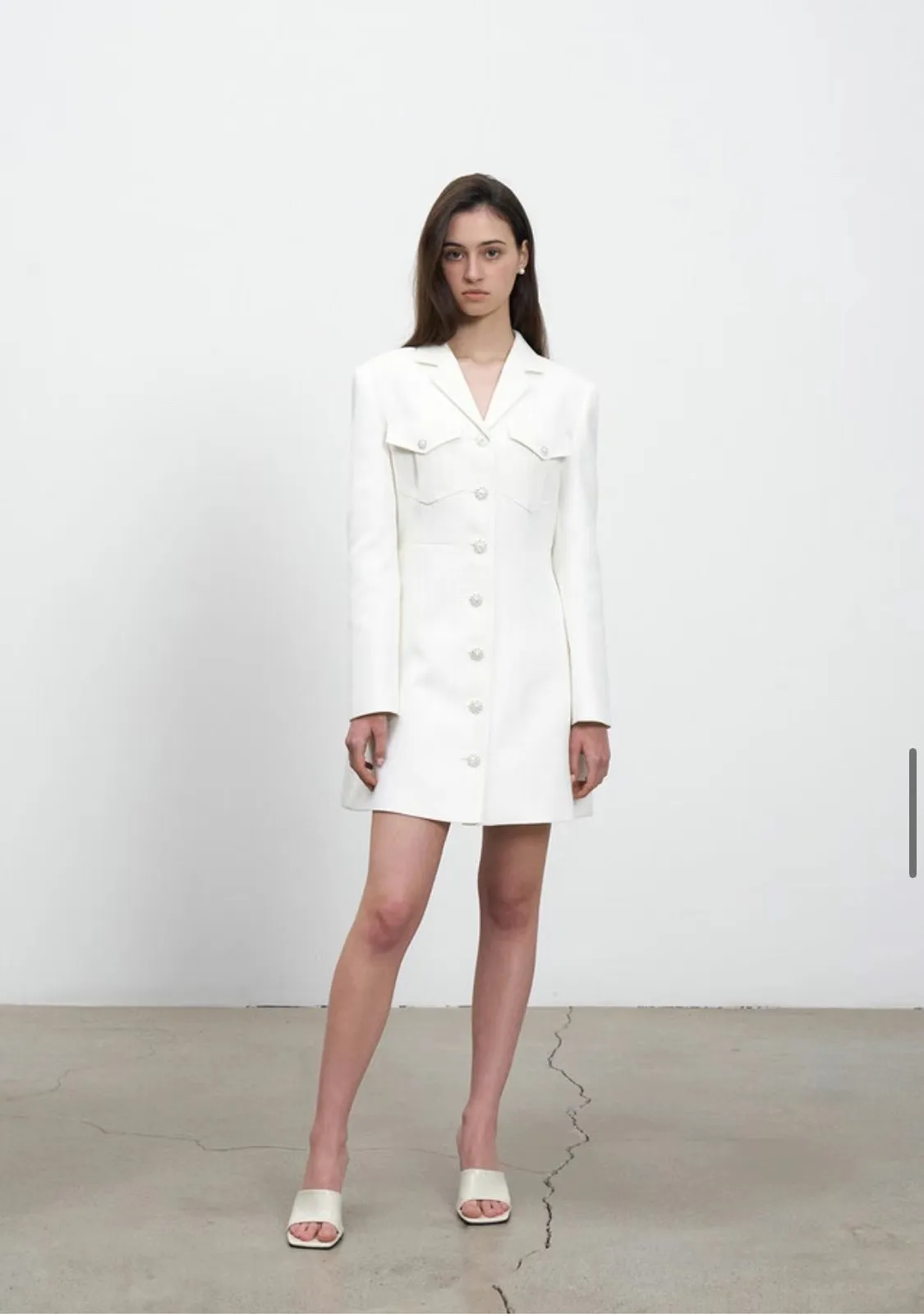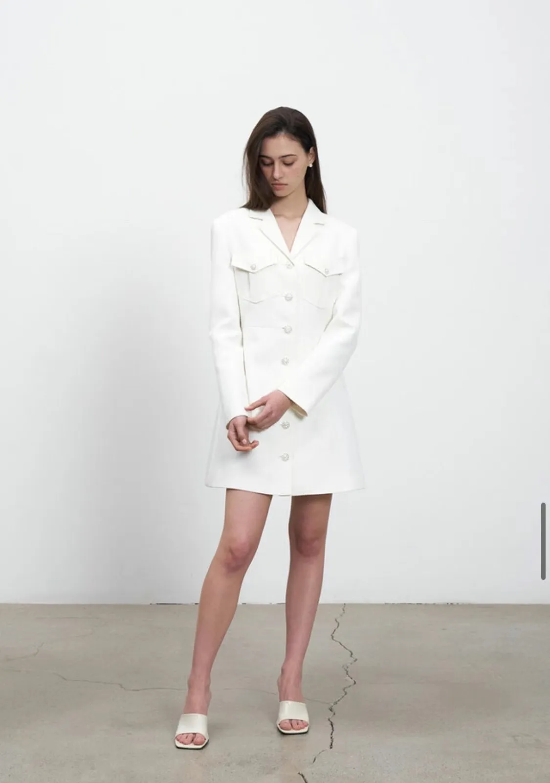 高端設計師品牌 法式小香風氣質優雅減齡翻領排釦長袖連衣裙