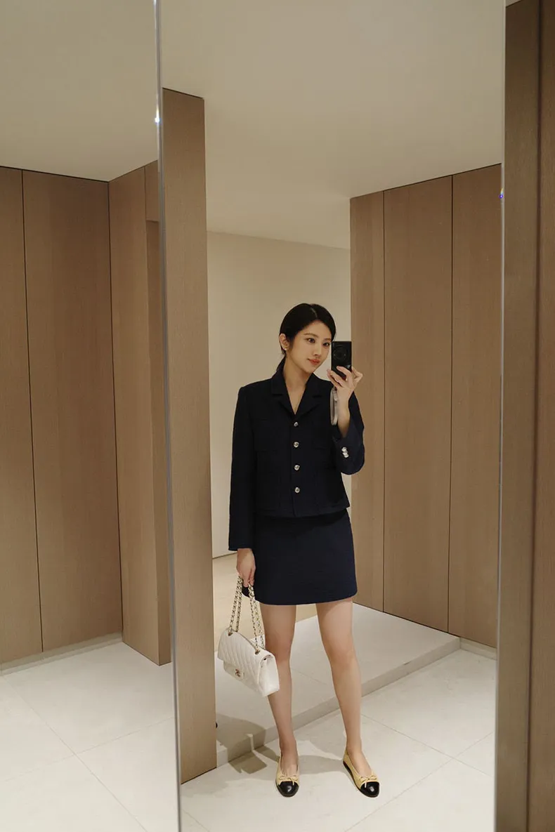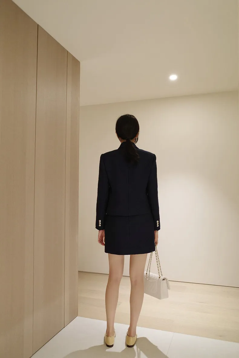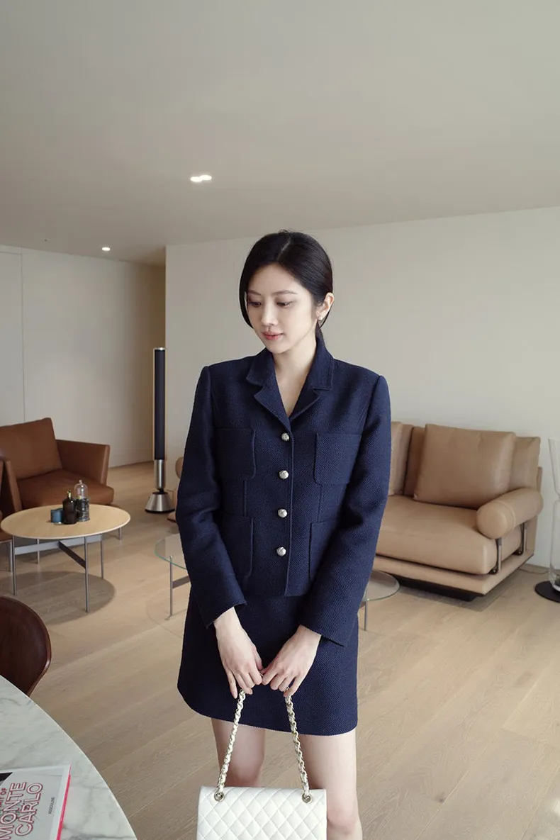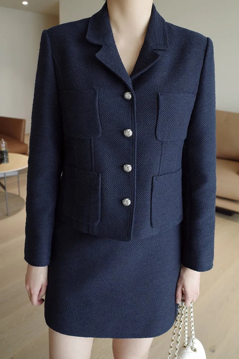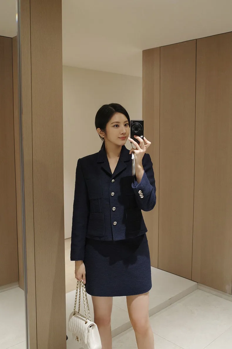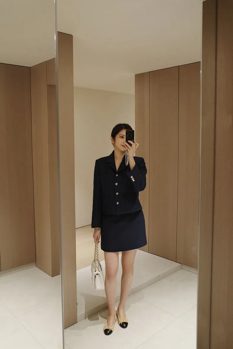 高端設計師品牌 小香風氣質名媛單排扣修身外套+包臀半裙 套裝set 專櫃精品面料