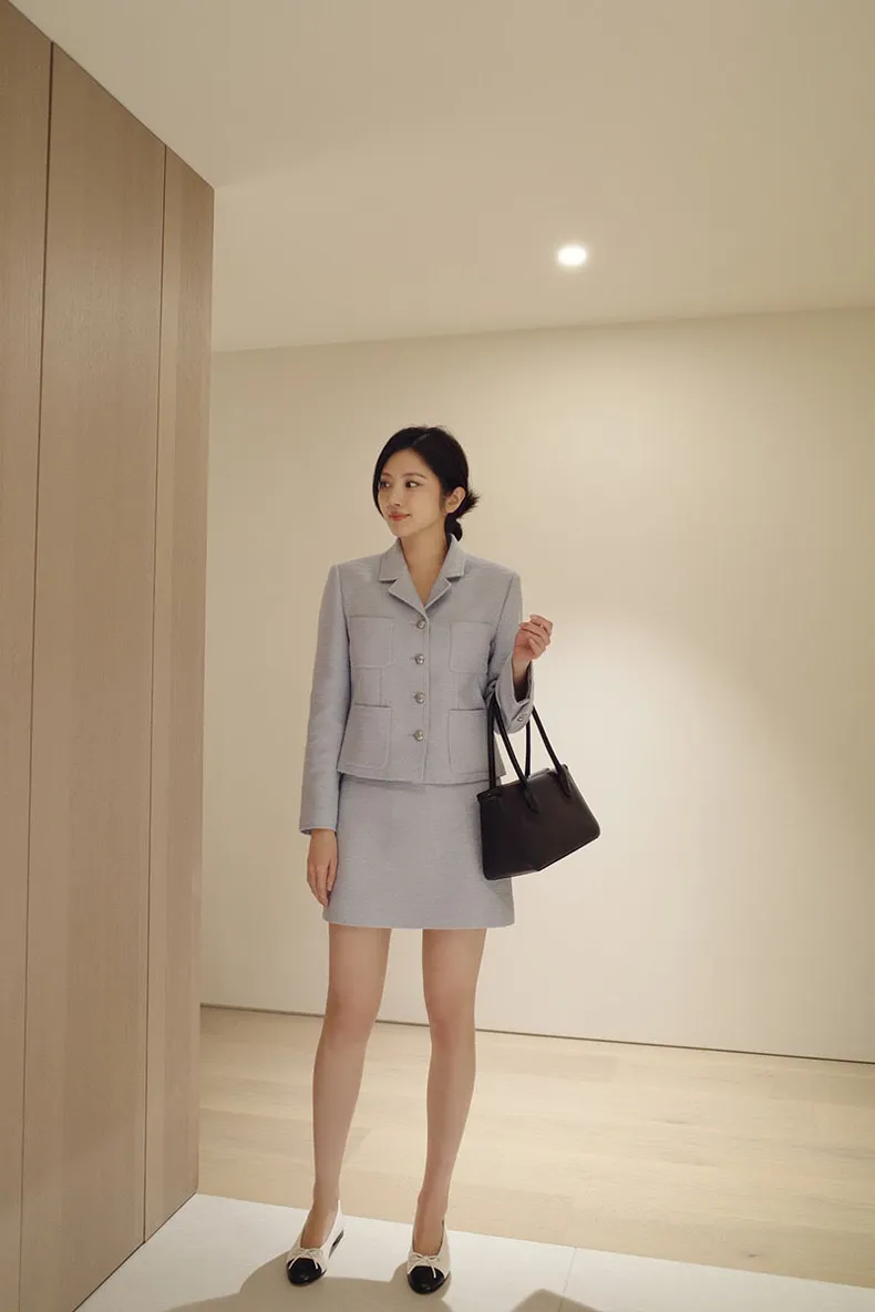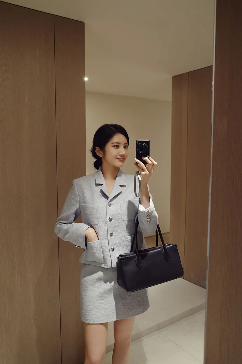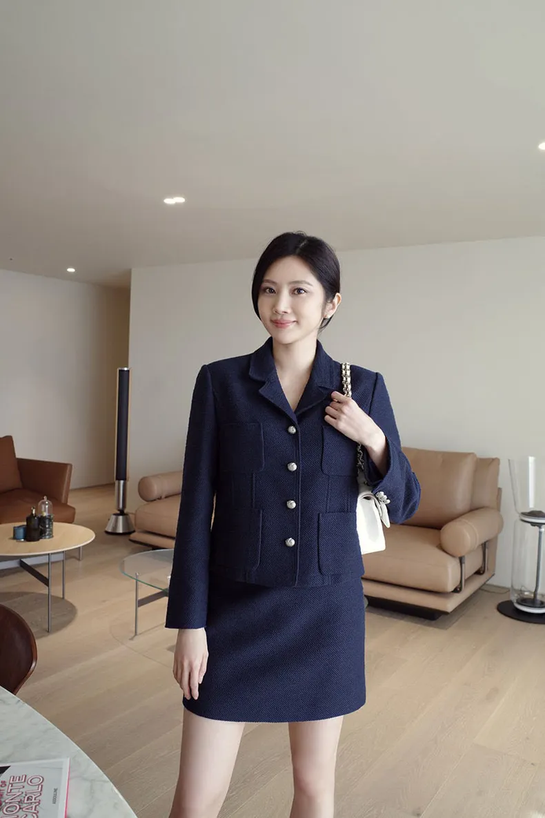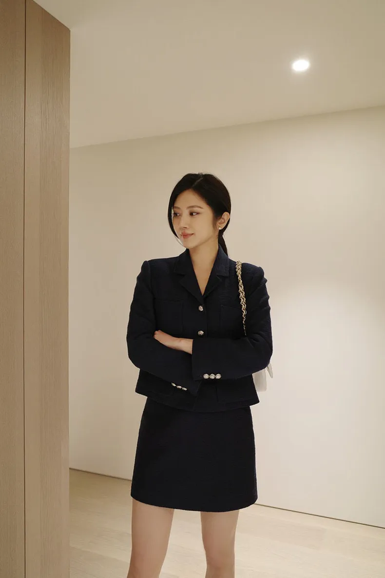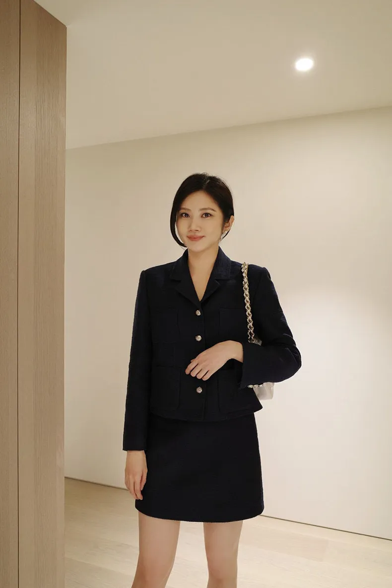 高端設計師品牌 小香風氣質名媛單排扣修身外套+包臀半裙 套裝set 專櫃精品面料