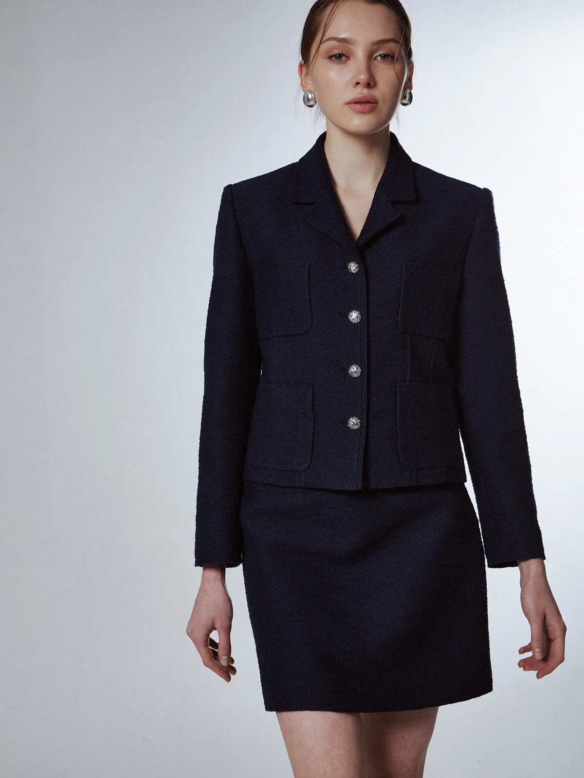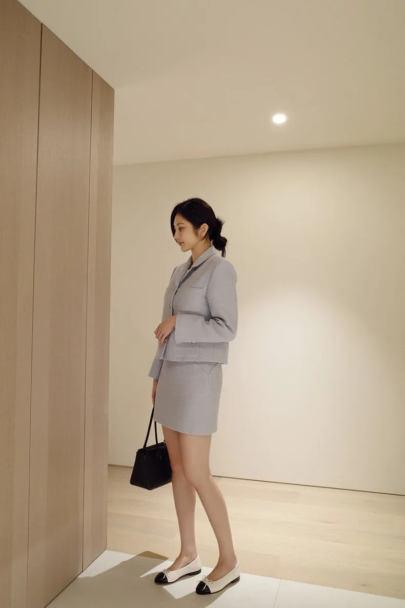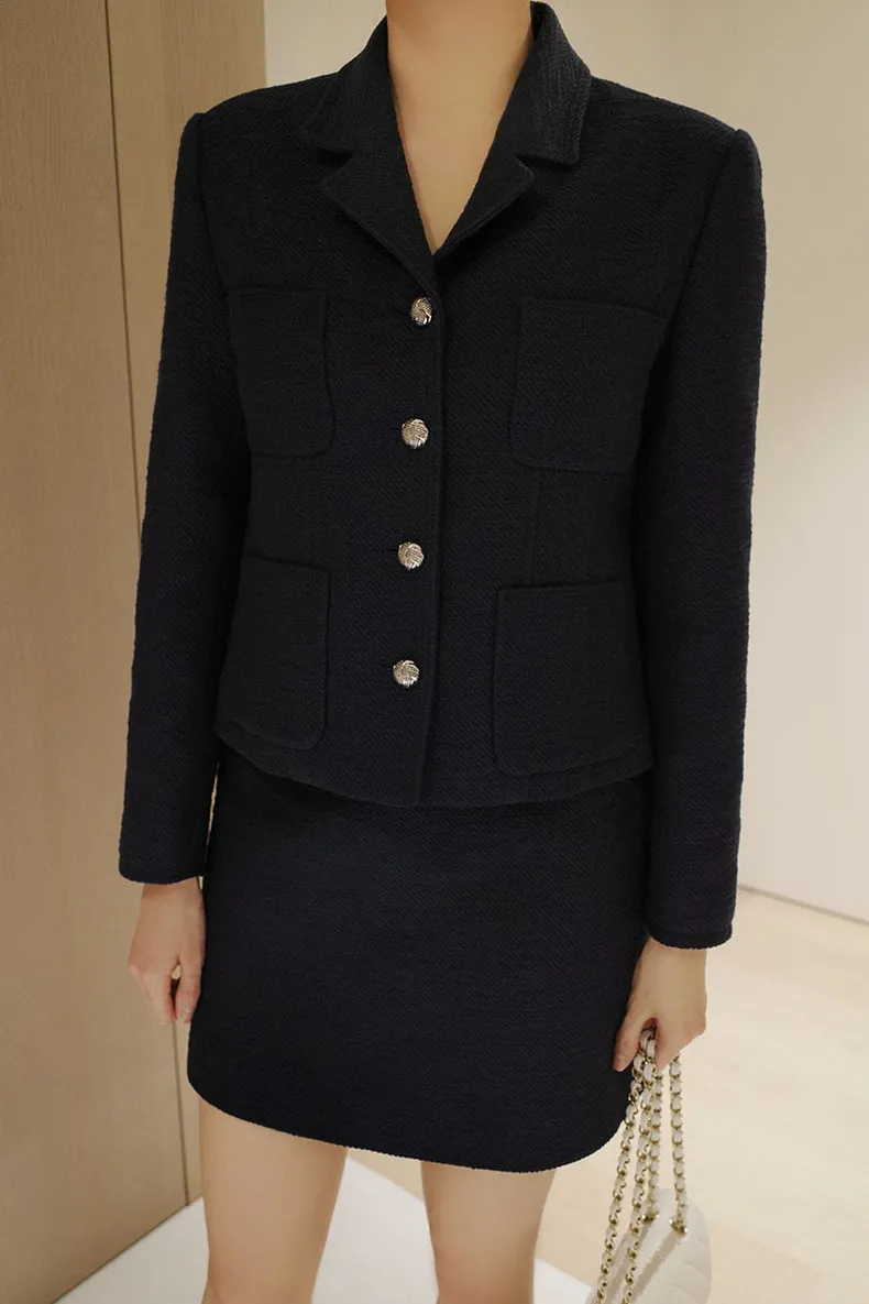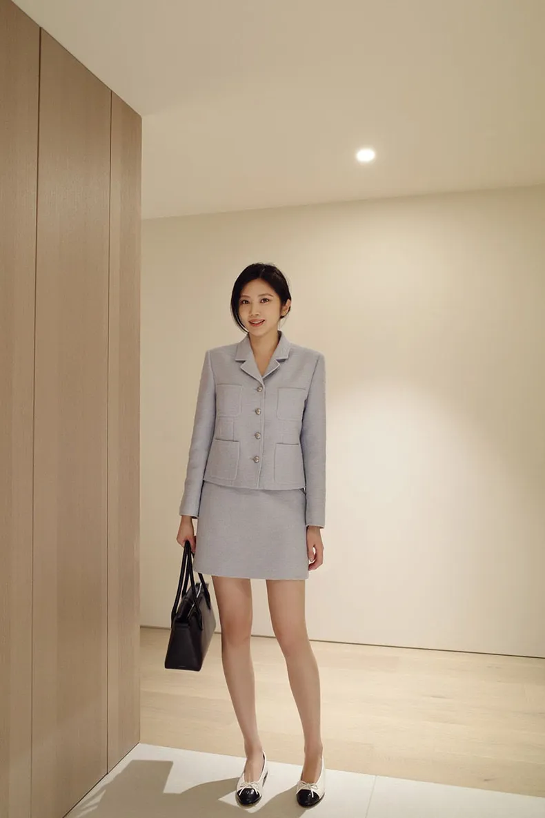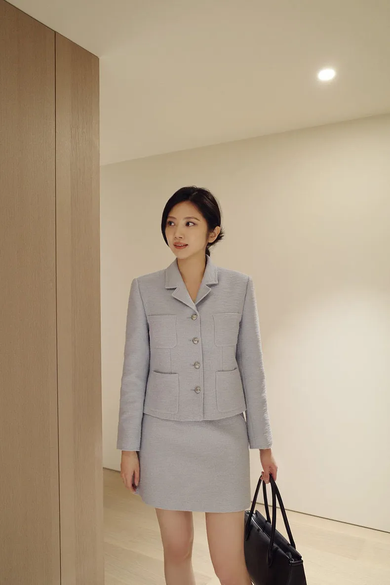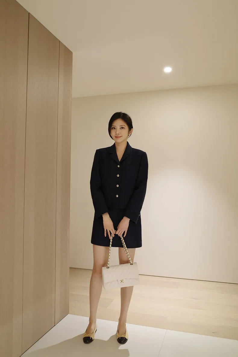 高端設計師品牌 小香風氣質名媛單排扣修身外套+包臀半裙 套裝set 專櫃精品面料