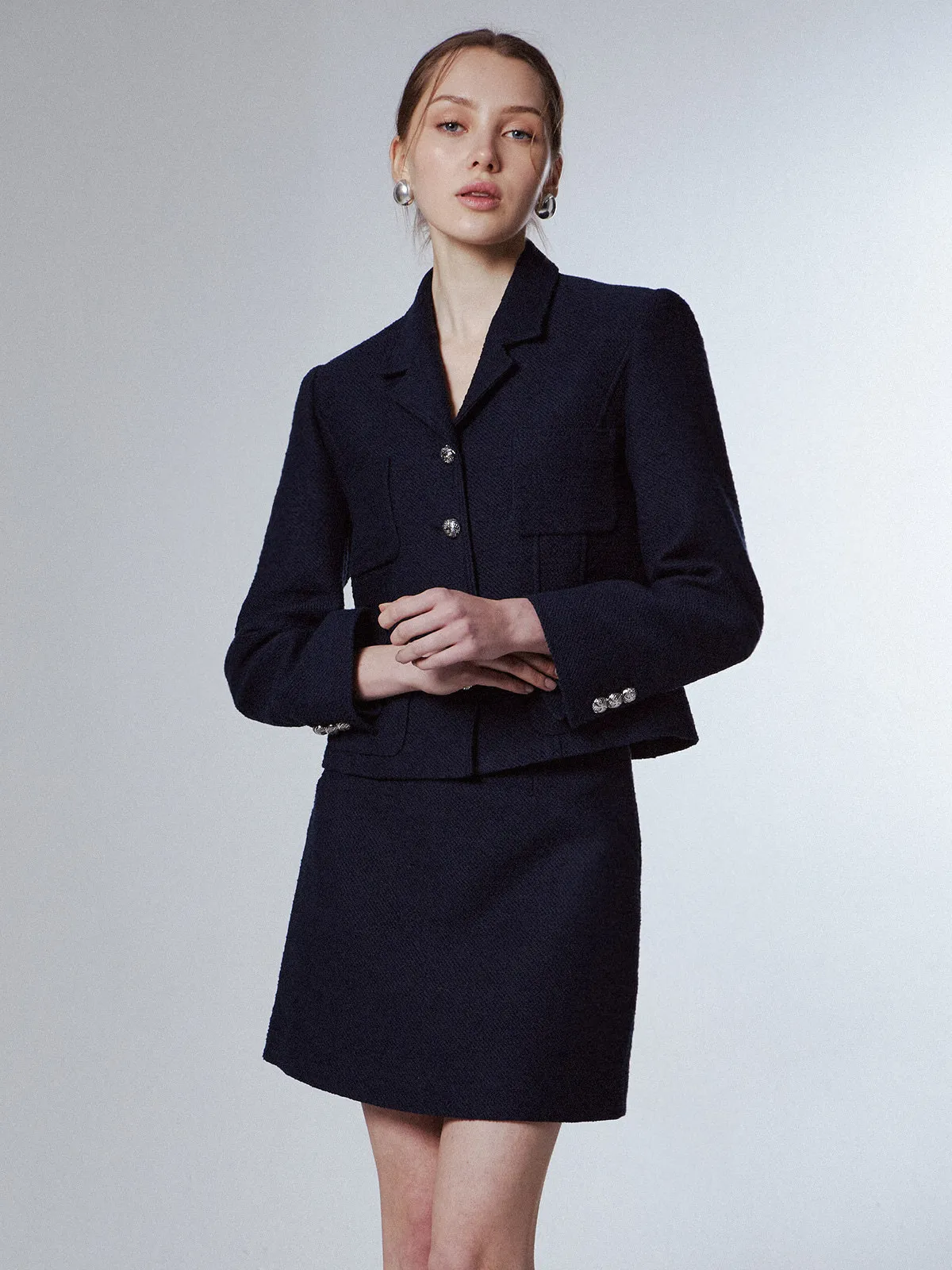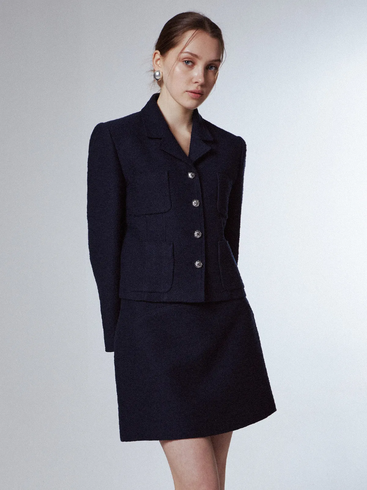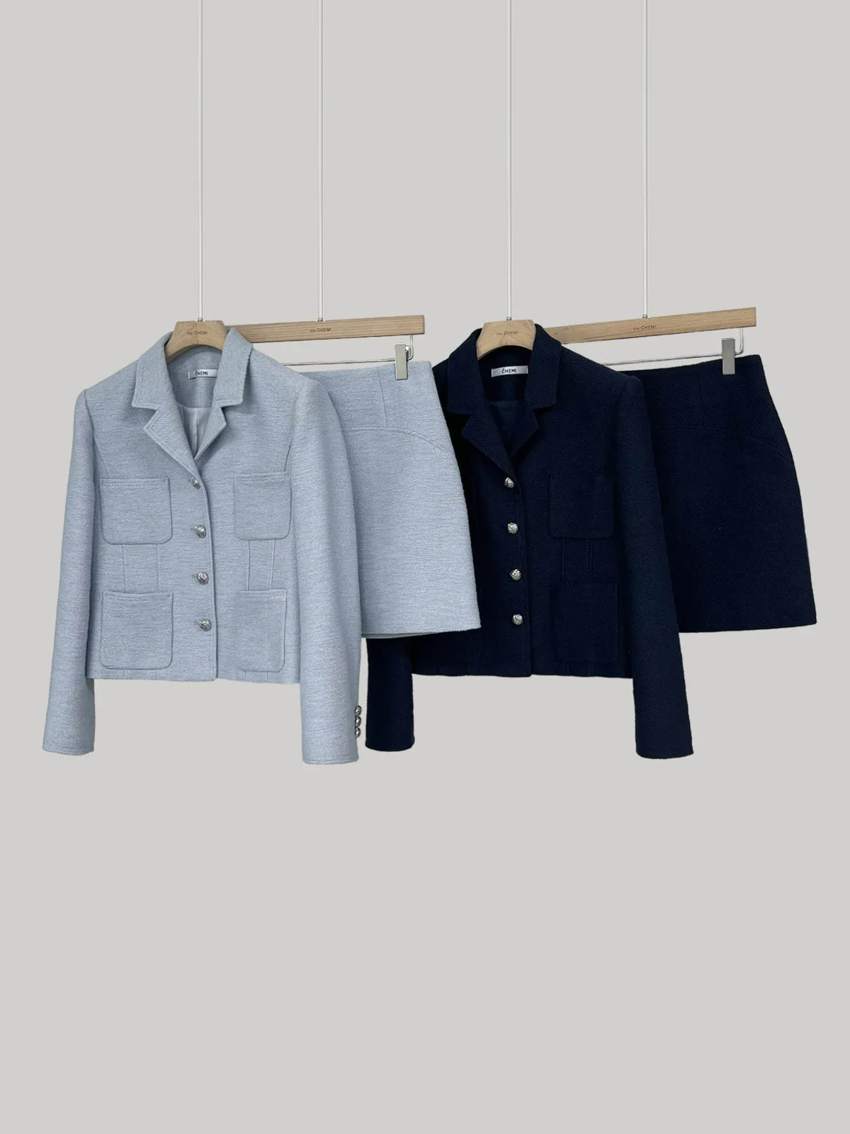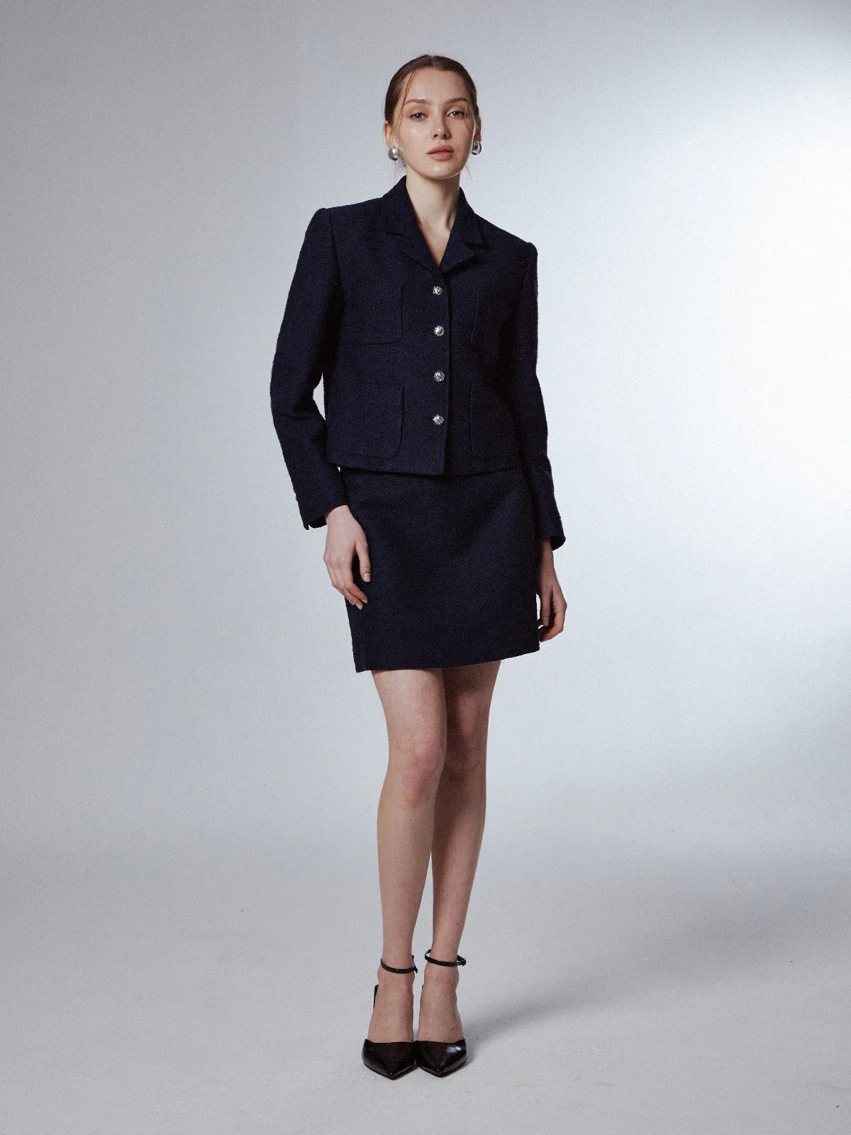高端設計師品牌 小香風氣質名媛單排扣修身外套+包臀半裙 套裝set 專櫃精品面料