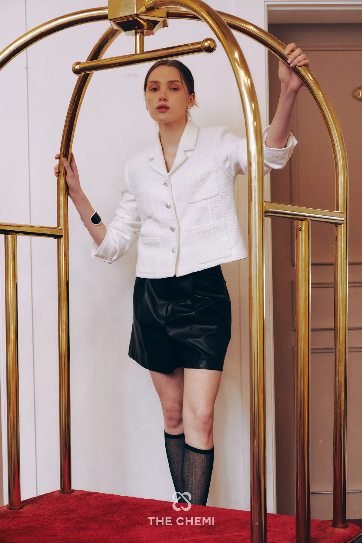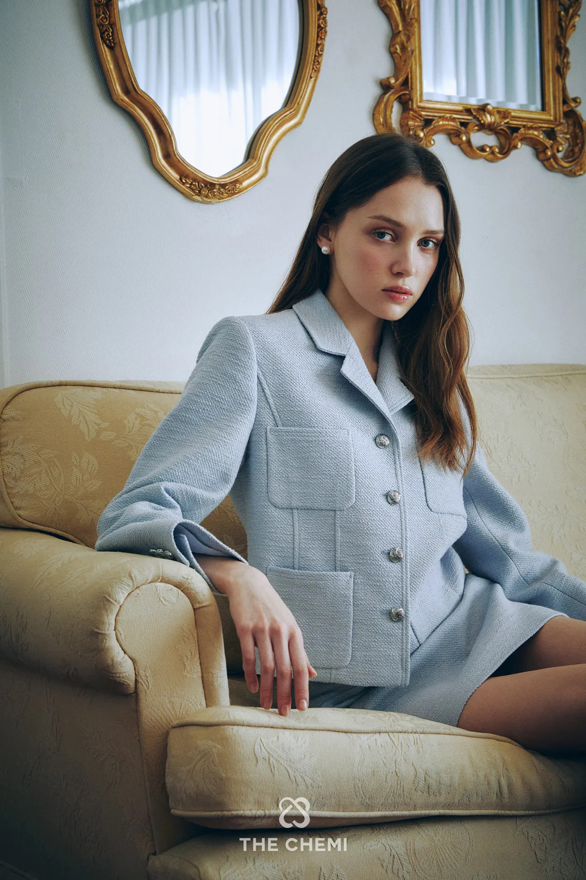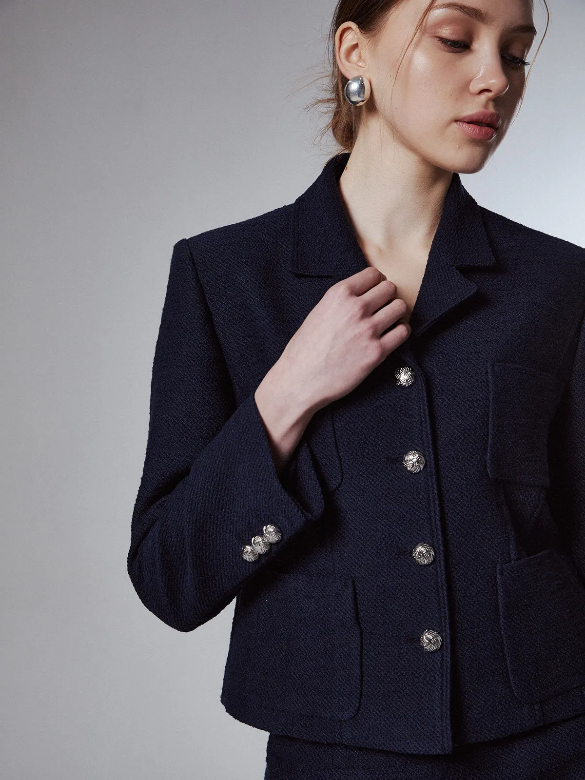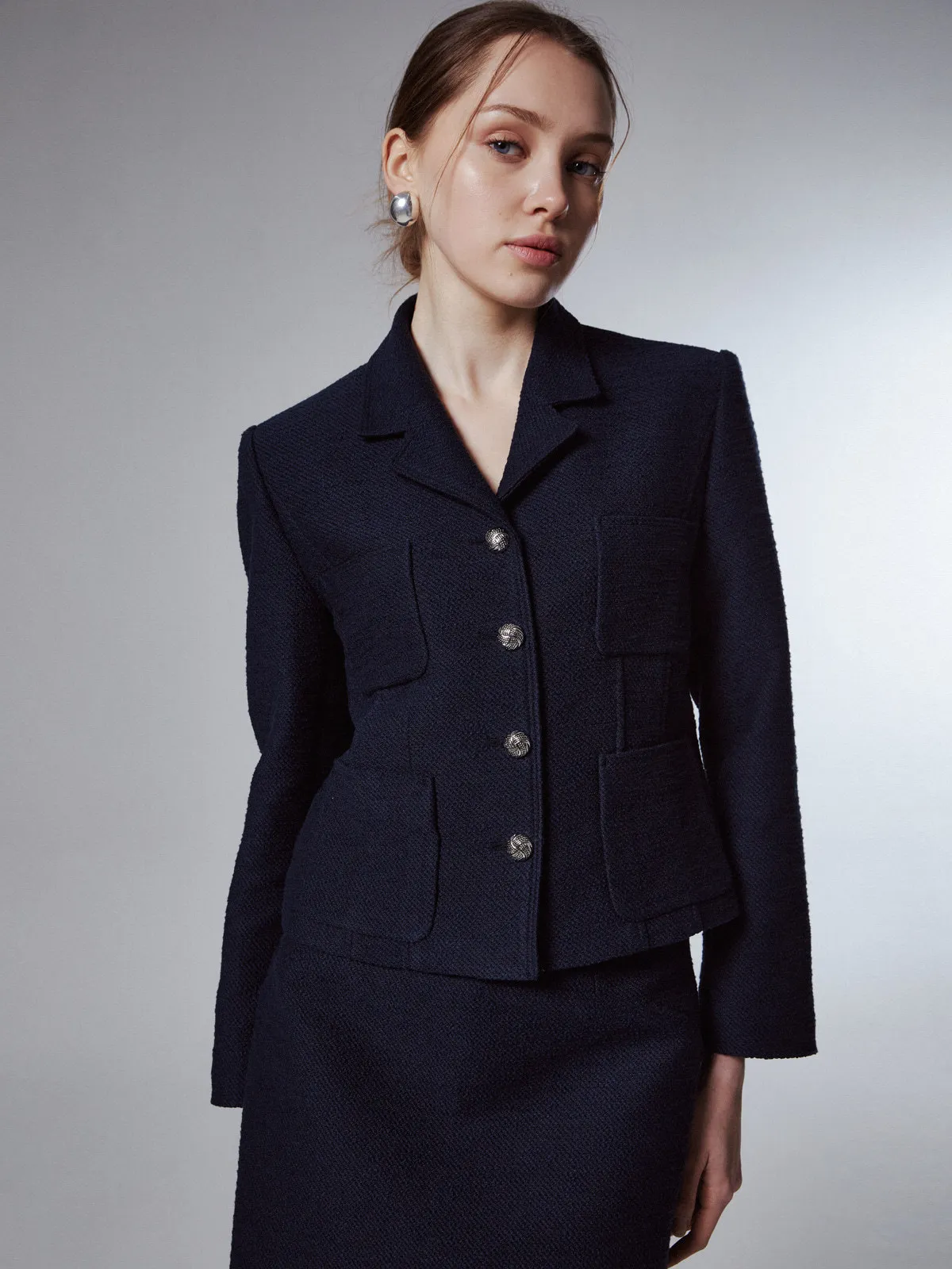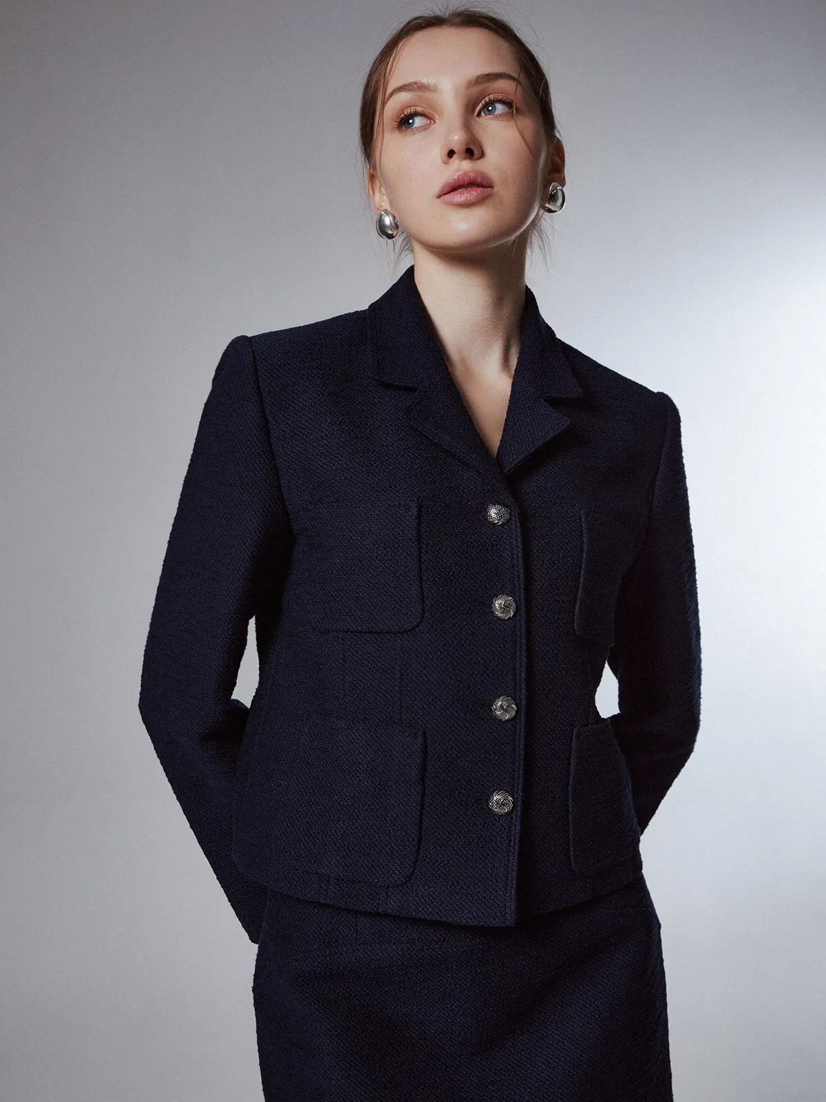 高端設計師品牌 小香風氣質名媛單排扣修身外套+包臀半裙 套裝set 專櫃精品面料