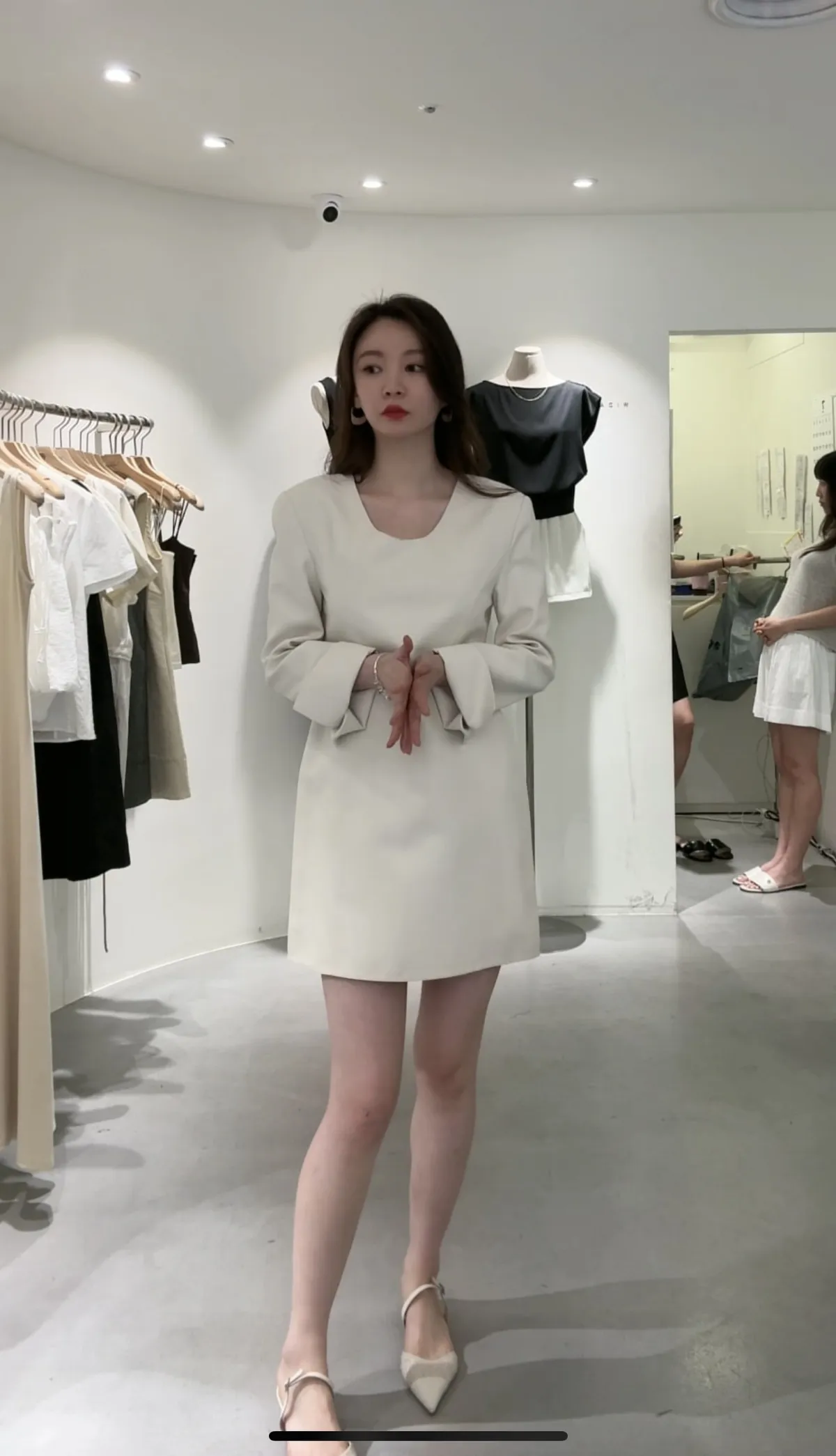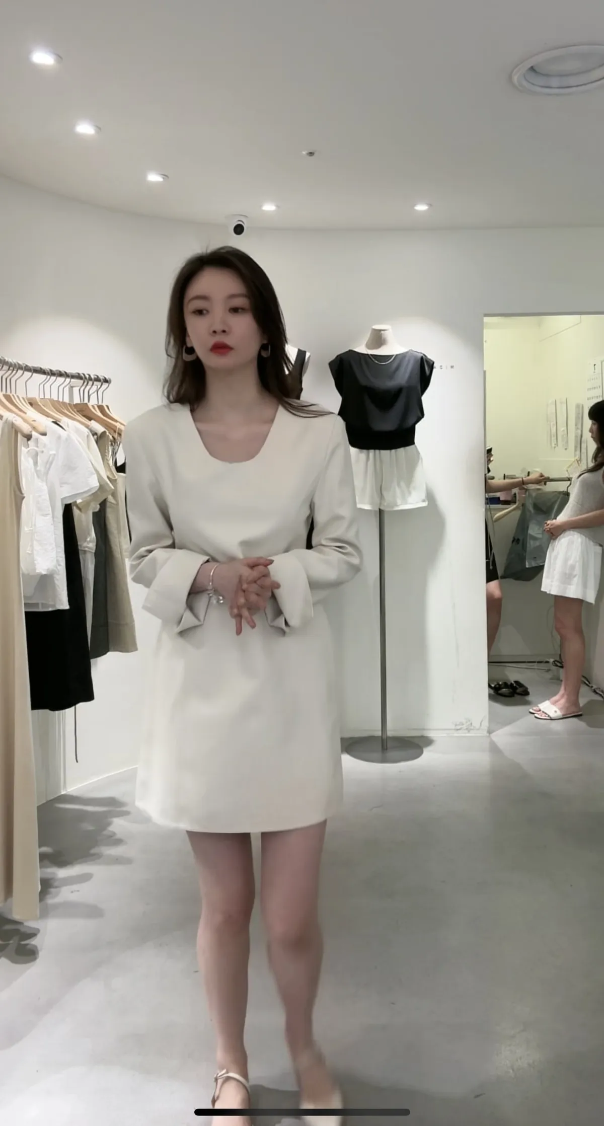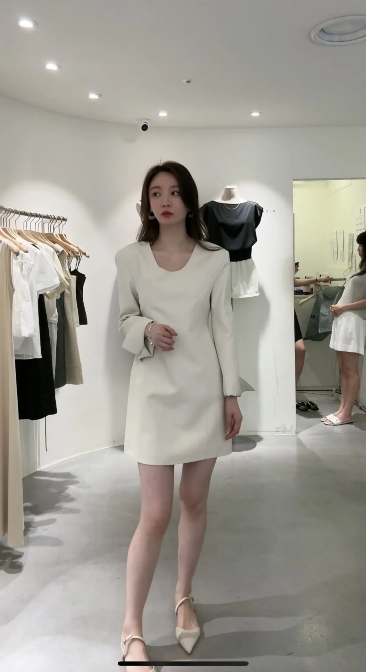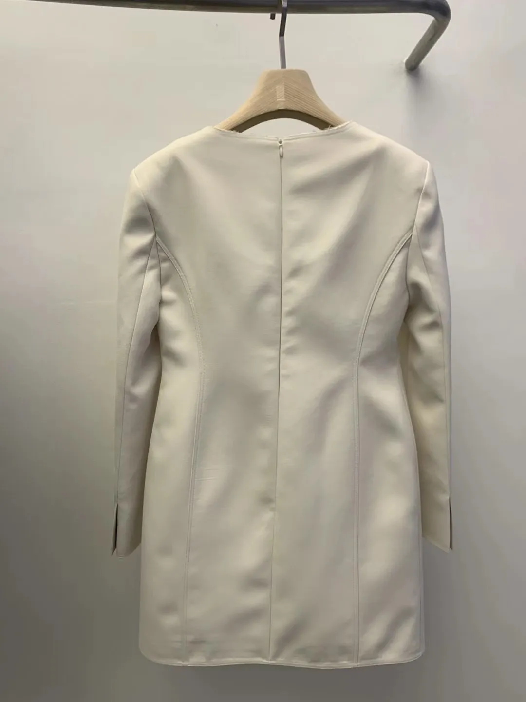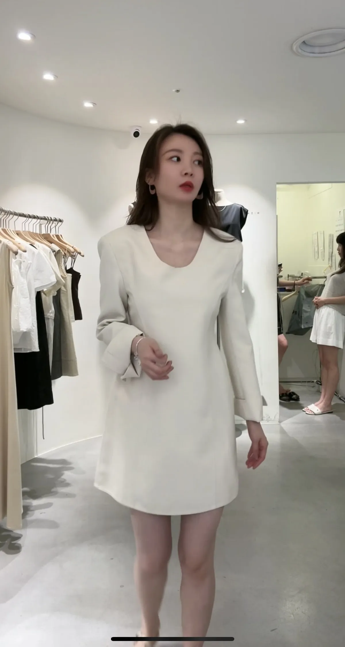 高端設計師品牌 氣質簡約U領顯瘦收腰長袖連衣裙