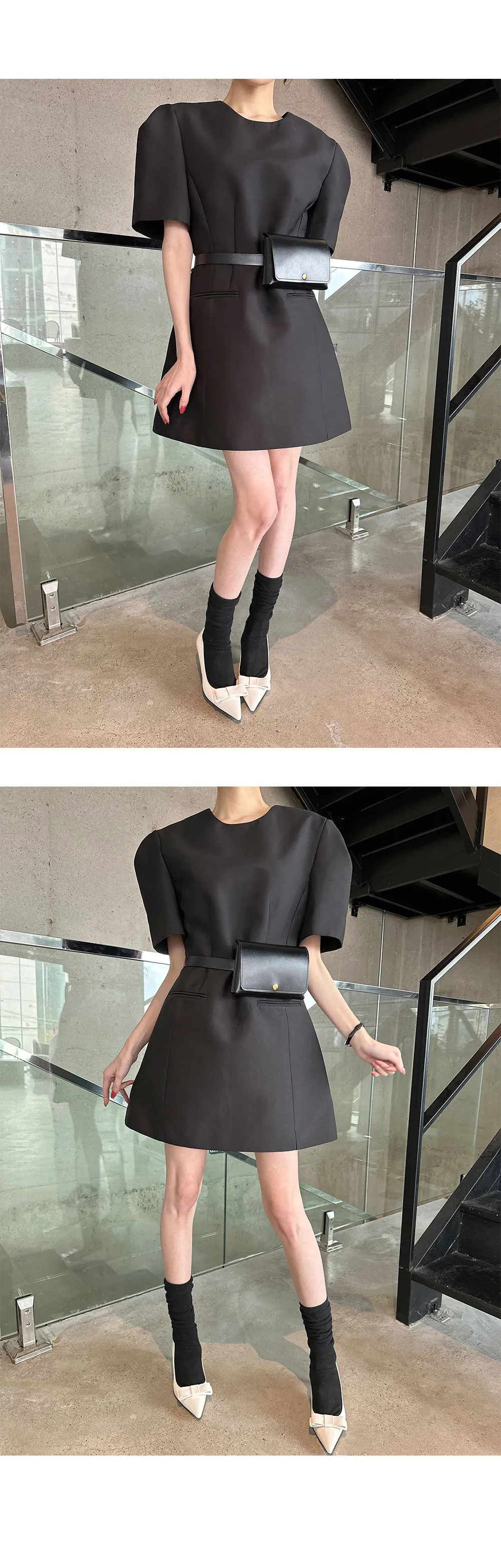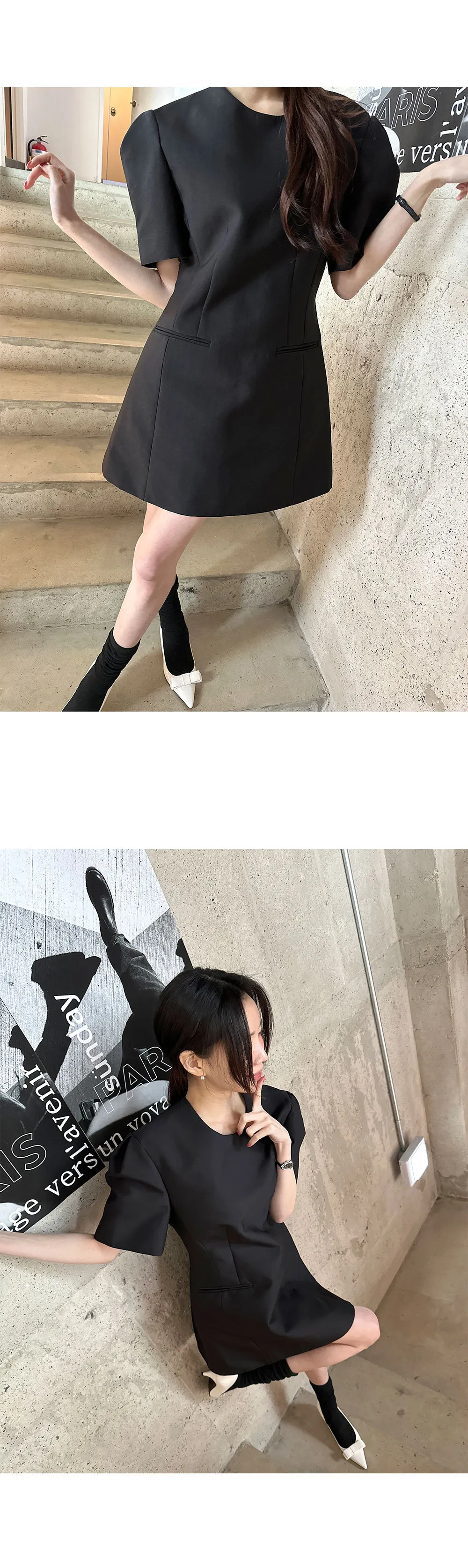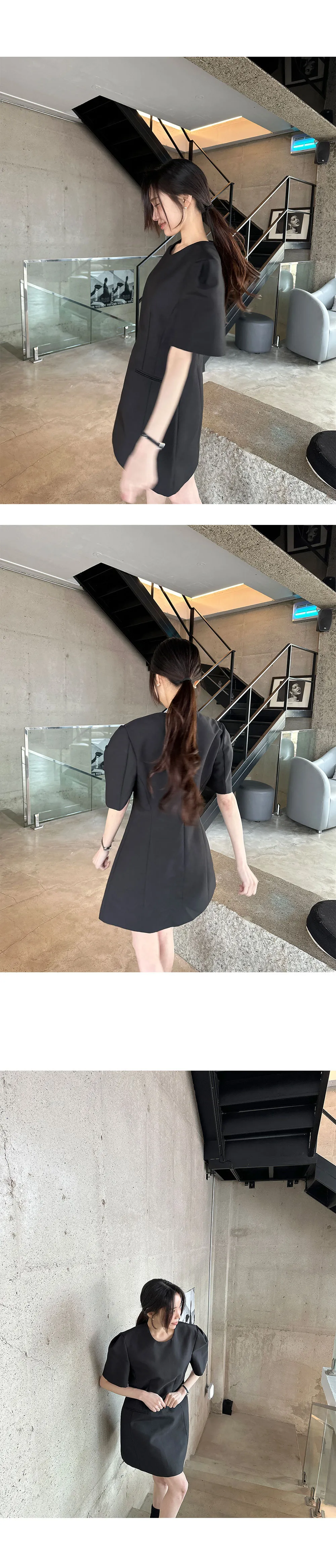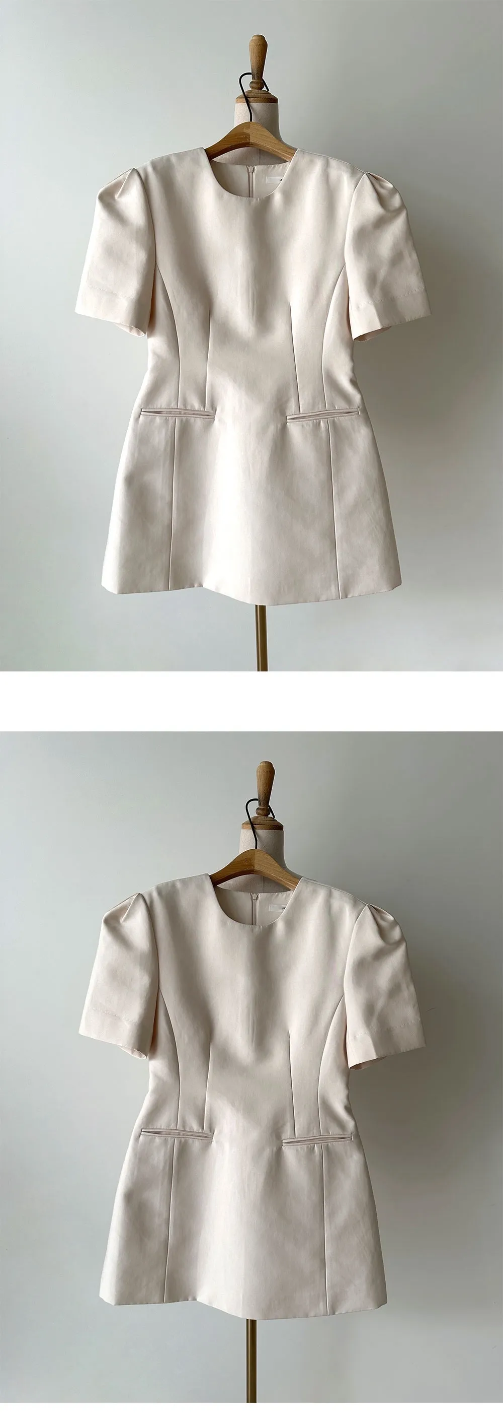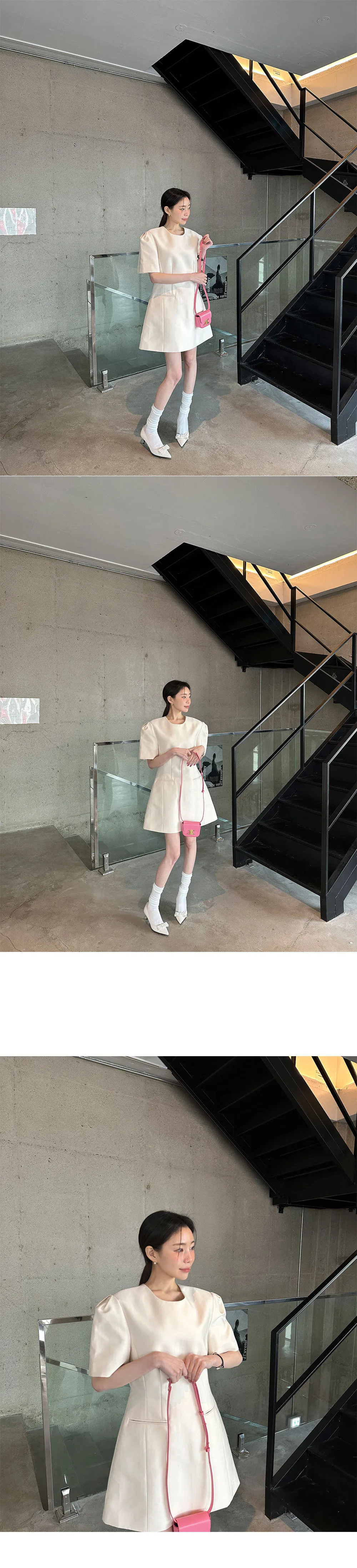 高端設計師品牌 氣質減齡泡泡袖修身西裝連衣短裙 洋裝