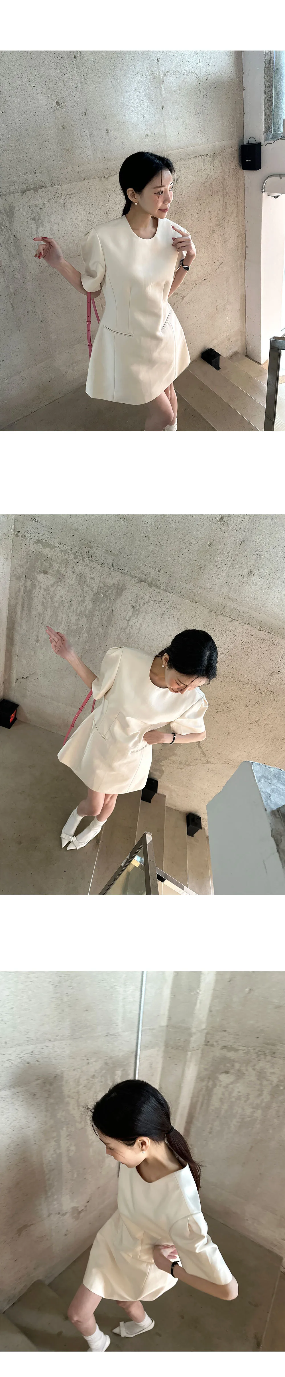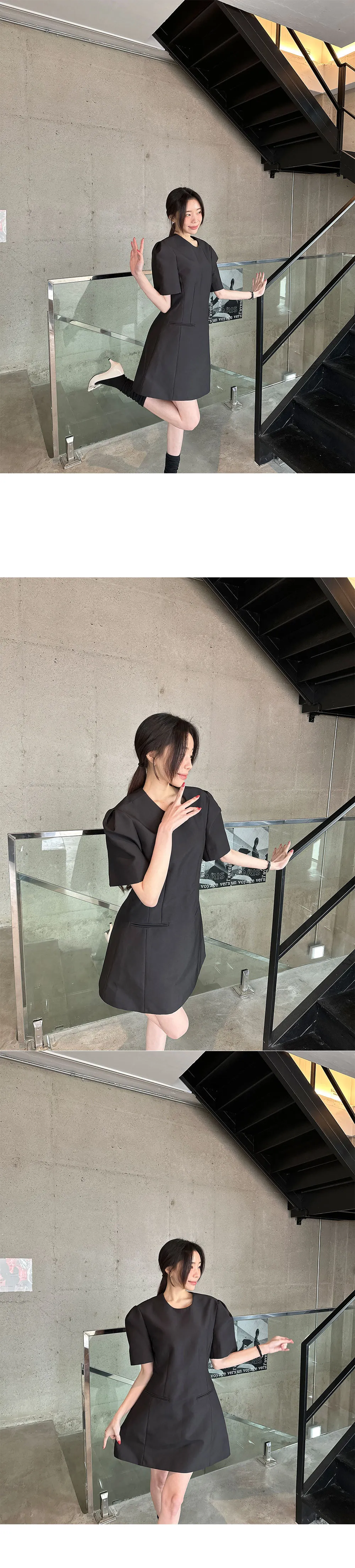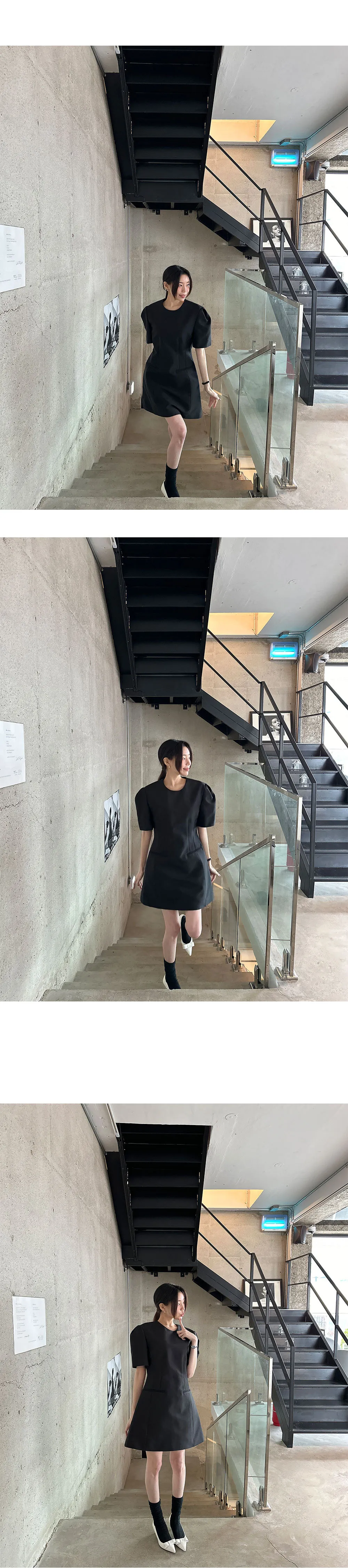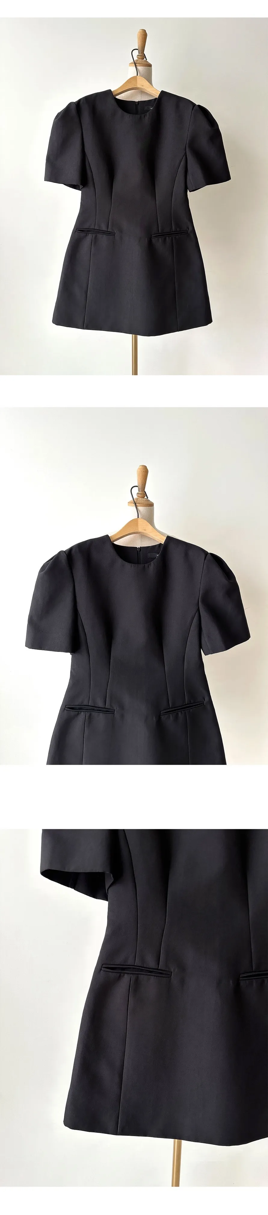 高端設計師品牌 氣質減齡泡泡袖修身西裝連衣短裙 洋裝