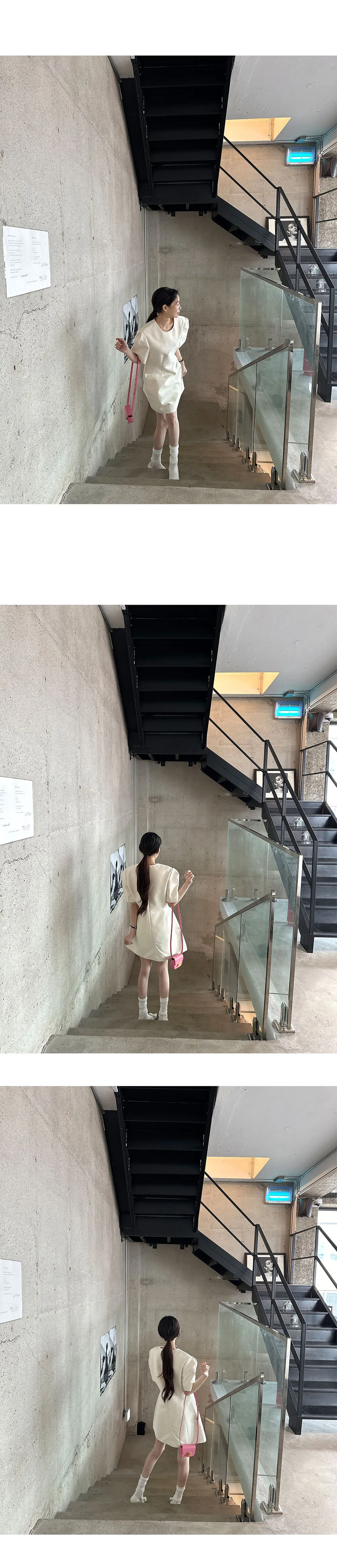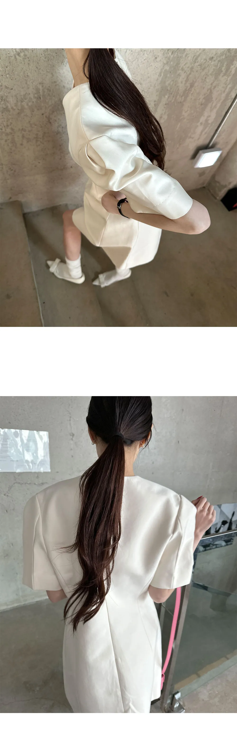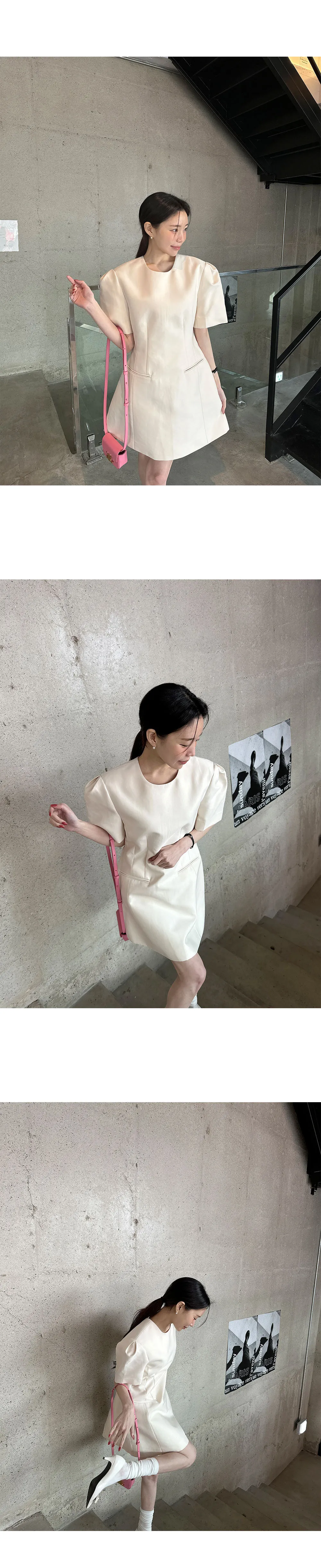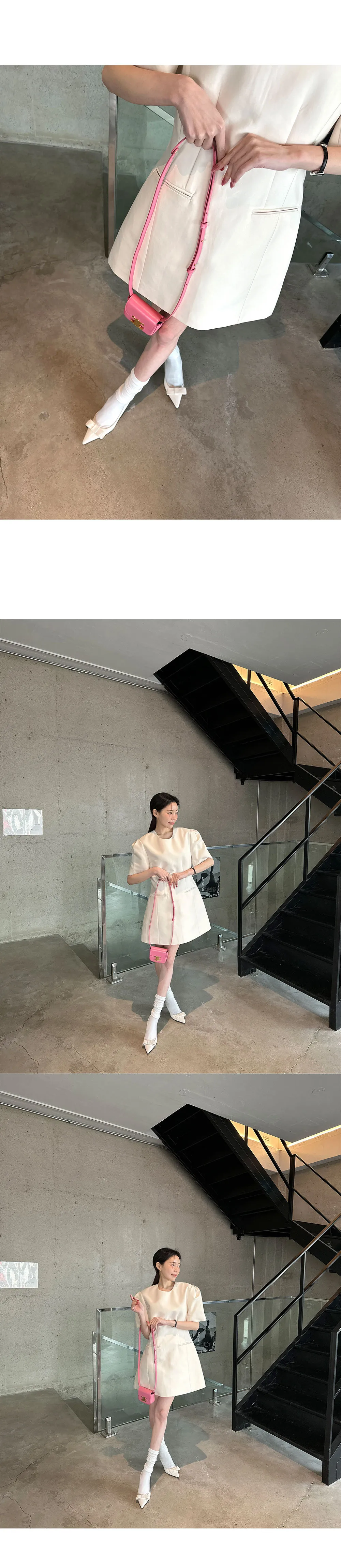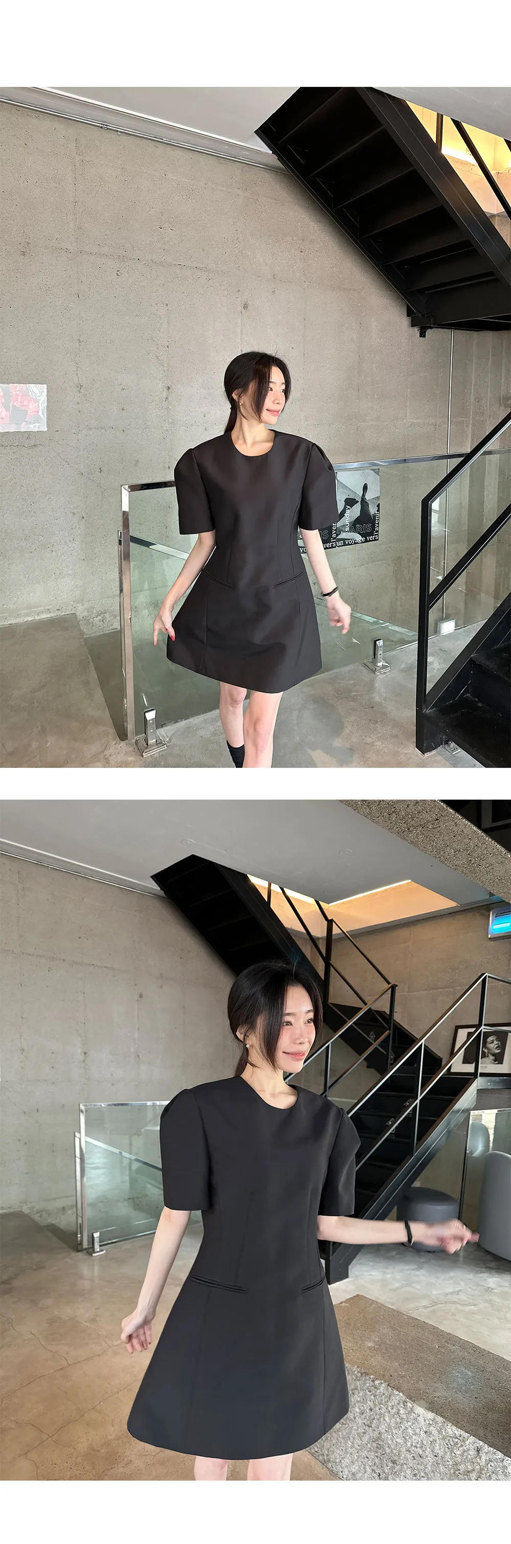 高端設計師品牌 氣質減齡泡泡袖修身西裝連衣短裙 洋裝