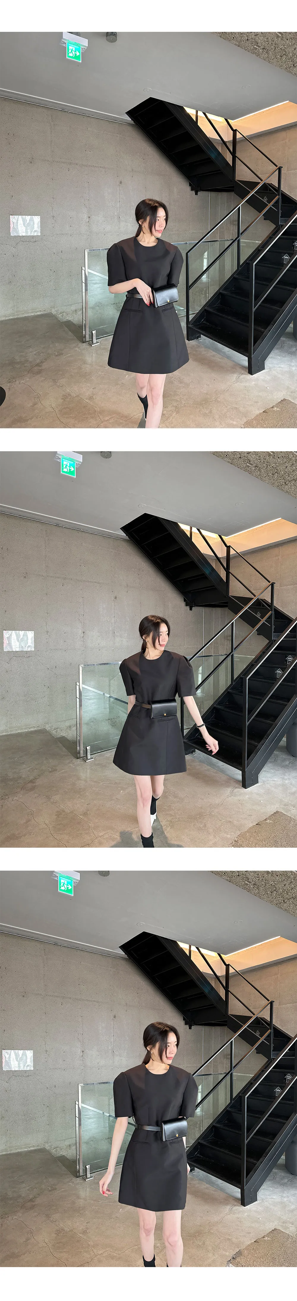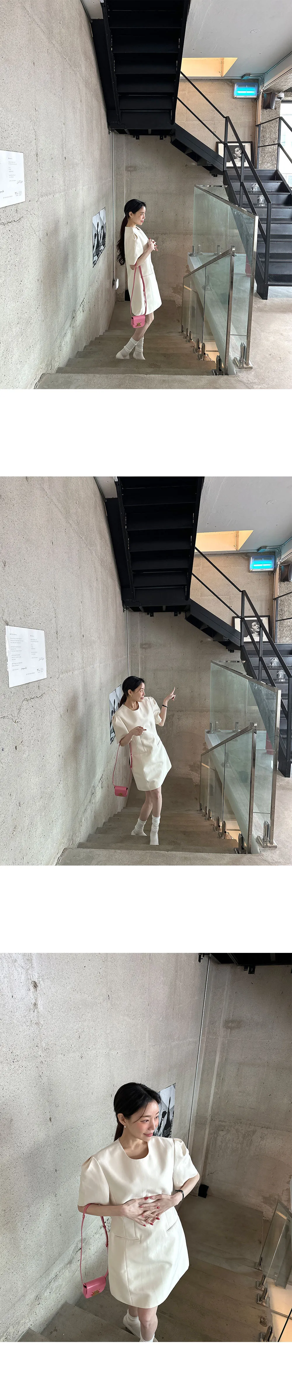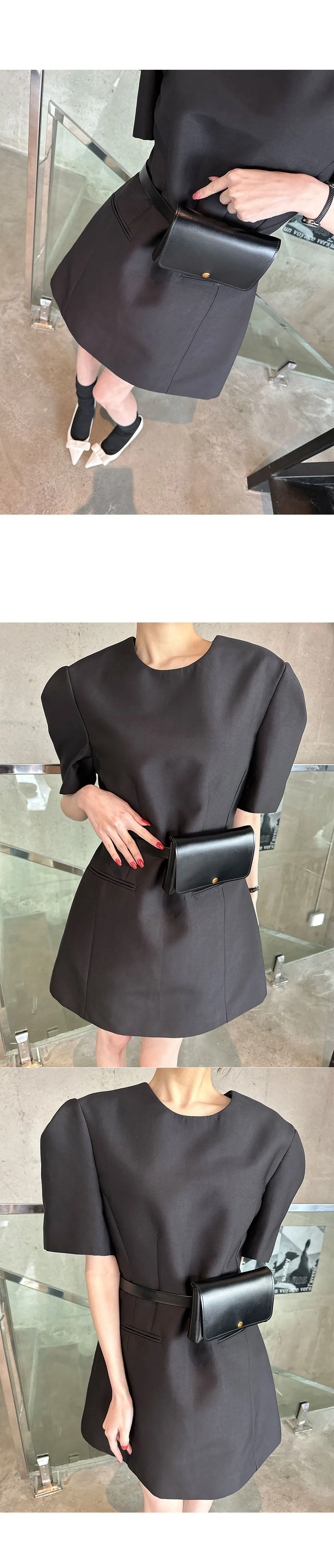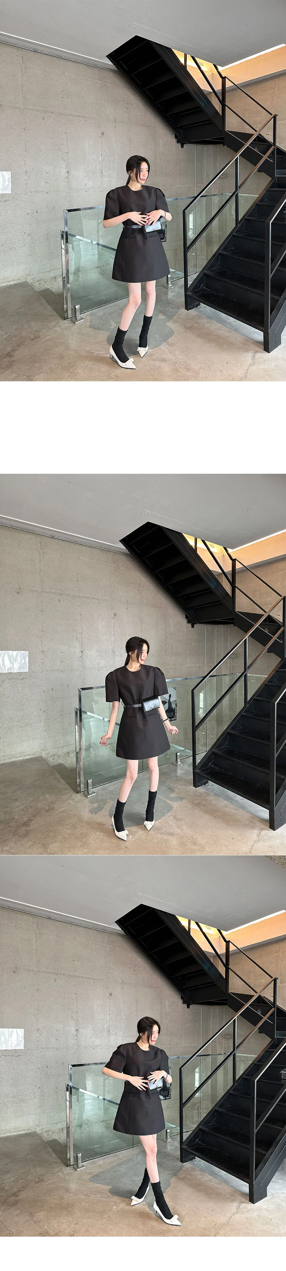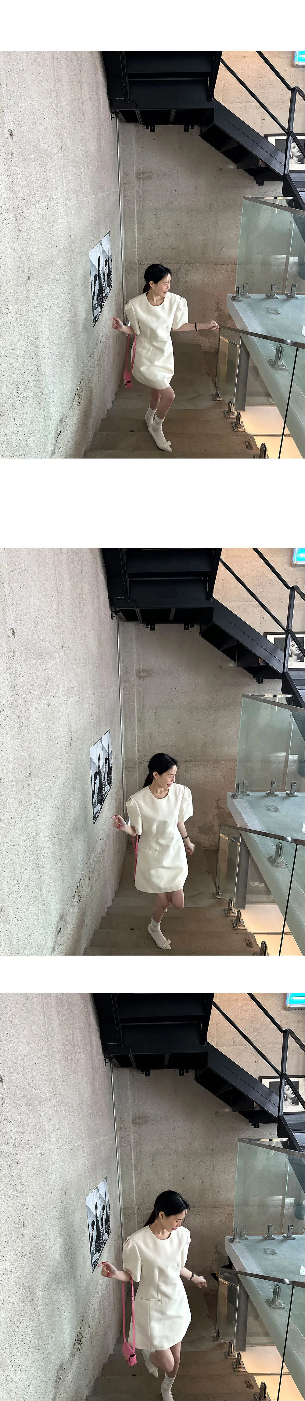 高端設計師品牌 氣質減齡泡泡袖修身西裝連衣短裙 洋裝