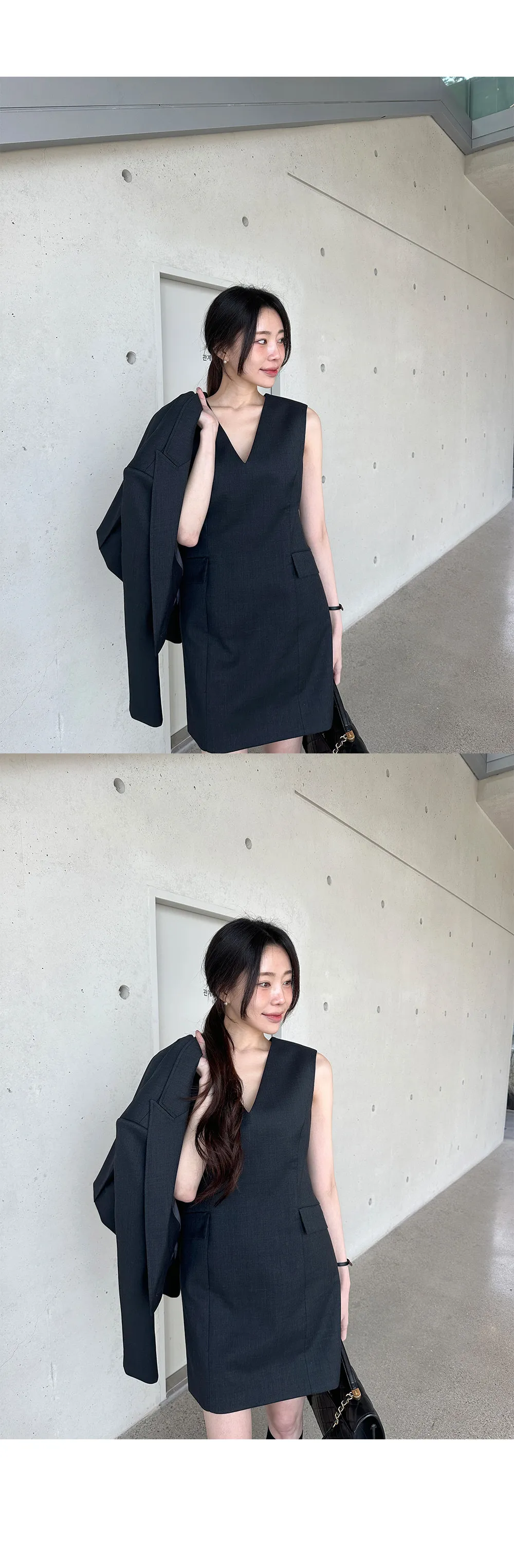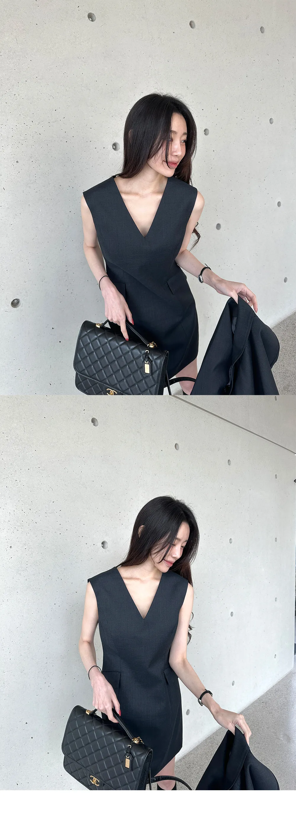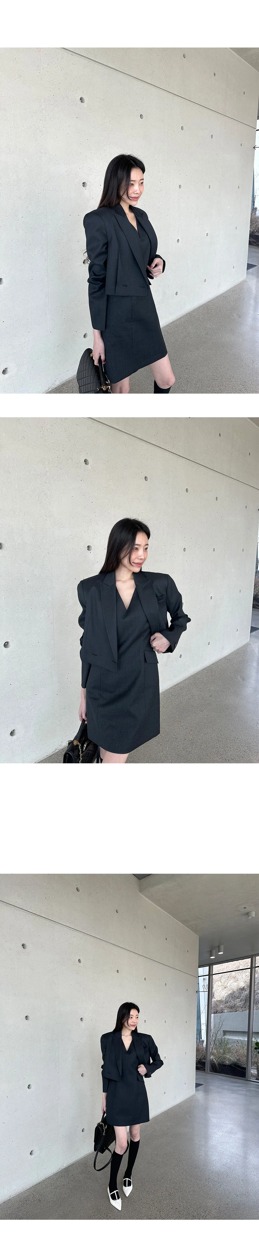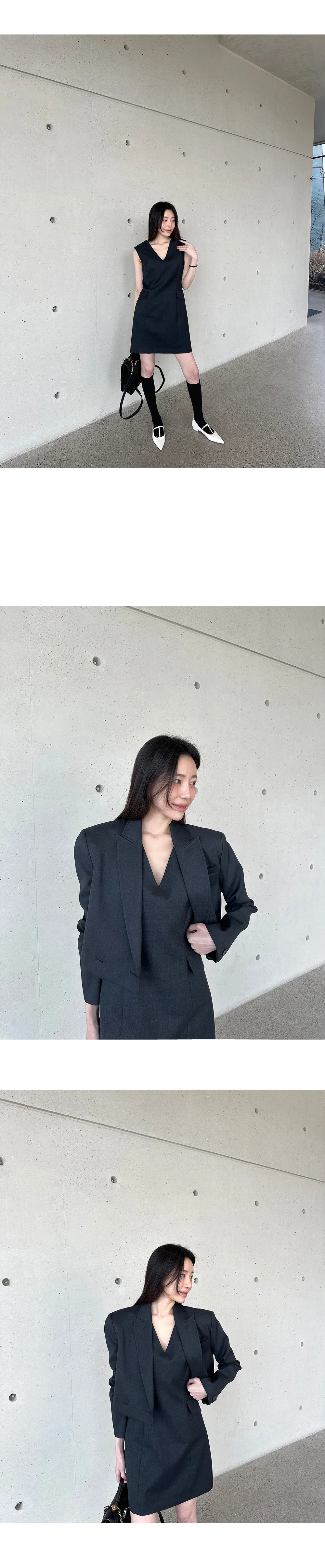 高端設計師品牌 羊毛V領收腰西裝連衣裙