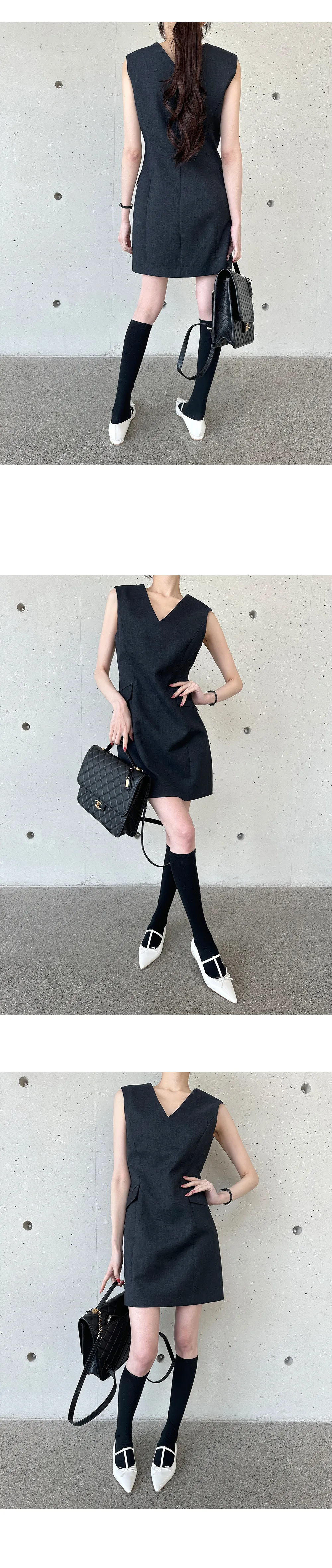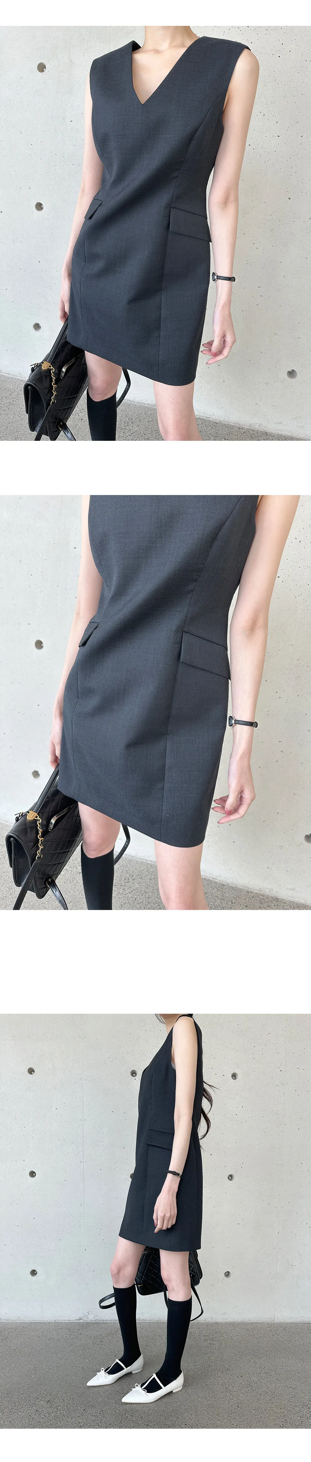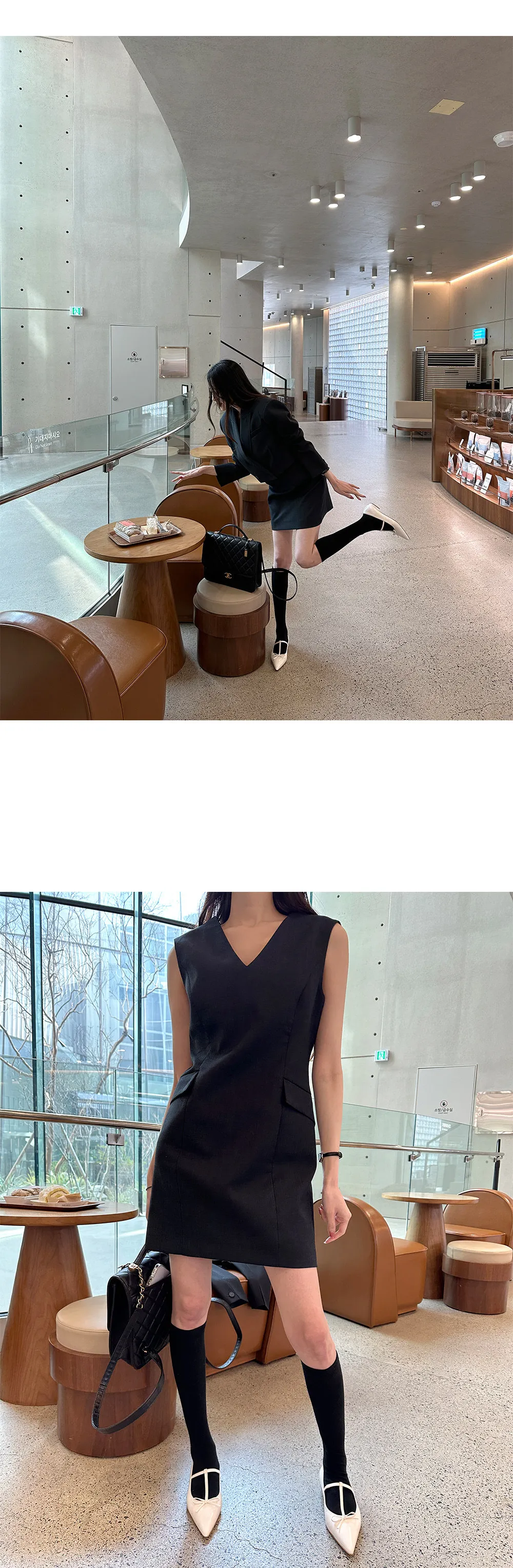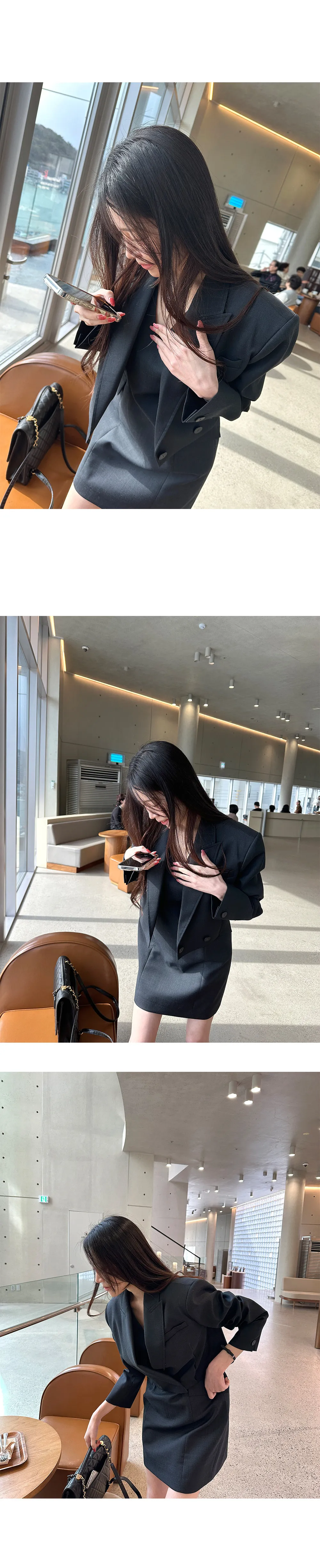 高端設計師品牌 羊毛V領收腰西裝連衣裙