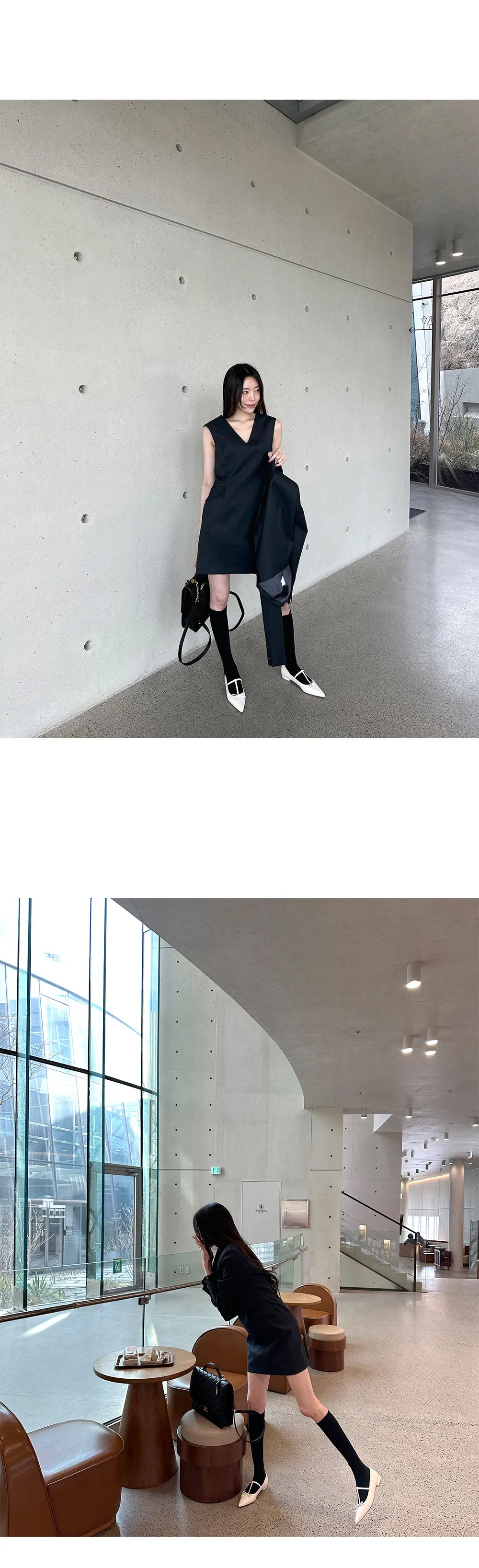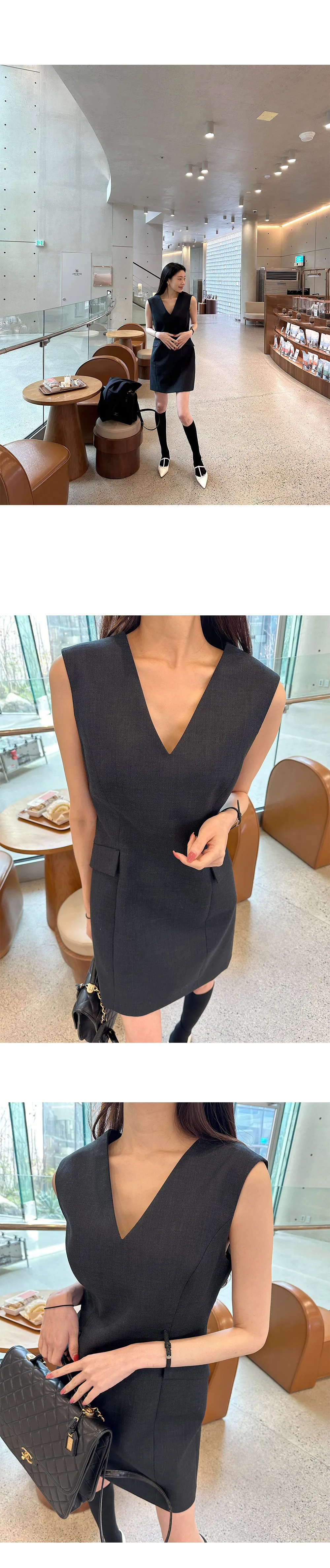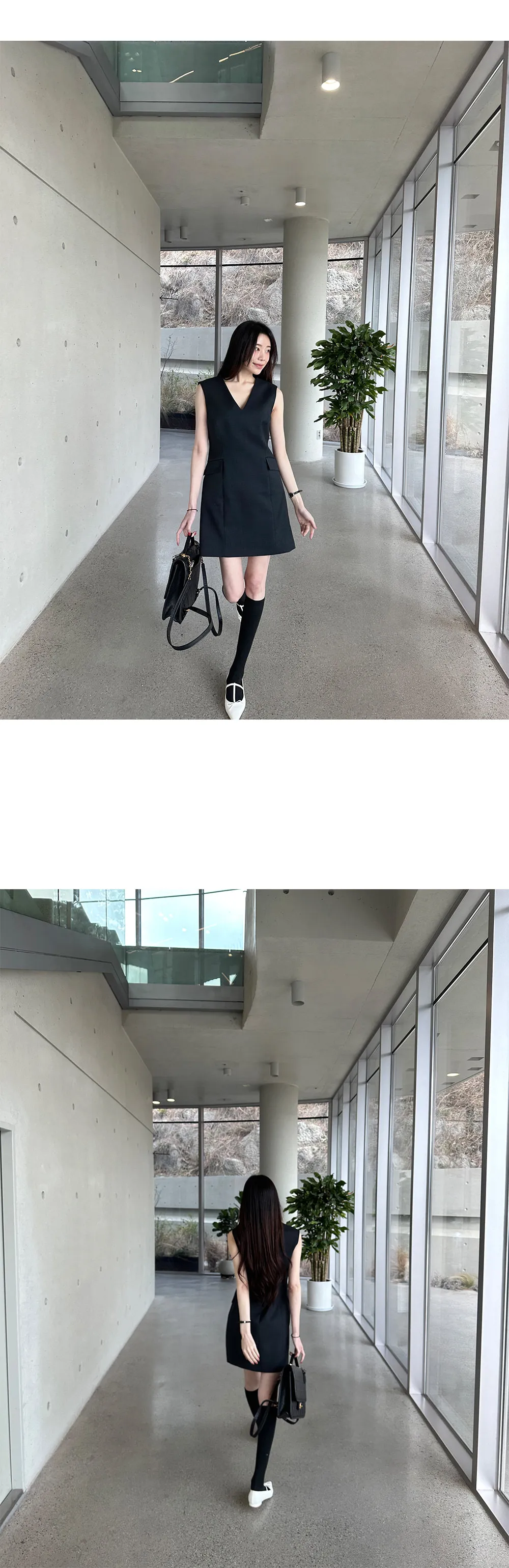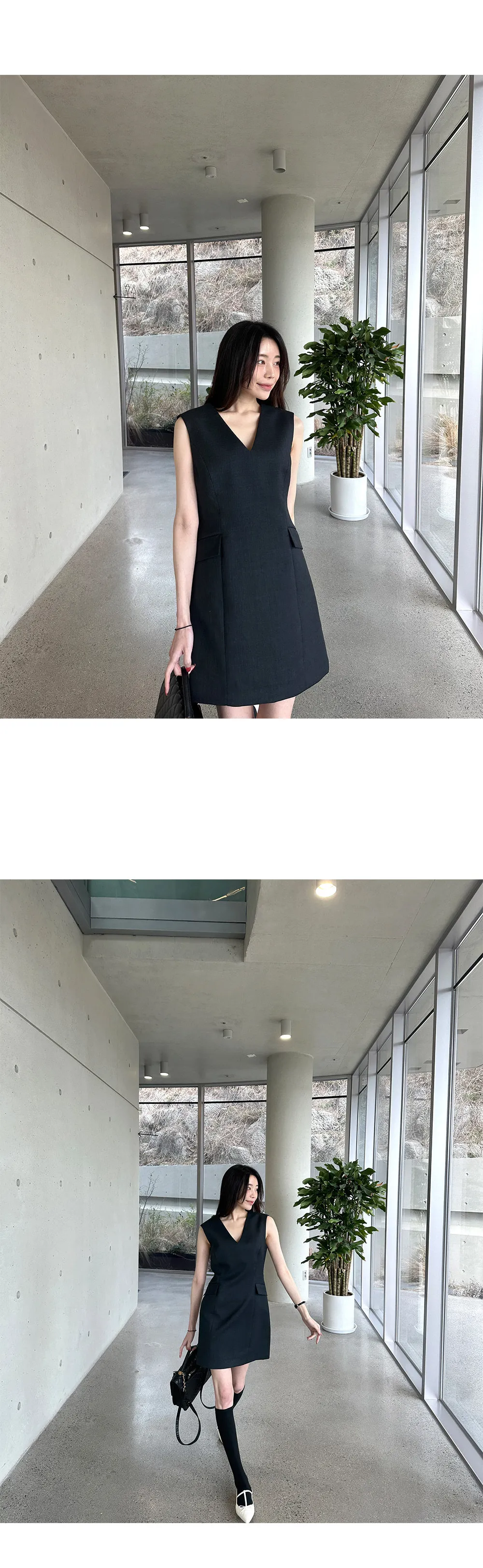 高端設計師品牌 羊毛V領收腰西裝連衣裙