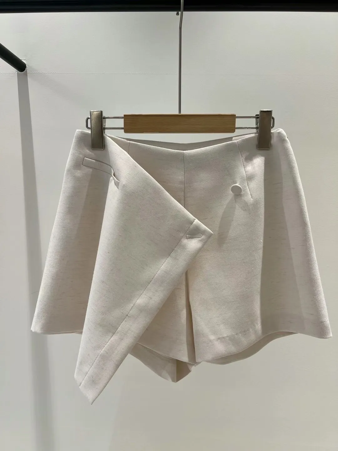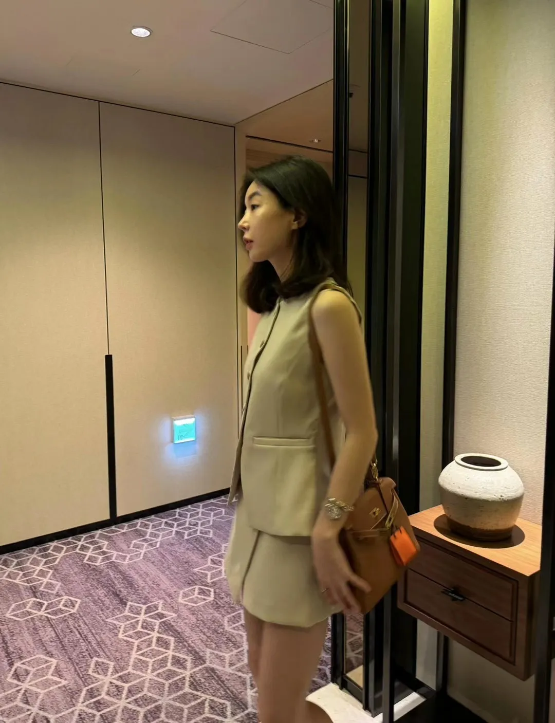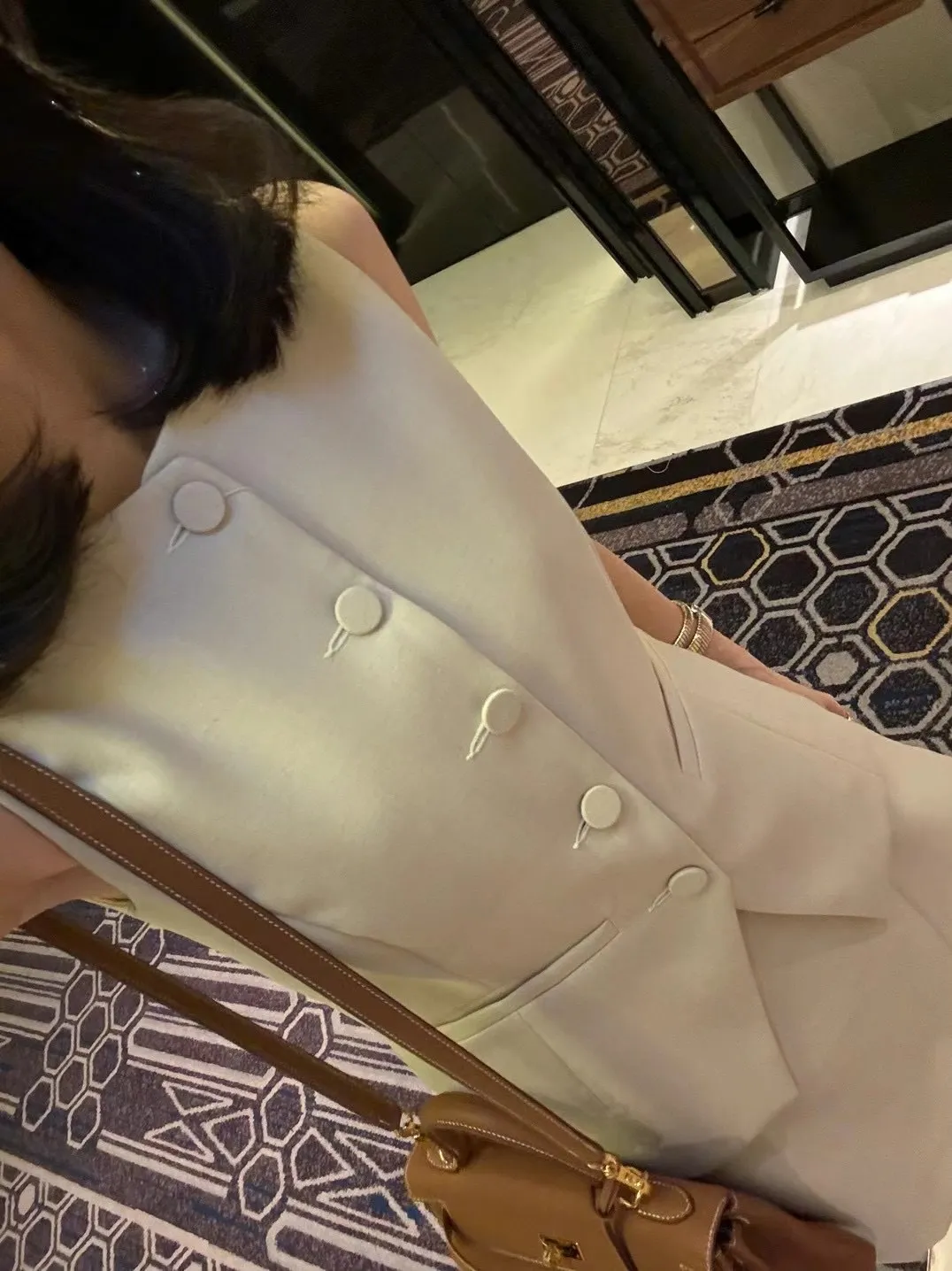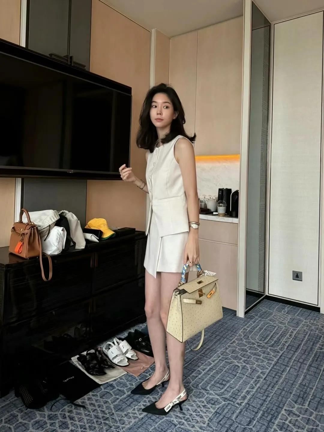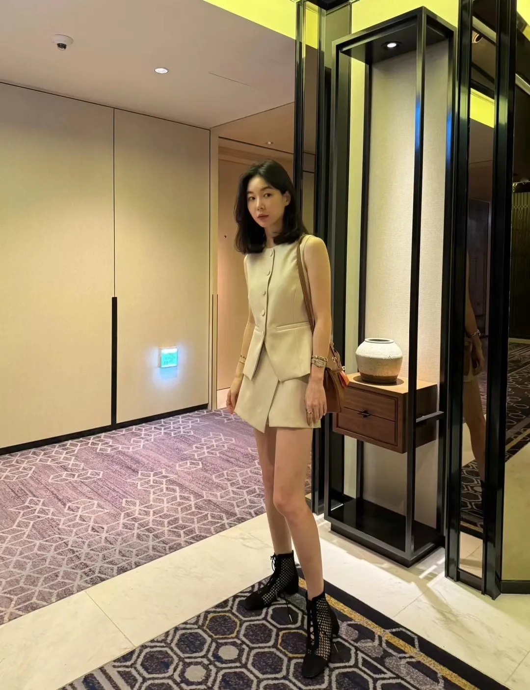 都市白領氣質套裝 - 顯瘦無袖上衣與高腰短褲裙(西裝套裝)set