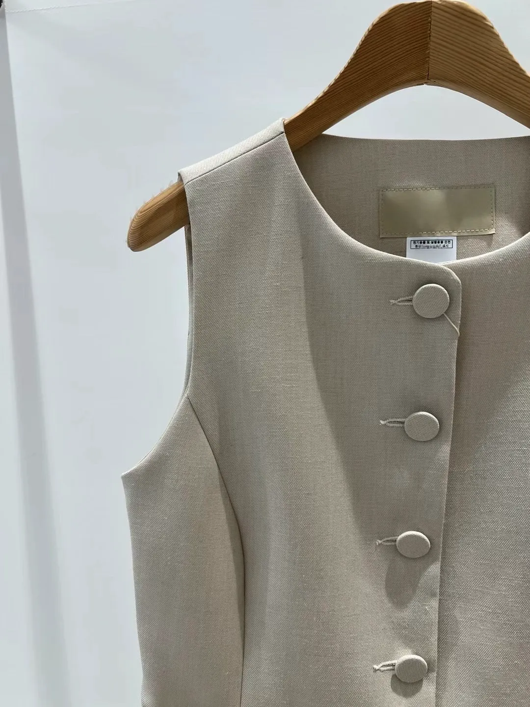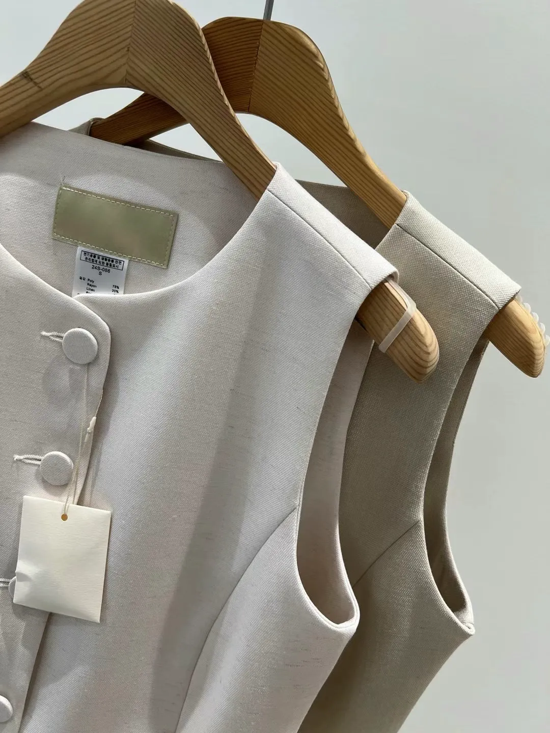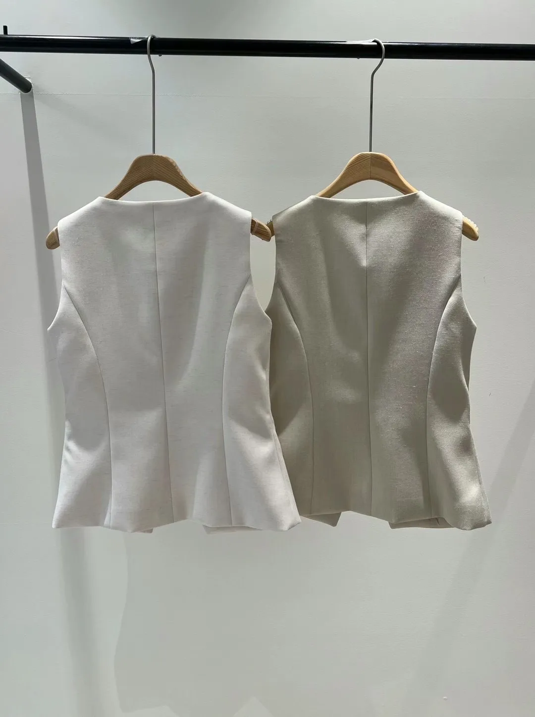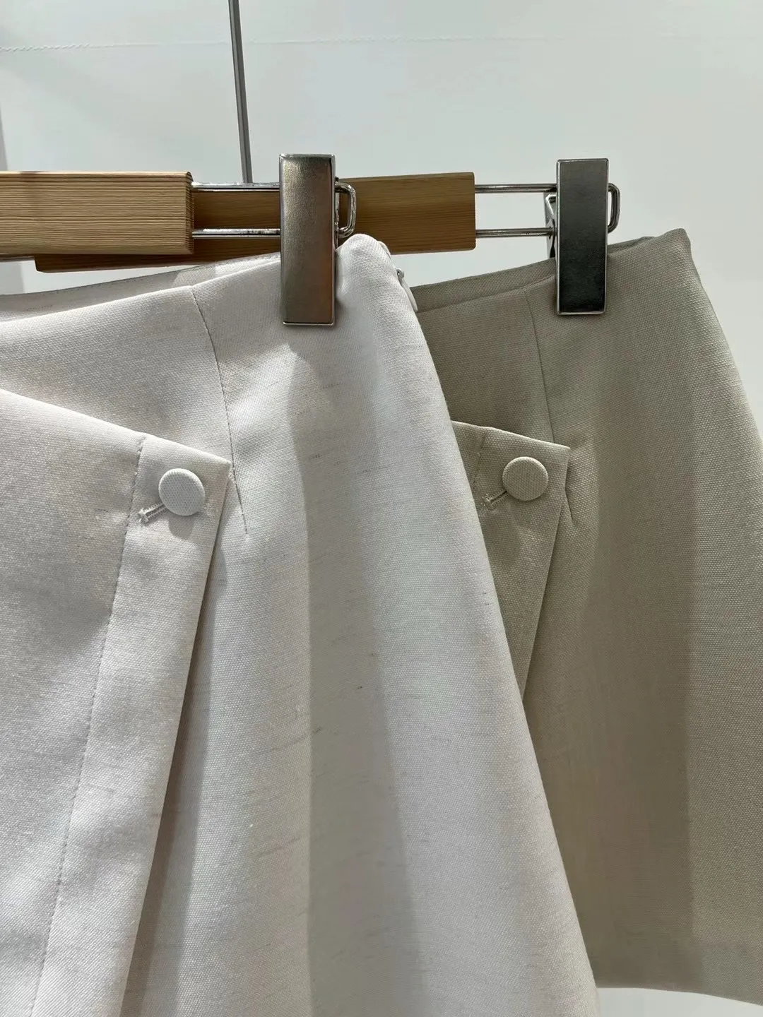都市白領氣質套裝 - 顯瘦無袖上衣與高腰短褲裙(西裝套裝)set