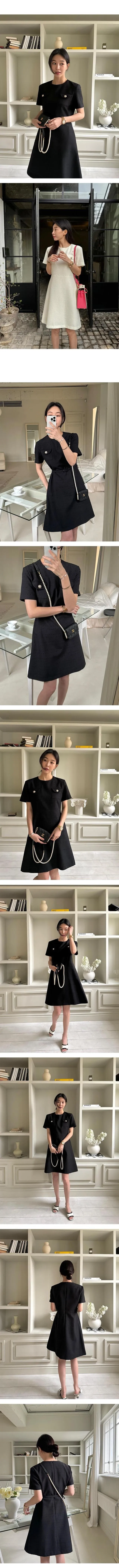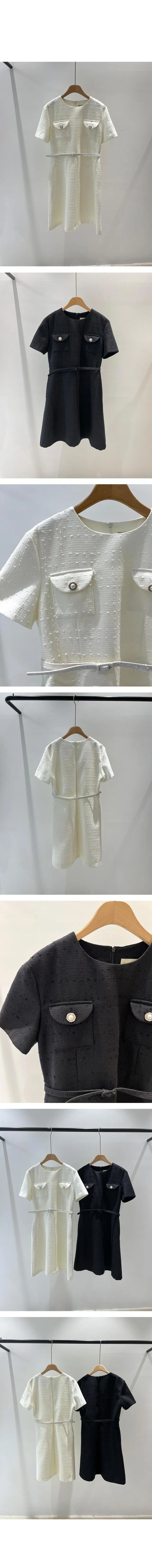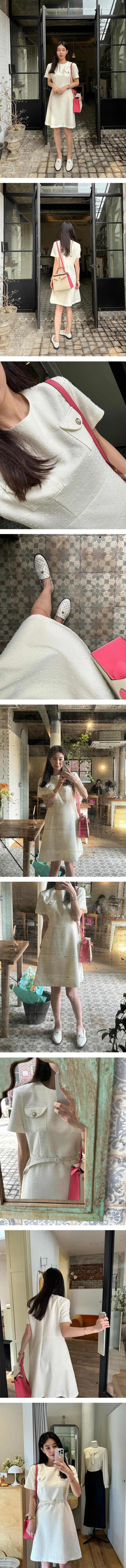 設計師品牌 名媛小香風短袖花呢收腰連衣裙 附腰帶