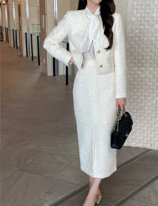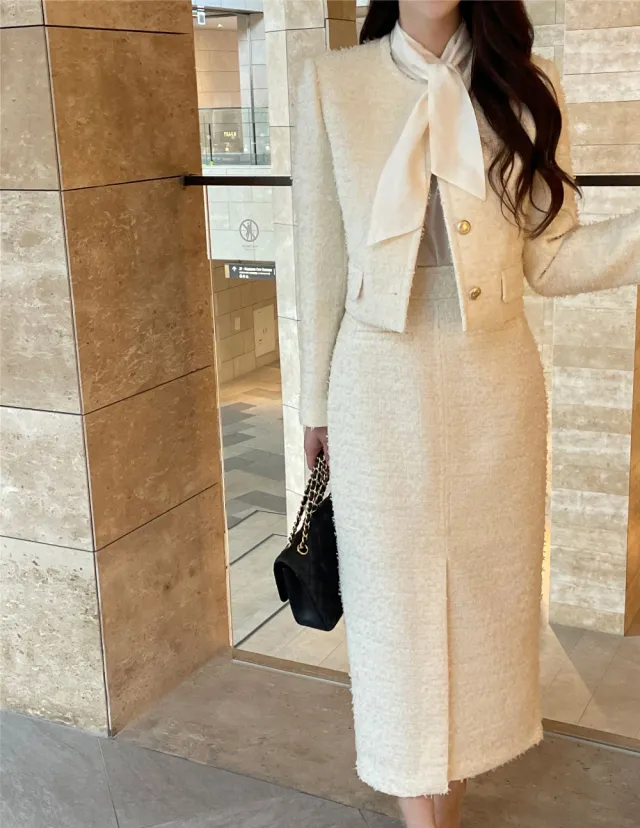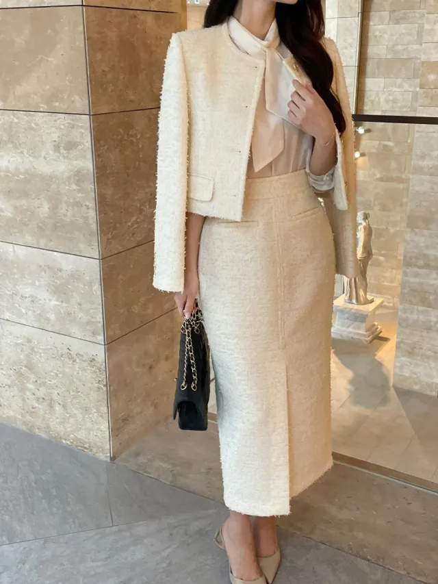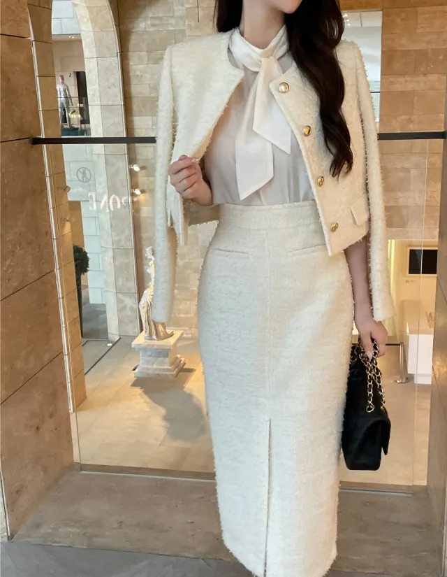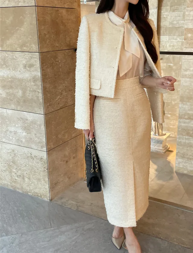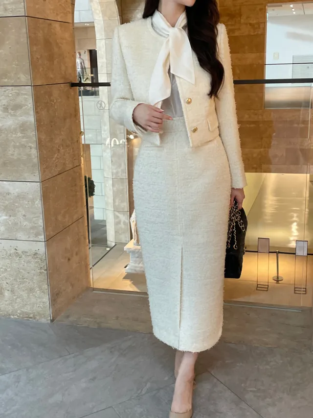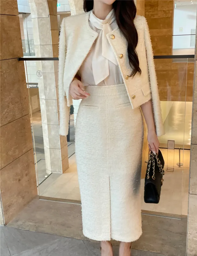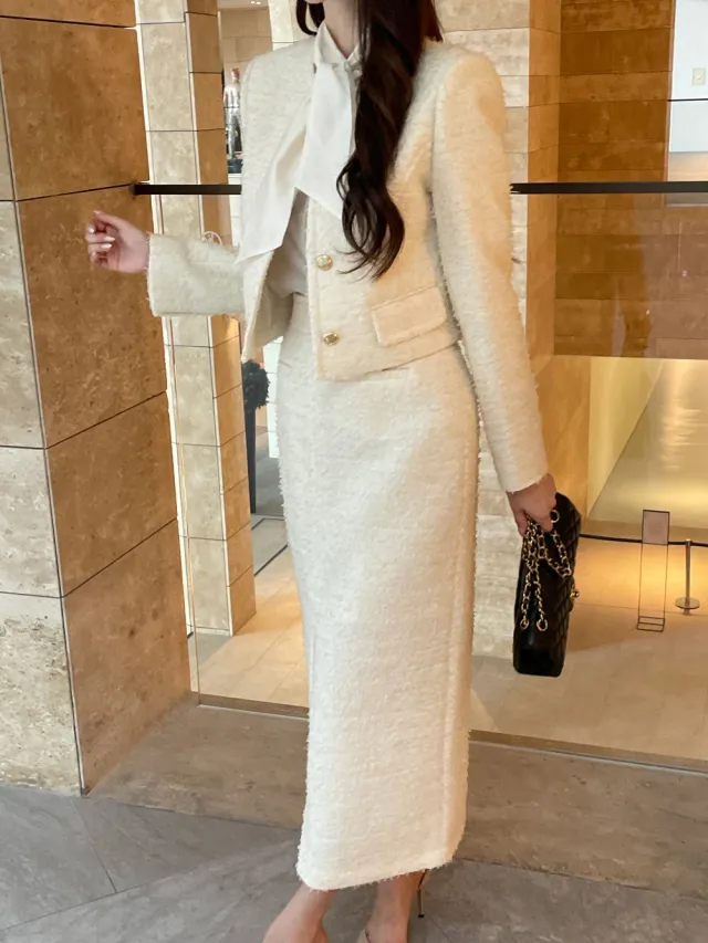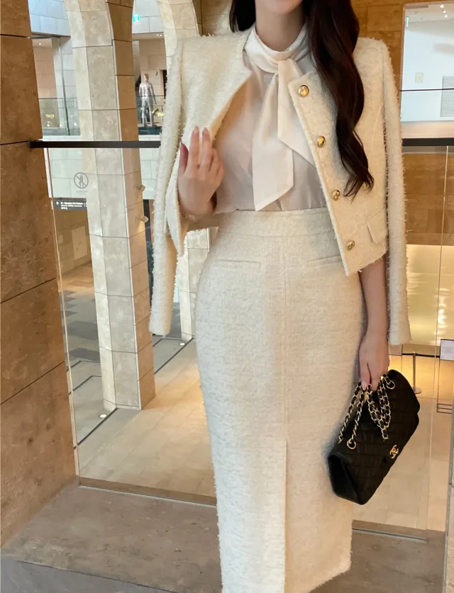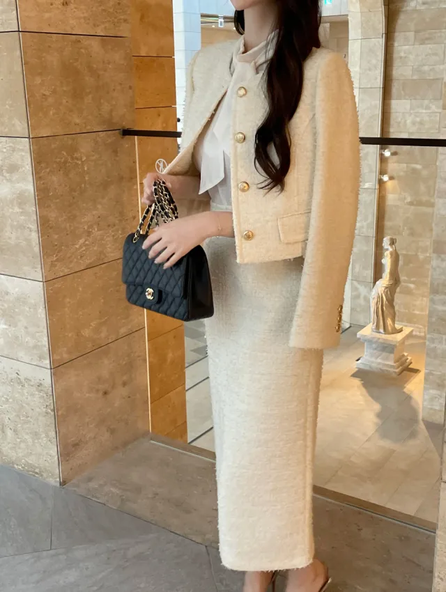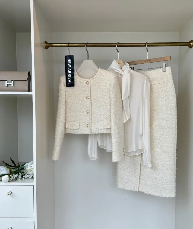 優雅小香風花呢外套+顯瘦半裙 套裝set